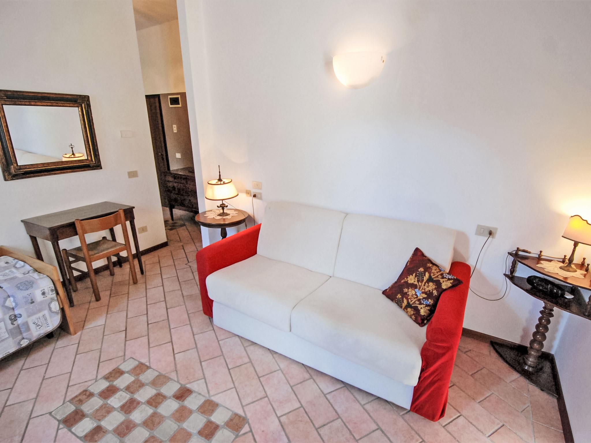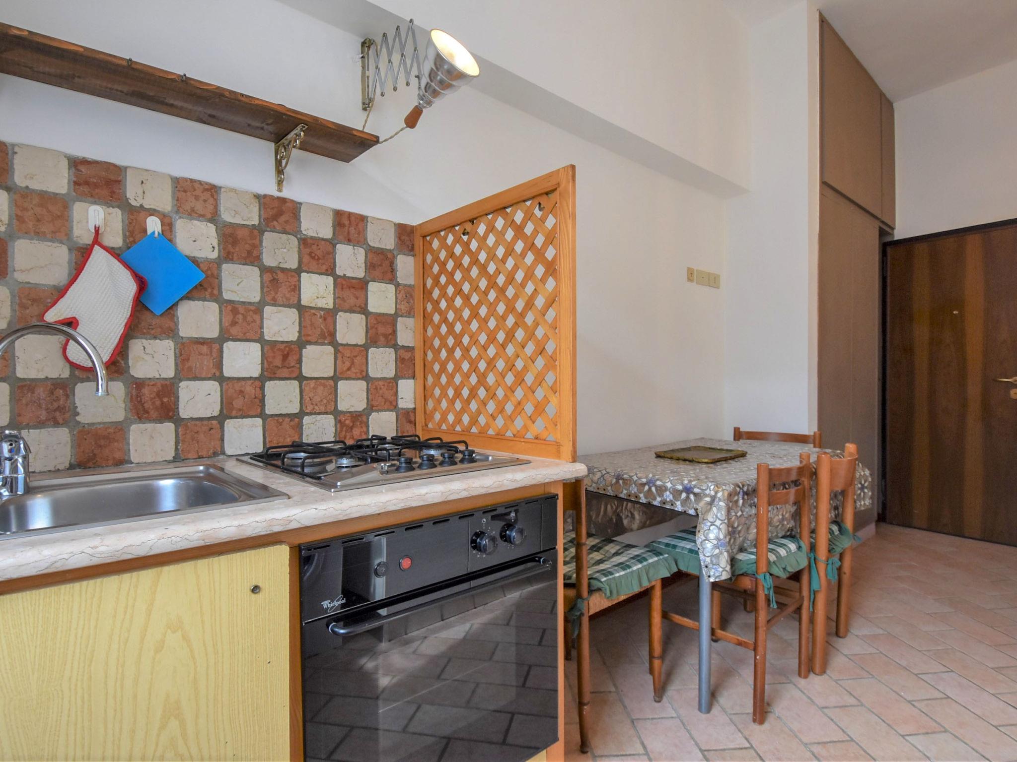1-room apartment 30 m2 on 2nd floor. Bright, practical furnishings: entrance hall. Living/sleeping room with 1 bed, 1 double bed and TV (flat screen). Kitchen (4 hot plates, oven, microwave) with dining table. Shower/bidet/WC. Heating. Heating available only from 15.10. to 15.04. View of the city. Facilities: washing machine, iron, hair dryer. Please note: no lift. No mandatory extra charges to be paid on-site except for local tax. IT027042B4TQWJN2KE