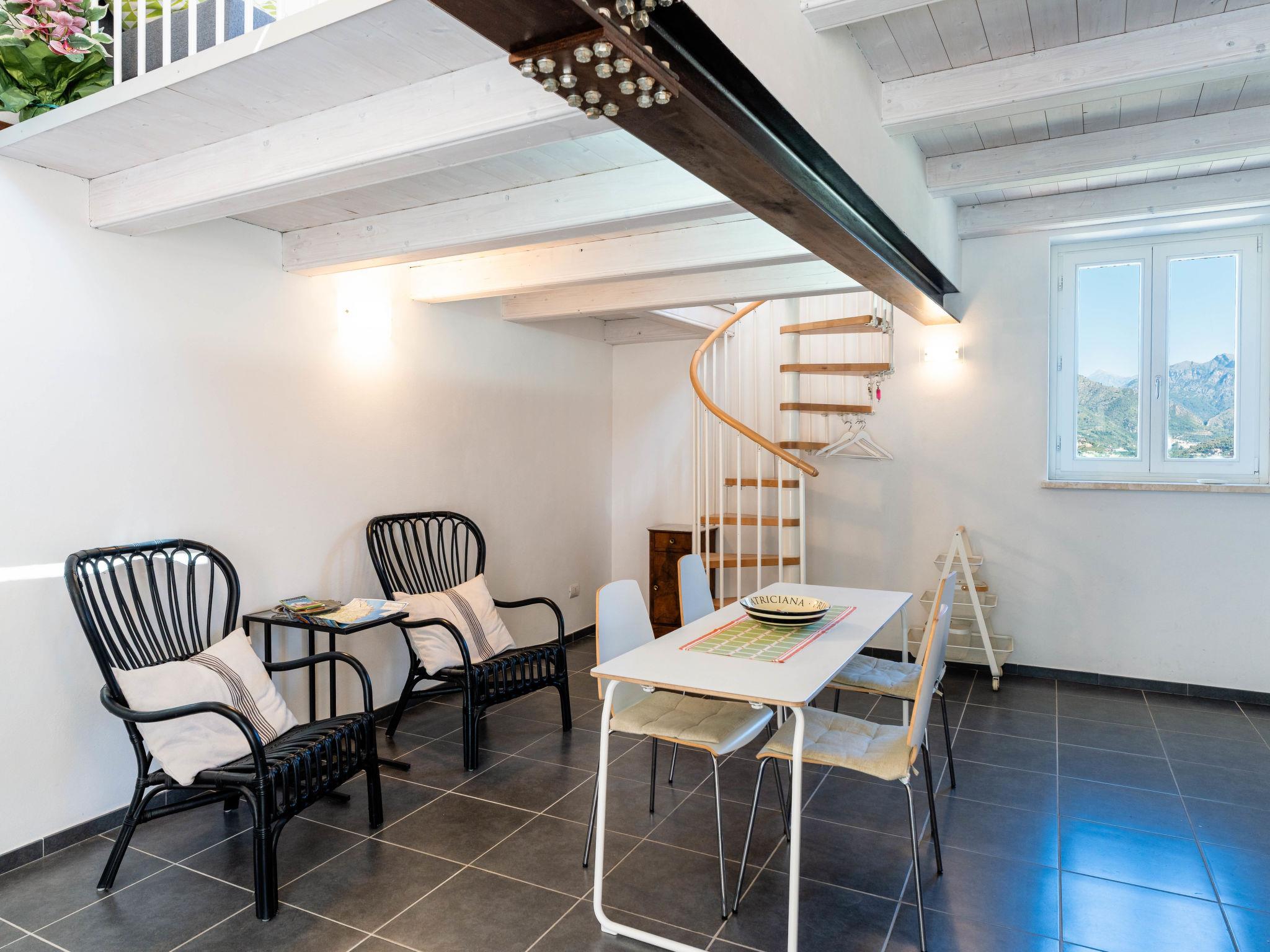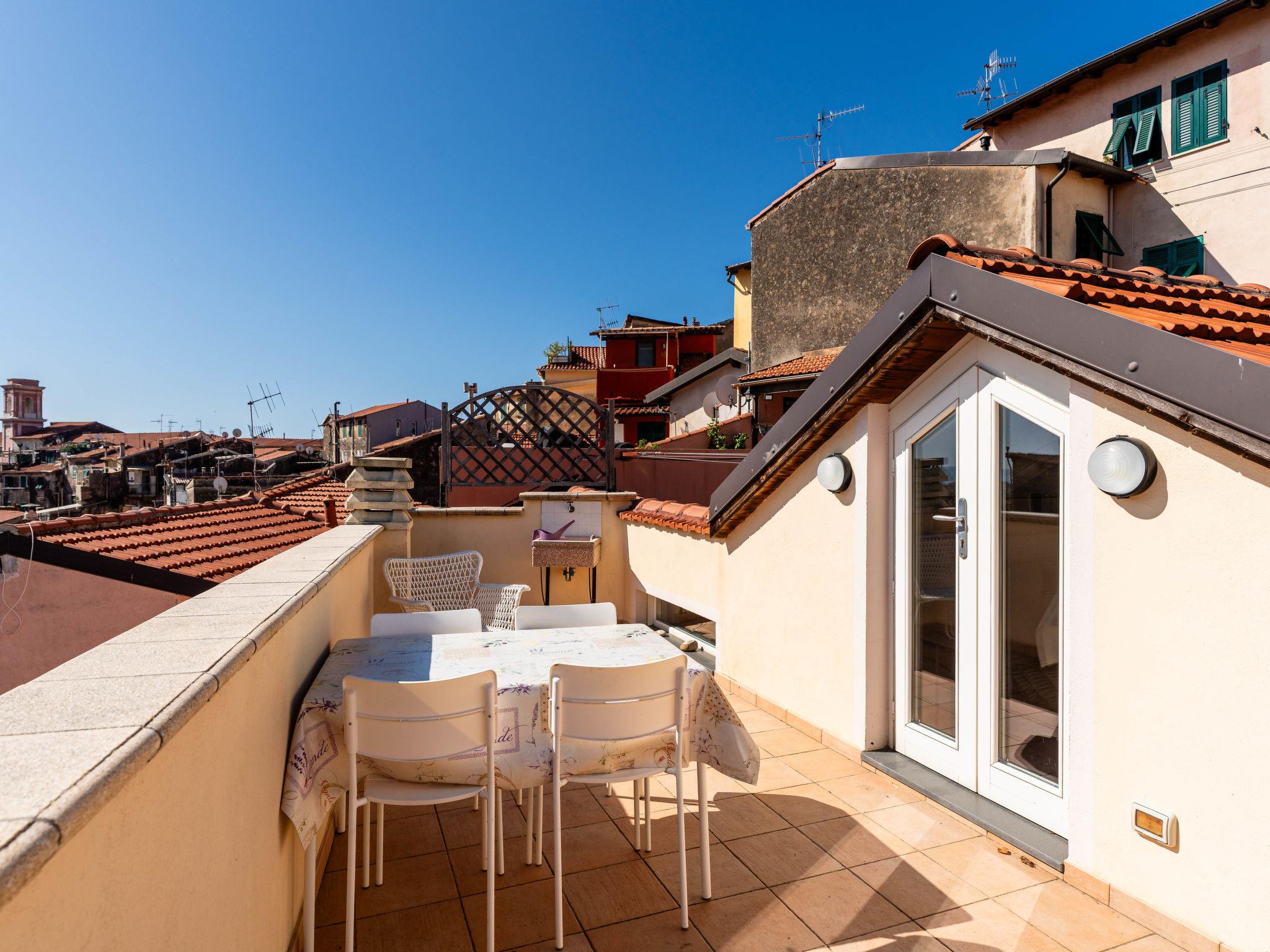 "Entre Collines Et Mar", 3-room terraced house 80 m2 on 3 levels, on the ground floor. Beautiful and cosy furnishings: living/dining room. Kitchenette (oven, 4 induction hot plates, toaster, kettle, electric coffee machine) with air conditioning. Exit to the terrace. Shower/bidet/WC. Air-conditioning, forced-air heating. On the lower ground floor: (spiral staircase), 1 double bedroom with air conditioning. Upper floor: (spiral staircase), 1 open room with sloping ceilings with 1 sofabed (140 cm, length 200 cm). Exit to the terrace. Balcony, garden. Terrace furniture. Beautiful view of the resort. Facilities: hair dryer. Internet (WiFi, free). Please note: maximum 1 pet/ dog allowed. Private entrance, smoke alarm, fire extinguisher. IT008065B4PJTN62DO