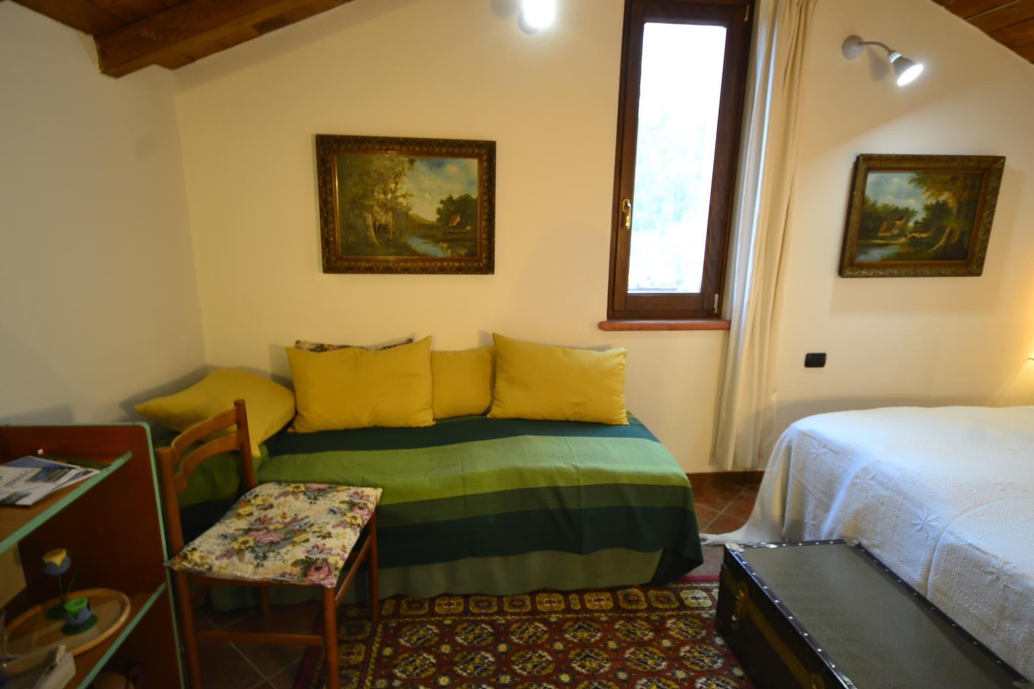 Inbäddat i de fridfulla kullarna i Vezzi Portio, erbjuder detta mysiga semesterhus på första våningen en lugn tillflyktsort bara 12 km från den liguriska kusten. Perfekt för par eller små familjer, har boendet ett välkomnande vardagsrum med matbord och enkelsäng, ett öppet kök med spis, kaffebryggare och allt du behöver för självhushåll. Sovrummet har en bekväm dubbelsäng, och badrummet har dusch, toalett och handfat, vilket ger all komfort du behöver för en avkopplande vistelse. Gästerna kan njuta av en privat terrass och trädgård, samt tillgång till ett gemensamt grönområde som är perfekt för att varva ner utomhus. Trädgårdsmöbler finns för att äta utomhus, och parkering på plats gör det bekvämt. Med sitt lugna läge är boendet husdjursvänligt och inkluderar gratis Wi-Fi, vilket gör det till en utmärkt bas för att hålla kontakten medan du njuter av naturen och frisk luft. Den omgivande regionen är rik på naturlig skönhet och äventyr. Bara 17,6 km bort erbjuder Toiranogrottorna en fascinerande resa genom förhistoriska klippformationer. För strandälskare ligger den charmiga kuststaden Finale Ligure i närheten, känd för sina fantastiska stränder och medeltida gamla stadskärna. Lokala restauranger inom 3 km serverar autentisk ligurisk mat, perfekt för att uppleva Italiens berömda kulinariska kultur efter en dags utforskande.