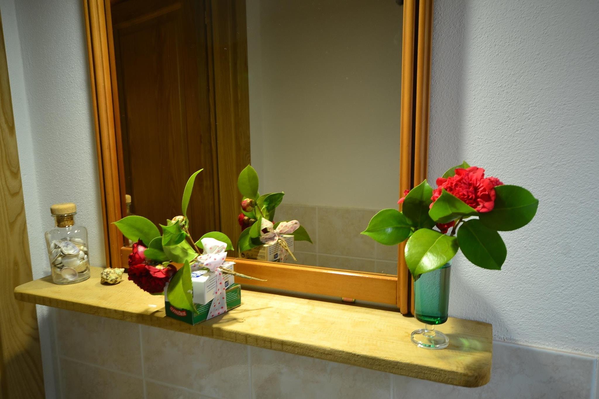 På våning 1: (Vardagsrum(enkelsäng, matbord), öppet kök(Braskamin, spis(Spis med 4 kokplattor), kaffebryggare), sovrum(dubbelsäng), badrum(dusch, handfat, toalett )) terrass, trädgård(privat), trädgård(delas med andra gäster ), trädgårdsmöbler, parkering