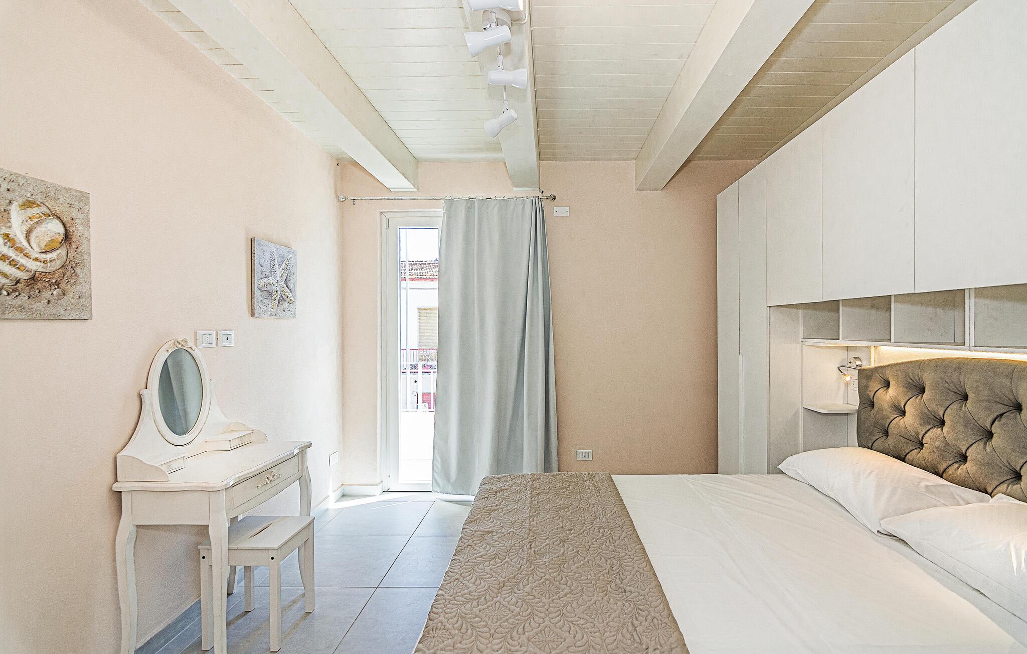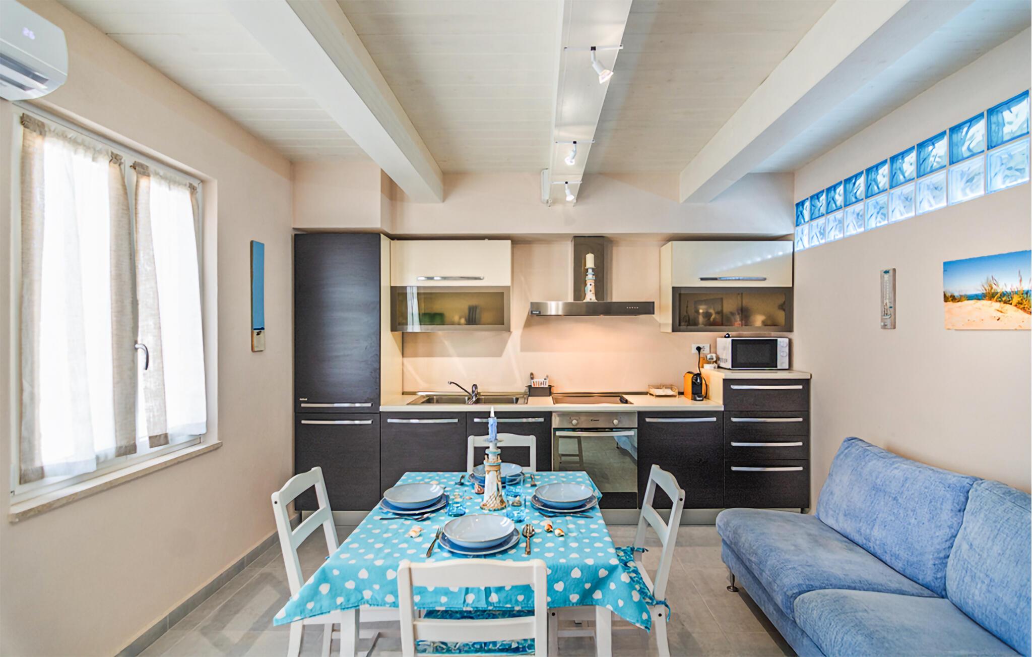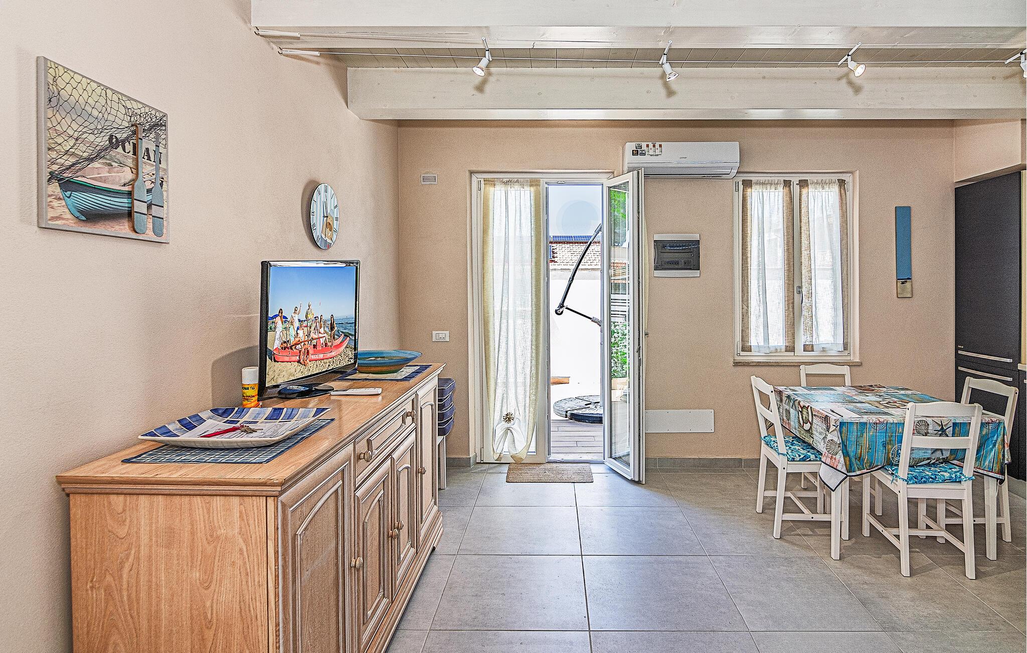 Bara några steg från havet, bra shoppingmöjligheter och restauranger, välkomnar denna rymliga semesterlägenhet dig med en ljus och vänlig atmosfär. Laga läckra pastarätter av färska, regionala råvaror, planera dina aktiviteter under avslappnade måltider och avrunda en lång dag med en mysig spelkväll.