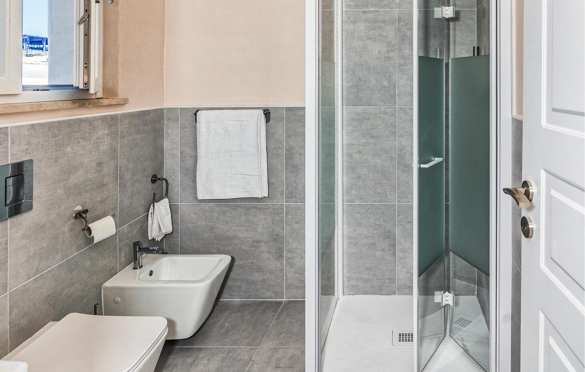 - WC med varmt och kallt vatten, Dusch