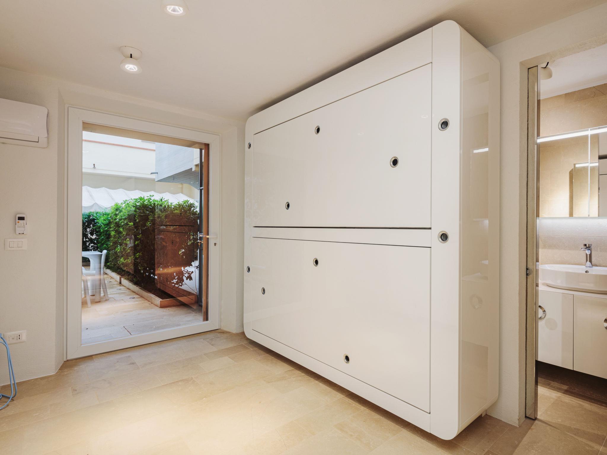 "Sea Design Home", 3-room apartment 80 m2 on 2 levels, on the ground floor. Bright, fully renovated in 2021, modern and stylish furnishings: living/sleeping room with 1 sofabed, dining table, satellite TV and hi-fi system. 1 room with 2 x 2 bunk beds, shower/bidet/WC. Exit to the patio. Kitchenette (oven, dishwasher, 4 induction hot plates, toaster, kettle, freezer, electric coffee machine, combination microwave) with dining table. Upper floor: 1 double bedroom with shower/bidet/WC, air conditioning and forced-air heating. Exit to the balcony. Small patio 15 m2. Terrace furniture. Facilities: washing machine, dryer, iron. Internet (WiFi, extra). Please note: suitable for families. Non-smokers only. IT046033C2VUW78RBG