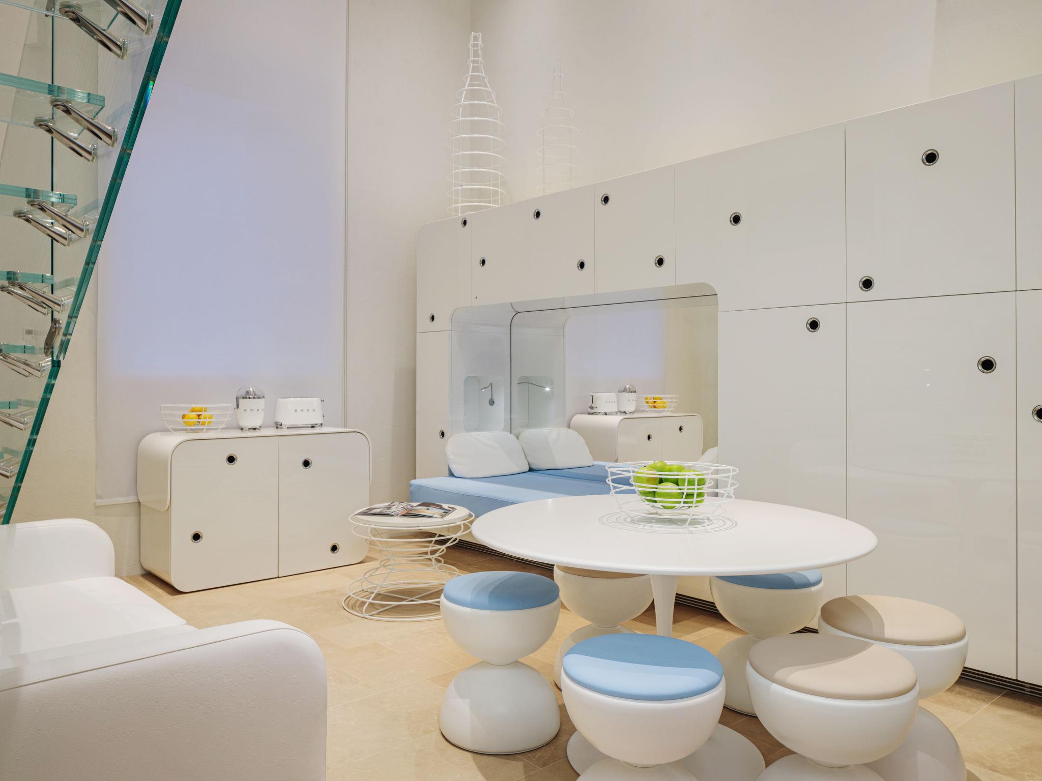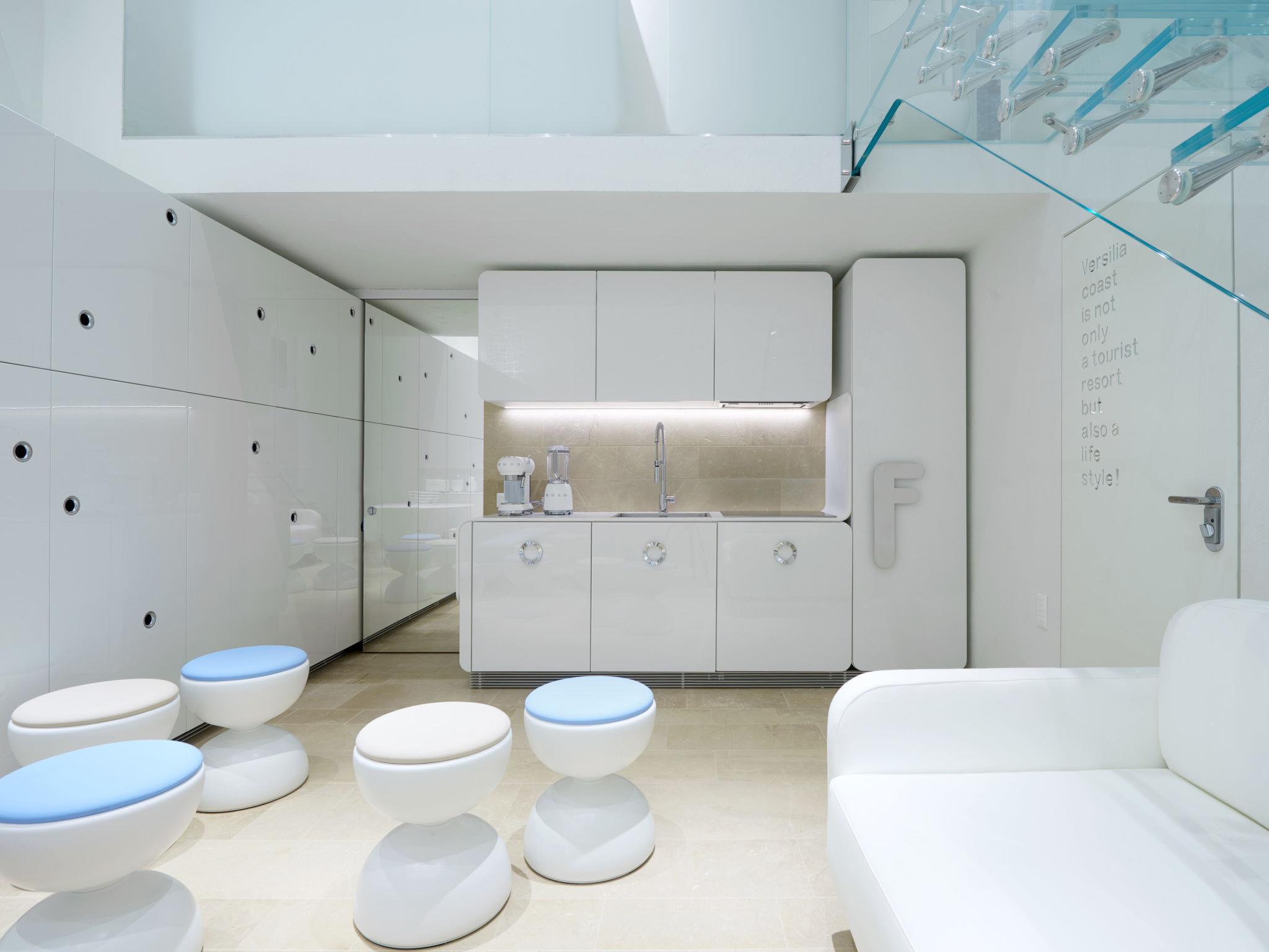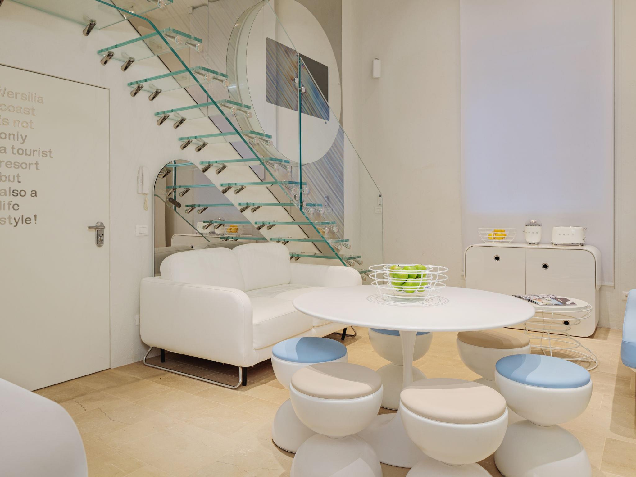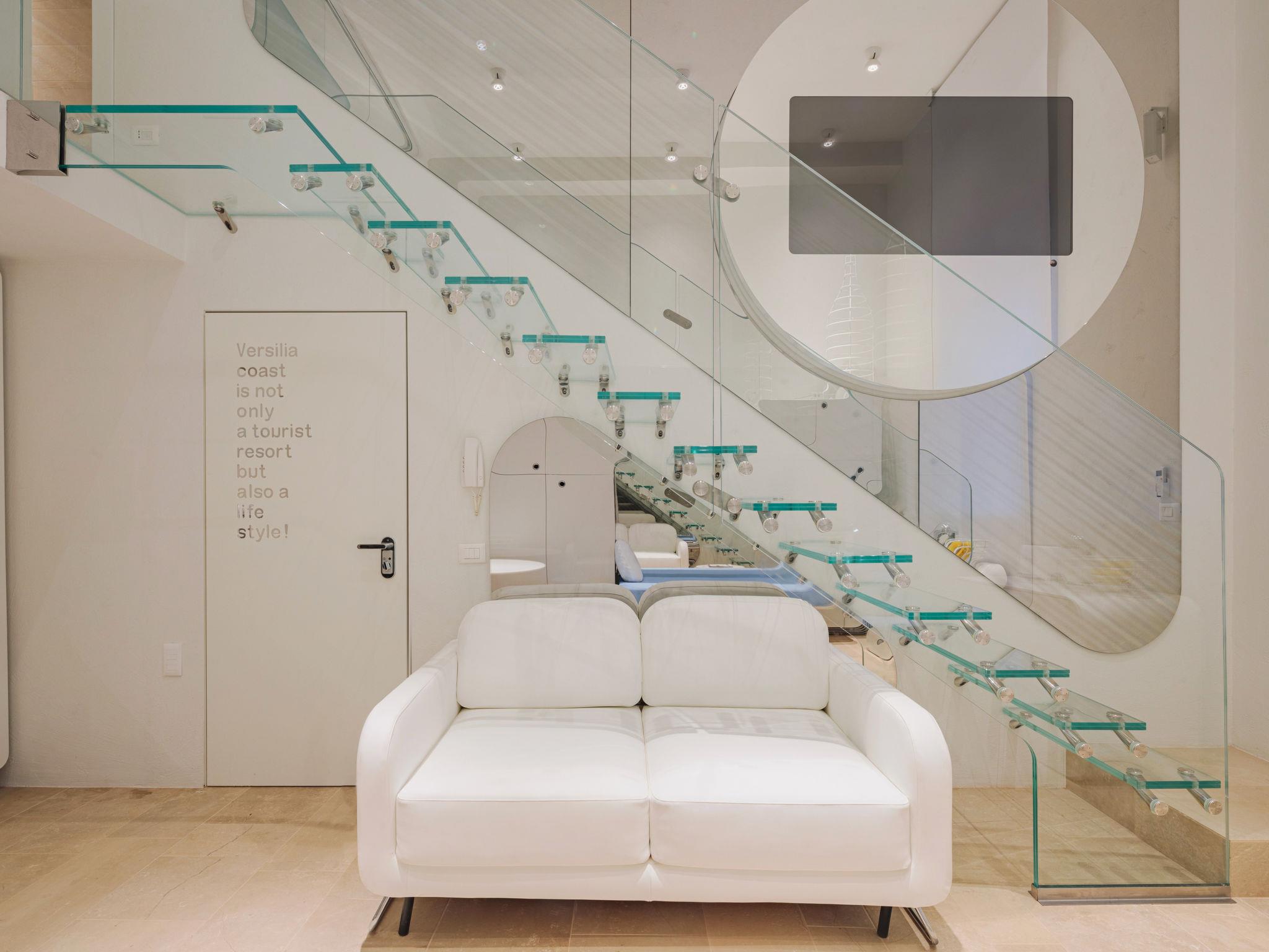 Apartment house "Sea Design Home", 4 storeys, terraced. 300 m from the centre of Viareggio, in a central, busy position, in the heart of the city, 100 m from the sea. Public parking on the road. Short-stay parking zone (fee), time: 09:00 - 20:00. Grocery 300 m, supermarket 800 m, restaurant 100 m, bar 100 m, 5 minute walk to the centre, bus stop 300 m, railway station "Viareggio" 1.1 km, sandy beach, park "Pineta di ponente" 800 m. Golf course (18 hole) 15 km, surf school 500 m, sailing school 1 km, tennis 1 km, sports centre 1 km, cycle lane 100 m, children's playground 800 m. Nearby attractions: Marina di Pietrasanta 8 km, Forte dei Marmi 11 km, Lucca 20 km, Pisa 20 km, Firenze 80 km, Cinque Terre 50 km. Object suitable for 5 adults + 2 children. The owner does not accept any youth groups.