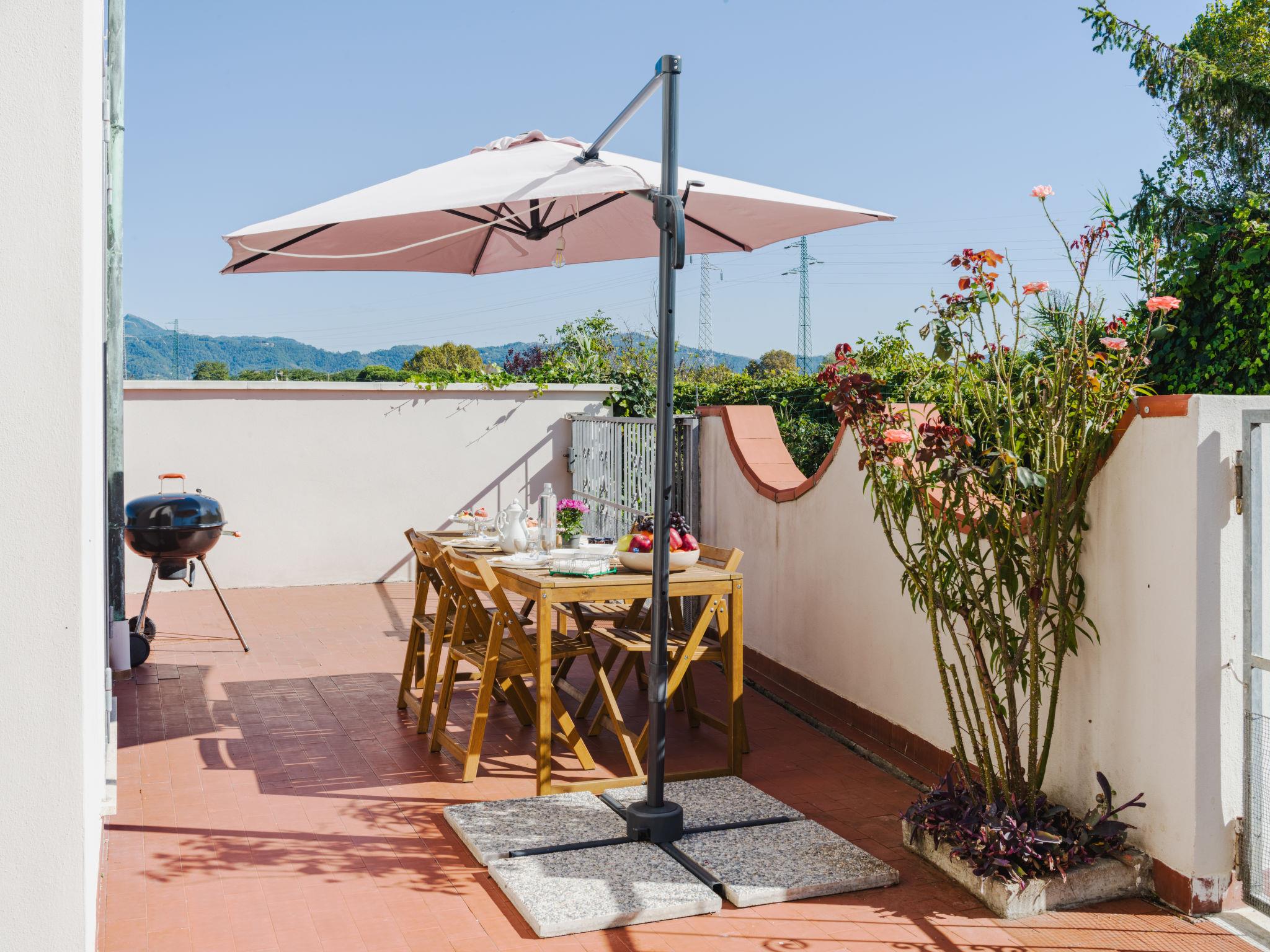 Cosy, comfortable apartment block, 3 storeys. 5 apartments in the property. 1.5 km from the centre of Viareggio, in the district Migliarina, in a quiet, sunny position in the residential district, residential area (villas), 1.5 km from the edge of the forest, 2 km from the sea, 2 km from the beach, in a cul-de-sac. Private: patio, garden furniture, barbecue. Heating available only from 01.Nov. - 07.Apr.. Parking (limited number of spaces) on the premises, public parking on the road. Supermarket 600 m, restaurant, bar, café 300 m, pedestrian zone 1.5 km, bicycle rental 1.5 km, 15 minute walk to the centre, bus stop 550 m, railway station "Viareggio" 1 km, sandy beach 1.7 km, park "Pineta di Ponente" 1.5 km, public bathing area 1.7 km. Sports harbour 3 km, golf course (18 hole) 8.5 km, surf school 1.8 km, sailing school 3 km, tennis 1.6 km, minigolf 1.5 km. Nearby attractions: Firenze 90 km, Lucca 20 km, Pisa 20 km, Forte dei Marmi 18 km, Pietrasanta 15 km, Cinque Terre 65 km. Well-known lakes can easily be reached: Massaciuccoli 6 km. Hiking paths: Sentieri Alpi Apuane 15 km. Please note: no lift.