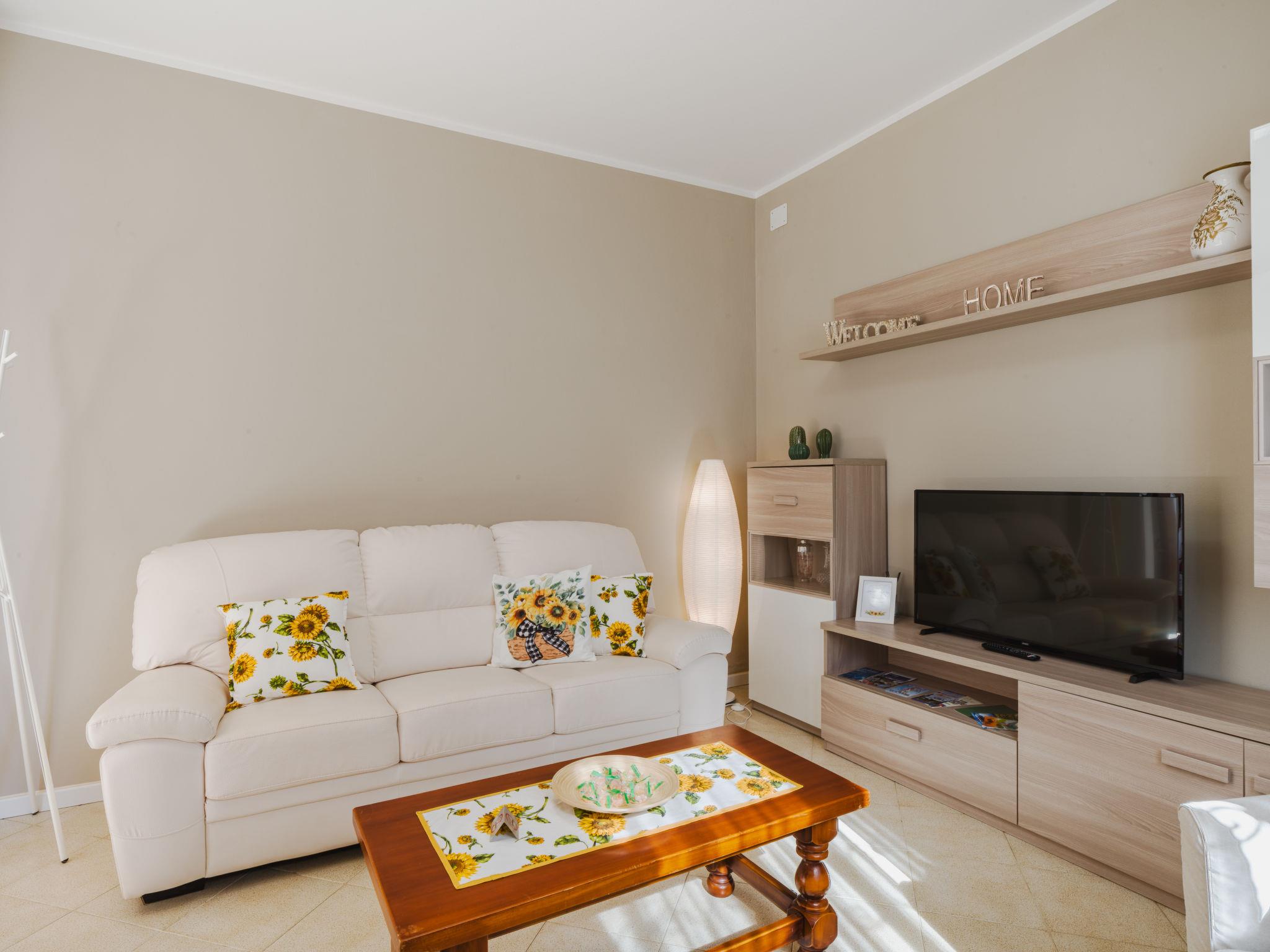 "Sunflower piano terra", 4-room apartment 95 m2, on the ground floor. Spacious and bright, fully renovated, beautiful and cosy furnishings: living/dining room with open-hearth fireplace (only for decoration), TV (flat screen). Exit to the patio. 2 double bedrooms. 1 room with 1 bed. Kitchen-/living room (oven, Gas stove, 4 gas rings, toaster, kettle, microwave, freezer, electric coffee machine) with dining table. Exit to the patio. Shower/bidet/WC. Gas heating, air-conditioning. Heating available only from 01.11. to 07.04. Large patio partly roofed. Terrace furniture, barbecue (portable), sitting area. Facilities: washing machine, dryer, iron, mosquito net, hair dryer. Internet (WiFi, free). Parking (fenced 1 car) at the house. Please note: suitable for families. Non-smokers only. Maximum 1 pet/ dog allowed. TV only IT. Smoke alarm, fire extinguisher, no lift. Air conditioning is present in the corridor of the apartment. IT046033C23SN5M2LS