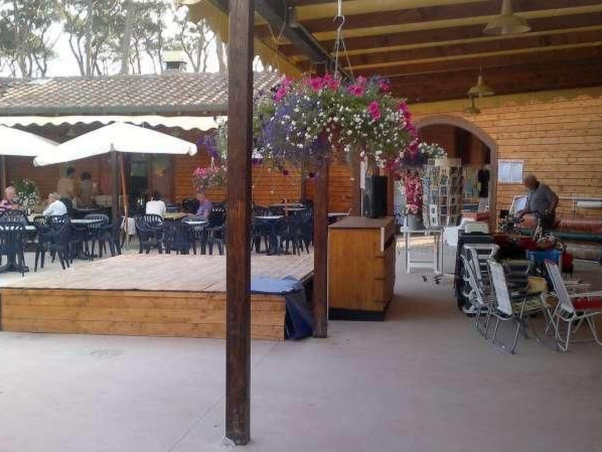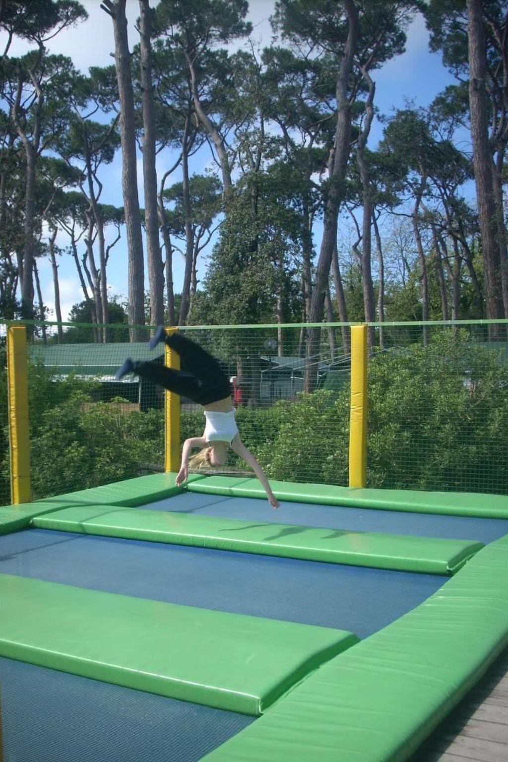 Outside there is a large, roofed and furnished veranda measuring 7 x 2m.Next to the mobile home there is a free private parking space.From the campsite there is a shuttle bus to the seaside, only in the main season There is also a large children’s playground with six large trampolines, a football pitch, climbing frames and a shared swimming pool.There are also a restaurant, a supermarket, a shop with camping gear and bike and mountain bike rental.The campsite has a capacity of around 400 places and there is a reception where Italian, German, Dutch and English are spoken.