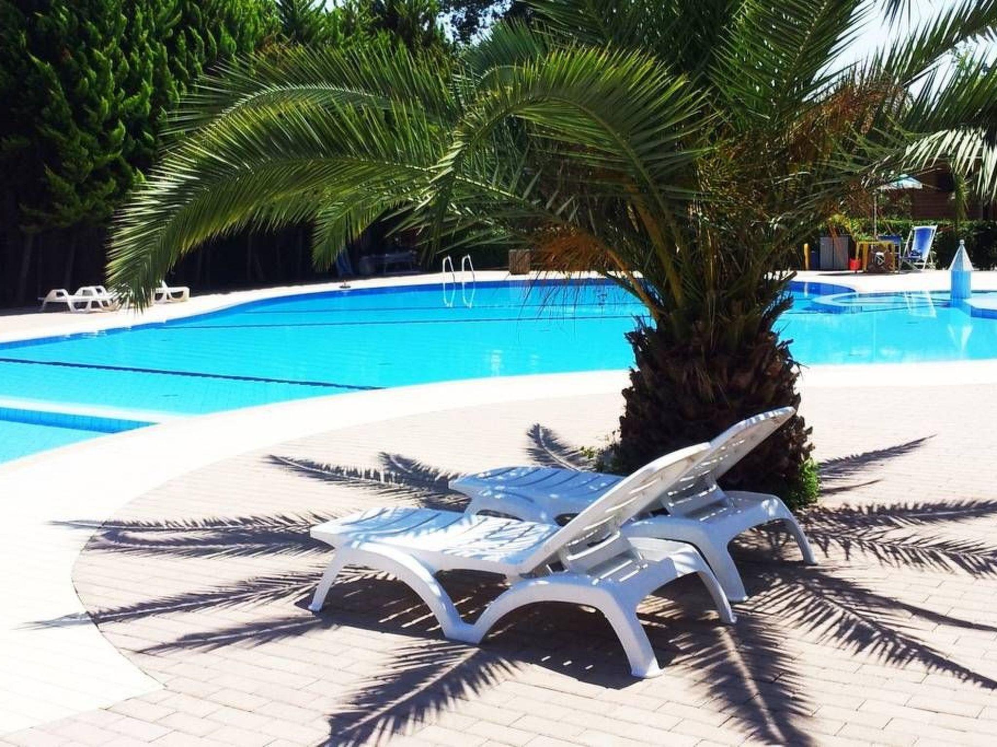 Outside there is a large, roofed and furnished veranda measuring 7 x 2m.Next to the mobile home there is a free private parking space.From the campsite there is a shuttle bus to the seaside, only in the main season There is also a large children’s playground with six large trampolines, a football pitch, climbing frames and a shared swimming pool.There are also a restaurant, a supermarket, a shop with camping gear and bike and mountain bike rental.The campsite has a capacity of around 400 places and there is a reception where Italian, German, Dutch and English are spoken.