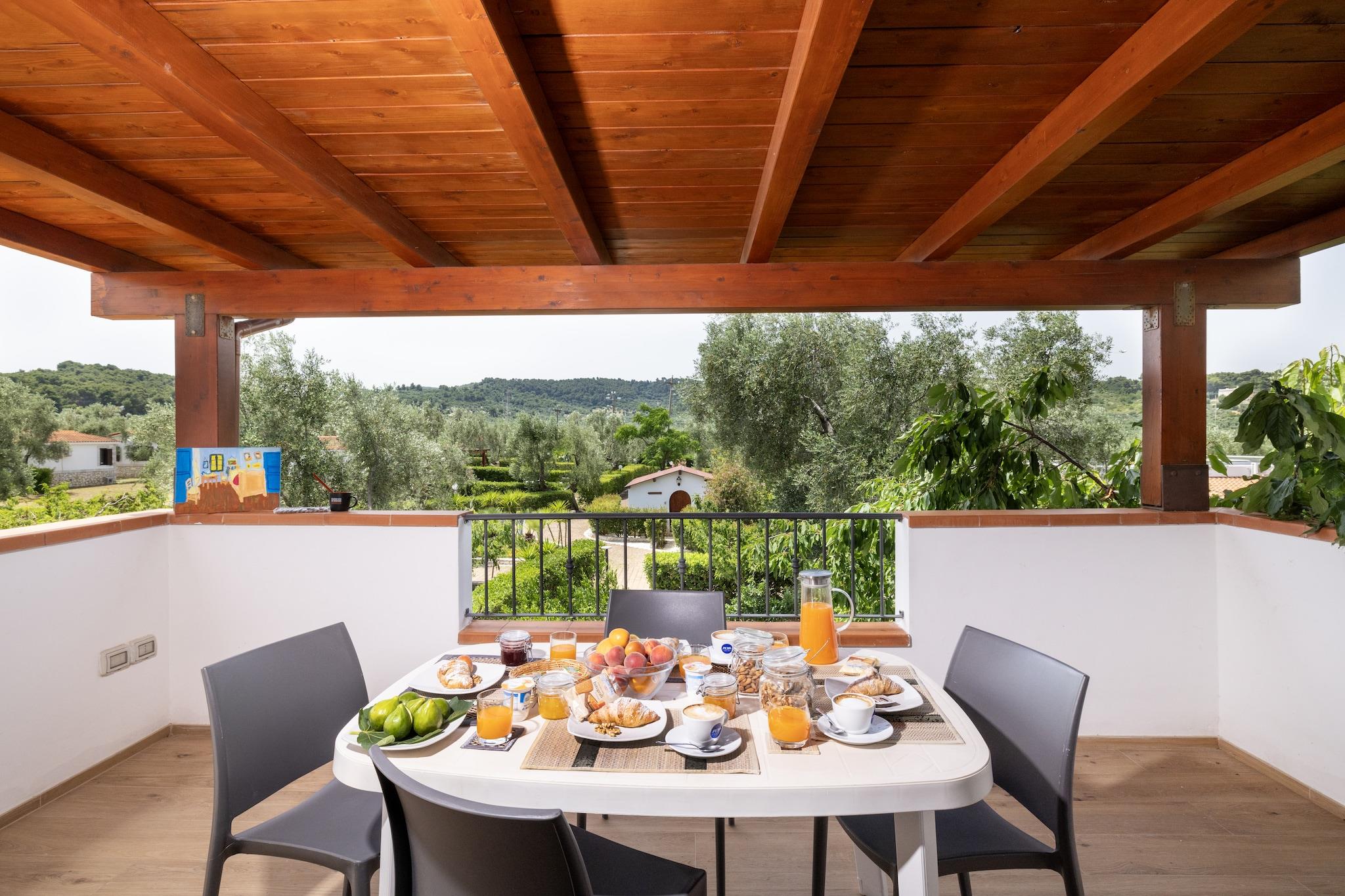 Autentisk Apulian Escape Upptäck hjärtat av Gargano på Agriturismo I Tesori del Sud - din fridfulla tillflyktsort i en bondgård bara 1,5 km från havet och 5 minuter från livliga Vieste. Din mysiga lägenhet på övervåningen ligger på den lummiga landsbygden och erbjuder ett sovrum med dubbelsäng, luftkonditionering, ett modernt pentry och en privat veranda perfekt för måltider utomhus. Njut av utsikten över cypresser och olivlundar när du kopplar av vid poolen, kopplar av i solen eller samlas runt den gemensamma grillplatsen för en solnedgångsfest. Äventyr med svans i naturen Vi välkomnar din lilla, vaccinerade hund att vara med på det roliga! Området är omgivet av den fantastiska nationalparken Gargano och är fullt av husdjursvänliga vandringsleder, kustvandringar och vidöppna utrymmen att utforska. Låt din valp leka i trädgården eller trava längs närliggande mountainbike- och stavgångsleder. För något speciellt, bege dig till Spiaggia di Scialmarino - en av regionens hundvänliga stränder bara några minuter bort. Smaka lokalt, lev lokalt Njut av apuliska smaker direkt på plats på vår restaurang och pizzeria, där vedeldade rätter och regionala viner stjäl showen. Börja dagen med leverans av färskt bröd eller smutta på espresso i baren. För lokal stil, besök Viestes historiska gamla stad, provsmaka skaldjur längs marinan eller boka en båttur för att utforska havsgrottorna och Tremitiöarna. På Tesori del Sud är varje dag en smak av la dolce vita.