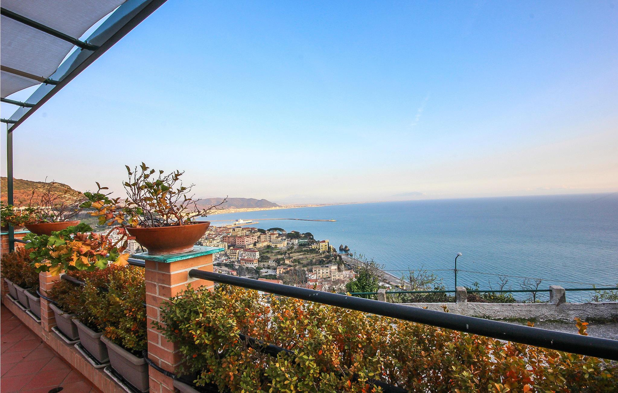 Vacker semesterlägenhet i en villa med fantastisk utsikt, bara några minuter från Vietri. Här kan gästerna njuta fullt ut av Costiera Amalfitana och nå Vietri sul Mare på fem minuters bilresa, där du kan besöka centrum med sina typiska gränder och köpa den berömda keramiken som tillverkas lokalt. Vandrare kan göra utflykter längs de stigar som förbinder de närliggande dalarna Raito, Albori med sina naturliga källor och Dragonea med dalen Cava de 'Tirreni och Badia. Den här vägen tar dig till två berömda stigar, även kända som Avvocatella och Avvocata eller Sentiero degli dei (Gudarnas stig), som erbjuder unika landskap som leder upp till Monte Pertuso ovanför Positano. Du kan också tillbringa avkopplande dagar på stranden, koppla av under den varma solen och njuta av det kristallklara vattnet vid den närliggande Marina di Vietri-stranden, den mest populära i området. Den erbjuder fin gyllene sand, rent vatten, perfekt för barn, stora parkeringsplatser i närheten, många strandresorter samt offentliga strandavsnitt. IKA153 i samma fastighet.