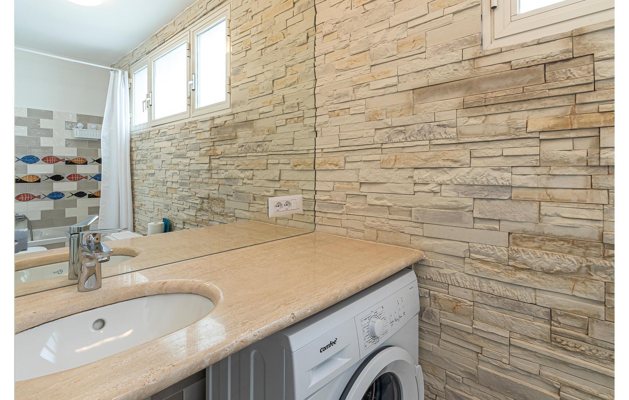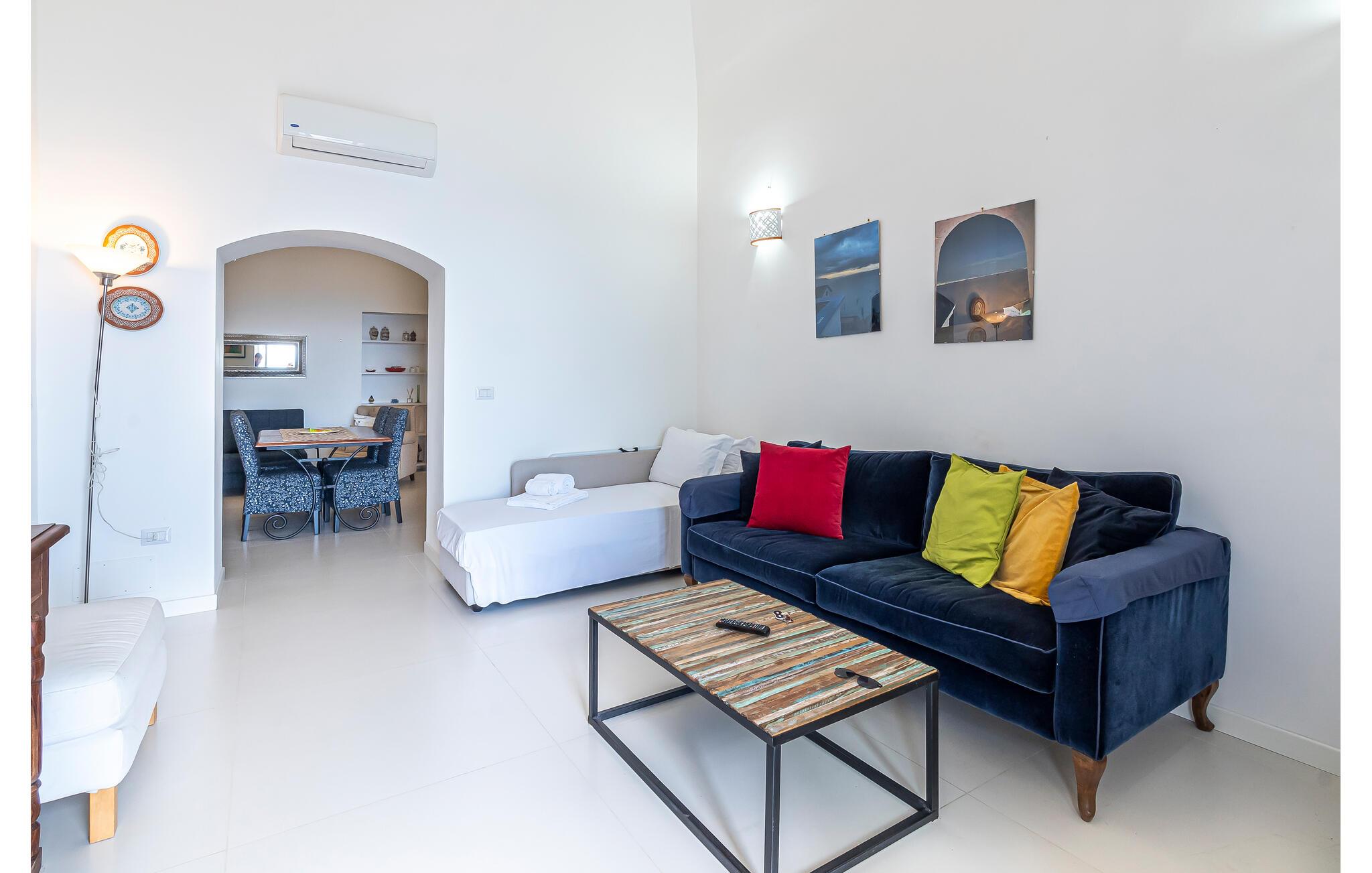 Den inbjudande lägenheten välkomnar dig nära stranden och förtrollar dig med en underbar utsikt över havet. Med sin hemtrevliga, moderna inredning och tilltalande färger erbjuder den dig den perfekta miljön för en underbar semester där du kan utforska omgivningarna och koppla av i en trevlig atmosfär. Slå er ner i soffan efter en händelserik dag eller diskutera era upplevelser över en god måltid tillsammans.