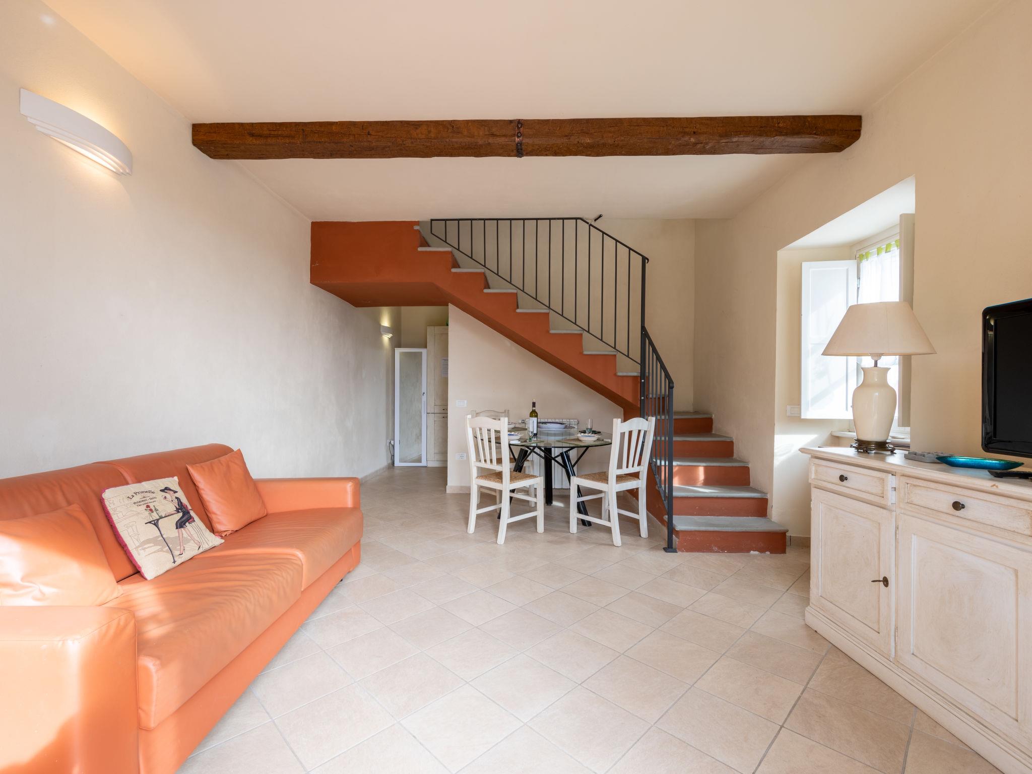 "Marco", 2-room apartment 75 m2 on 2 levels. Rustic furnishings: living/sleeping room with 1 double sofabed and TV. Exit to the terrace. Open kitchen (oven, Gas stove, 4 gas rings, toaster, kettle, electric coffee machine). Upper floor: 1 double bedroom. Shower/WC. Heating. Heating available only from 01.10. to 15.04. Natural stone floors. Terrace 25 m2. Terrace furniture. Facilities: washing machine, baby cot for up to 2 year olds. Internet (WiFi, free). Please note: maximum 1 pet/ dog allowed. Private entrance, smoke alarm, fire extinguisher. IT006179C2365DD3VU