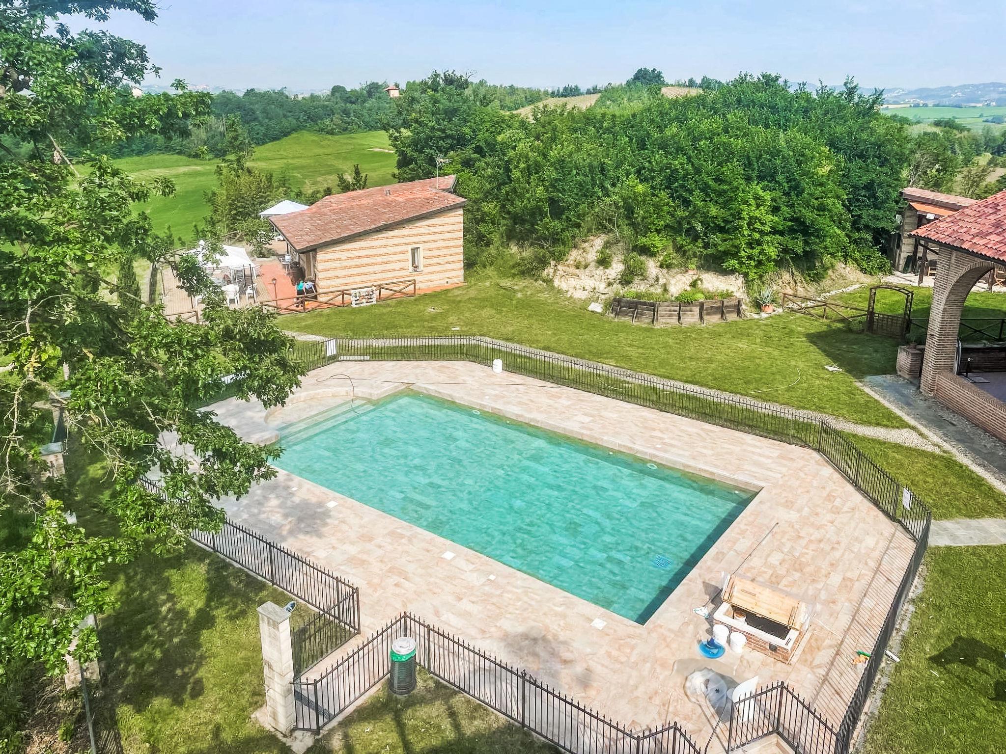 Rustic residence "La Bordona", surrounded by fields and vineyards. 18 apartments in the residence. Outside the resort, 6 km from the centre of Vignale Monferrato, in a sunny, elevated position on top of a hill. For shared use: swimming pool (13 x 7 m, depth 140 cm, seasonal availability: 20.May. - 15.Sep.). Outdoor shower. 900 m long motor access to the house (via unmade road). Parking at the house. Supermarket 2 km, restaurant 6 km, bus stop "Vignale Monferrato" 1 km, railway station "Felizzano" 5 km. Golf course (36 hole) 6 km. Nearby attractions: Asti 25 km, Alba 50 km, Turin 85 km. Please note: car recommended.