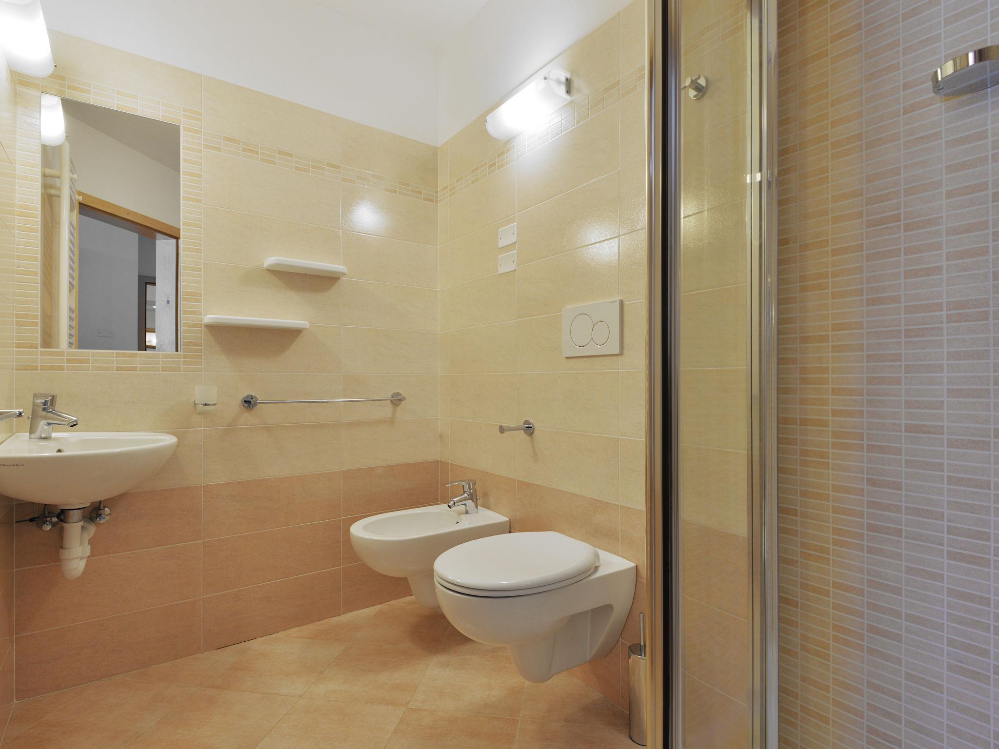 Apartment house "Fabio Deluca", 1'390 m a.s.l.. In the resort 300 m from the centre of Vigo di Fassa, 2.9 km from the centre of Pozza di Fassa, 38 km from the centre of Bolzano, 100 m from the skiing area. In the house: storage room for bicycles, storage room for skis. In Winter: please take snow chains. Parking (for 3 cars). E-charging station. Grocery 300 m, supermarket 1.1 km, restaurant 20 m, bus stop "Vigo di Fassa" 300 m, indoor swimming pool 4.9 km. Ski lift 100 m, gondola lift 3.8 km, slopes 100 m, ski bus stop 300 m, cross country ski track 1.7 km. Well-known ski regions can easily be reached: Buffare (Sella Ronda) 3.8 km, Ciampedie 100 m. Please note: the owner lives in the same residence.