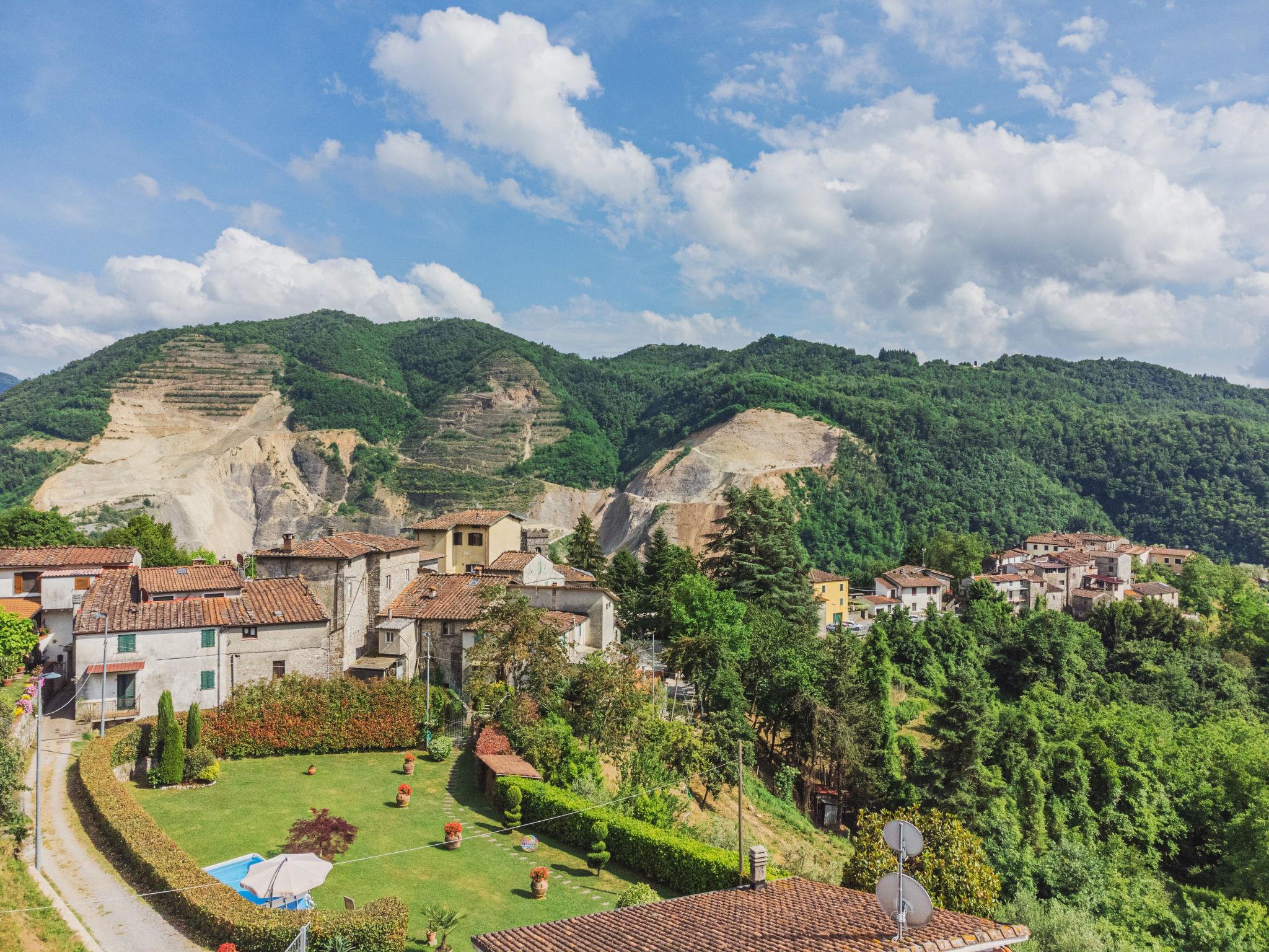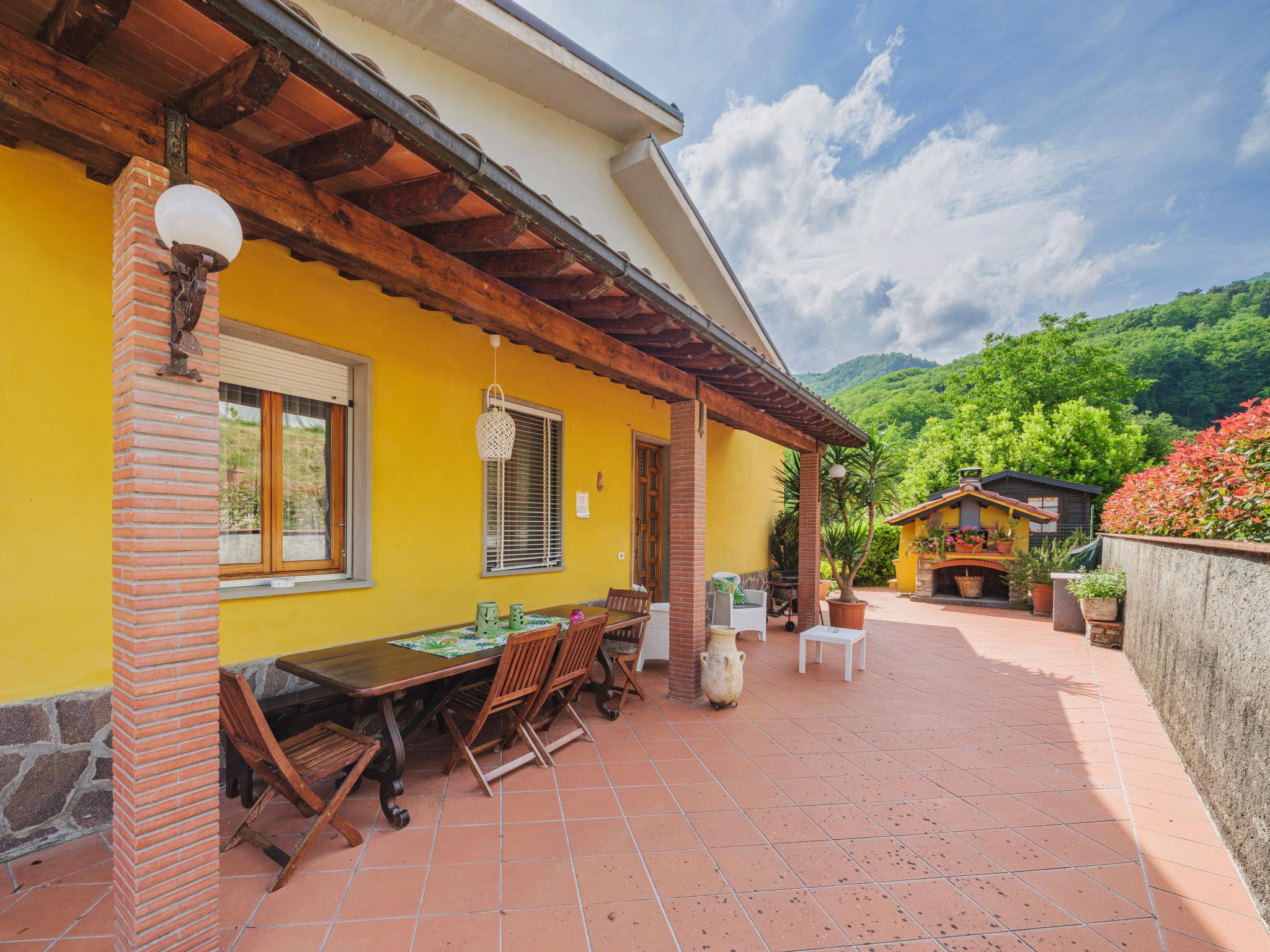 Single-family house "Bataba", 350 m a.s.l., surrounded by trees. 80 m from the centre of Villa a Roggio, 5 km from the centre of Diecimo, 21 km from the centre of Lucca, in a sunny, elevated position on a slope, 33 km from the sea, 33 km from the beach, in the countryside. Private: beautiful, well-kept garden 3'000 m2 (fenced) with lawn and wildlife garden, swimming pool (above ground) (5 x 3 m, depth 120 cm, seasonal availability: 06.May. - 09.Oct.). Outdoor shower. 70 m footpath to the house. Public parking. Shop 5 km, supermarket 8 km, bus stop 70 m. Nearby attractions: Firenze 108 km, Antro del Corchia, Levigliani 68 km, Pisa 40 km, Montecatini Terme 46 km, Viareggio 36 km, Forte dei Marmi 56 km. Well-known lakes can easily be reached: Torre del Lago 40 km, Lago di Massaciuccoli 39 km. Please note: car recommended.