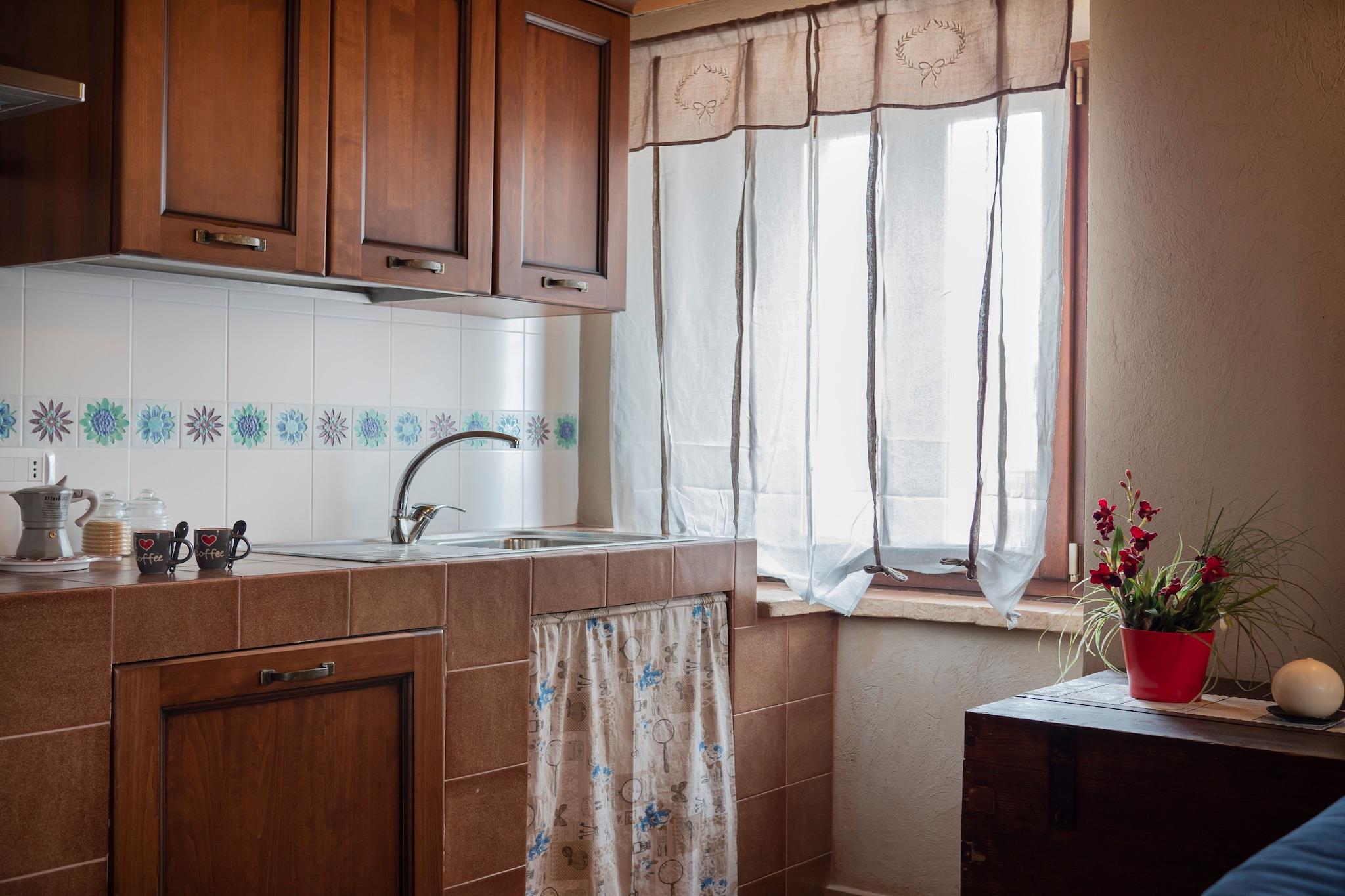 Tack vare värme- och kylsystemet är det ett utmärkt val för mysiga vintersemestrar eller varma sommardagar. Gästerna har tillgång till en stor gemensam pool, perfekt för avkoppling och att njuta av lugna stunder, vilket gör detta boende till det perfekta valet för en bekväm och autentisk semester. Bara 300 meters promenad bort hittar du en stormarknad, barer och banktjänster, så att du kan njuta av byns livliga atmosfär. För en dag på stranden ligger stranden cirka 20 km bort, medan du bara några steg bort kan njuta av berömd italiensk mat på en typisk lokal restaurang. Boendet har också privat parkering på fastigheten.