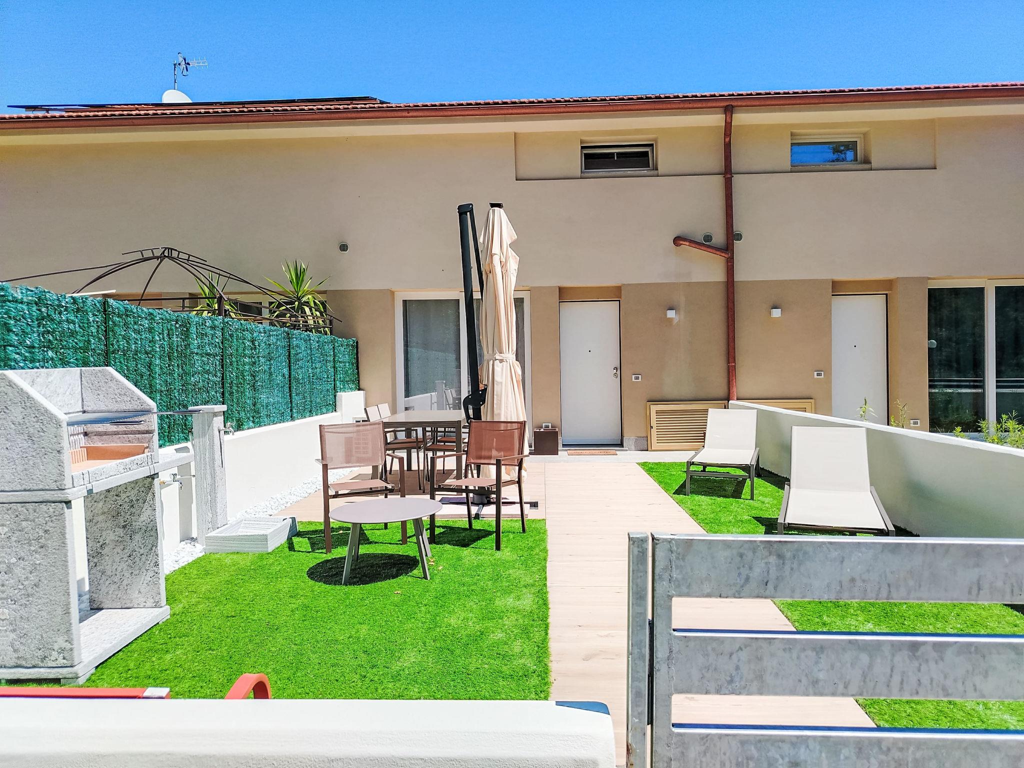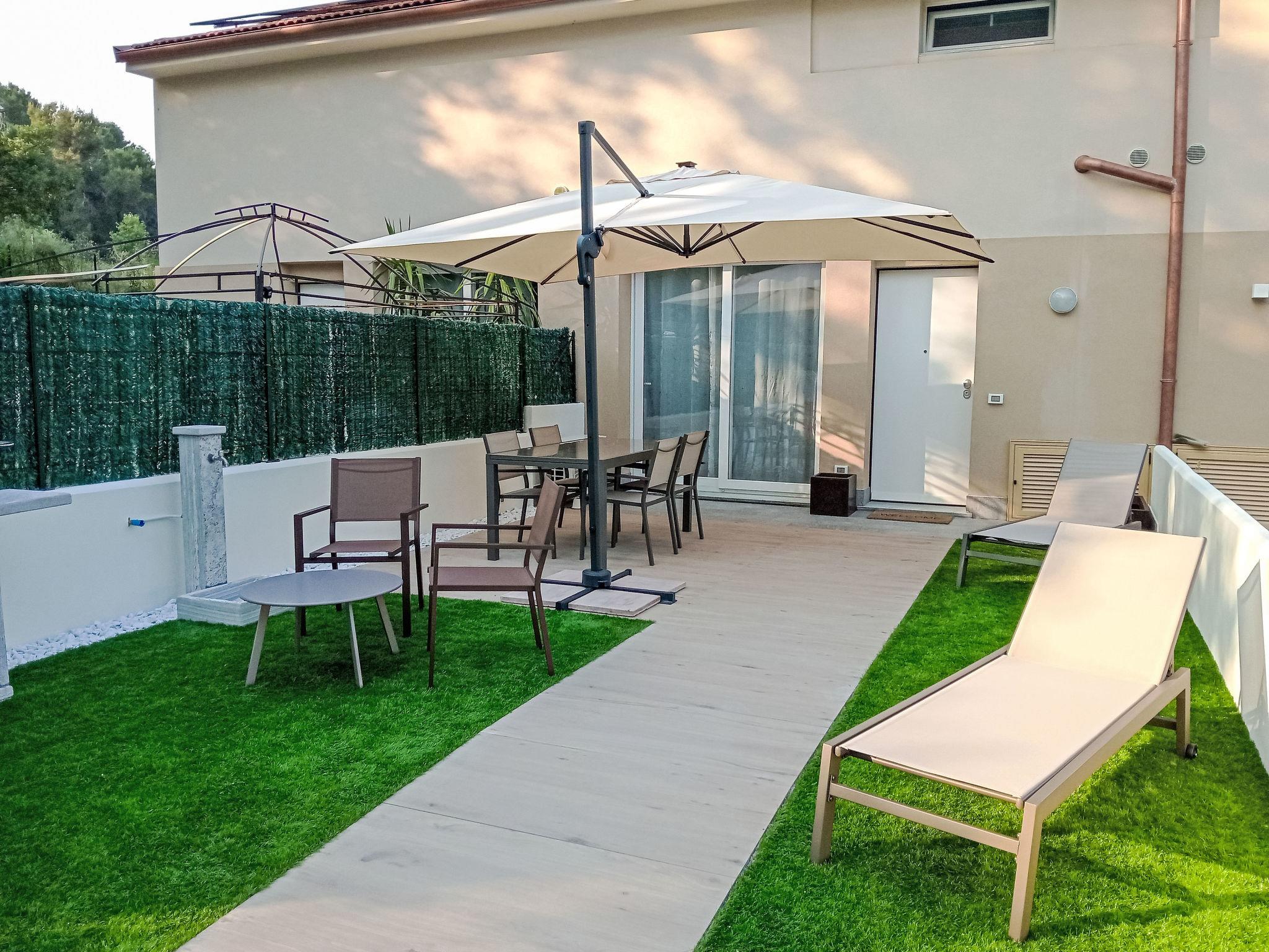 "Suite Garden 31", 2-room terraced house 70 m2, on the ground floor. Modern and tasteful furnishings: living/dining room with 1 double sofabed (160 cm, length 200 cm), TV. Exit to the garden. Kitchen-/living room (oven, dishwasher, 4 ceramic glass hob hotplates, toaster, kettle, microwave, electric coffee machine). Exit to the garden. Shower/bidet/WC. 2nd upper floor: 1 double bedroom. Shower/bidet/WC. Air-conditioning, forced-air heating. Heating available only from 01.11. to 15.04. Patio 50 m2. Terrace furniture, barbecue. Facilities: washing machine, mosquito net, baby cot for up to 2 year olds. Internet (WiFi, free). Garage. Please note: non-smoking house. Maximum 1 pet/ dog allowed. Private entrance, smoke alarm, fire extinguisher. IT009068B47XGQL8UQ