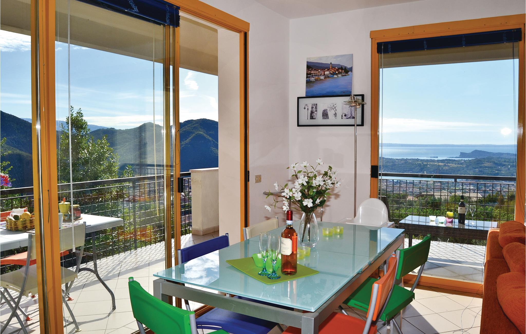 Härligt semesterhus i ett bostadsområde med gemensam pool och utsikt över sjön. Huset är på tre våningar. 1:a våningen: entré, ljust vardagsrum med pentry och panoramaterrass för måltider utomhus eller aperitifer. På bottenvåningen: badrum, två sovrum varifrån en delvis terrasserad trädgård nås (tillgång via en liten trappa). I källaren: öppet sovrum med dubbelsäng och eget badrum (fönstren vetter mot ett hålrum mellan två väggar). För avkoppling erbjuder det lilla boendet sina gäster en pool. Det bekväma läget är idealiskt för att upptäcka Gardasjöns skönheter: det berömda Salò med museer, restauranger och butiker ligger 8,5 km bort, Toscolano Maderno med pittoreska vandringsleder 14,5 km, Gardone Riviera med Vittoriale 9,6 km, Sirmione med sina termalbad 37 km. Du kan också nå de pittoreska byarna på sjöns östra strand med båt. Gardasjön är också idealisk för sporter som kanotpaddling, segling, surfing, båtliv, sportfiske, dykning, vandring, mountainbike och ridning. I närheten väntar naturparker och vattenparker för underhållning för alla åldersgrupper. WiFi upp till 1 GB/per dag max.
