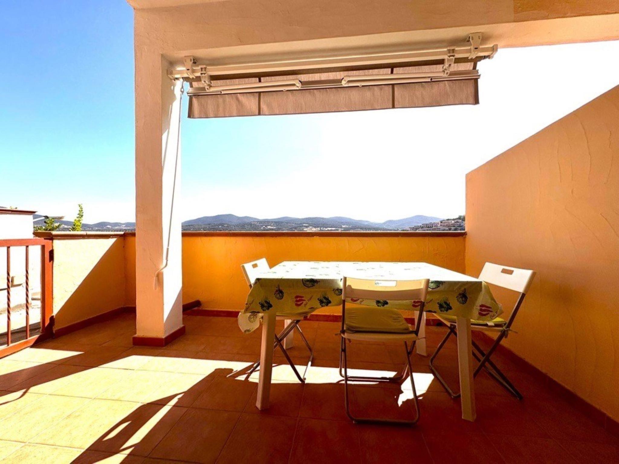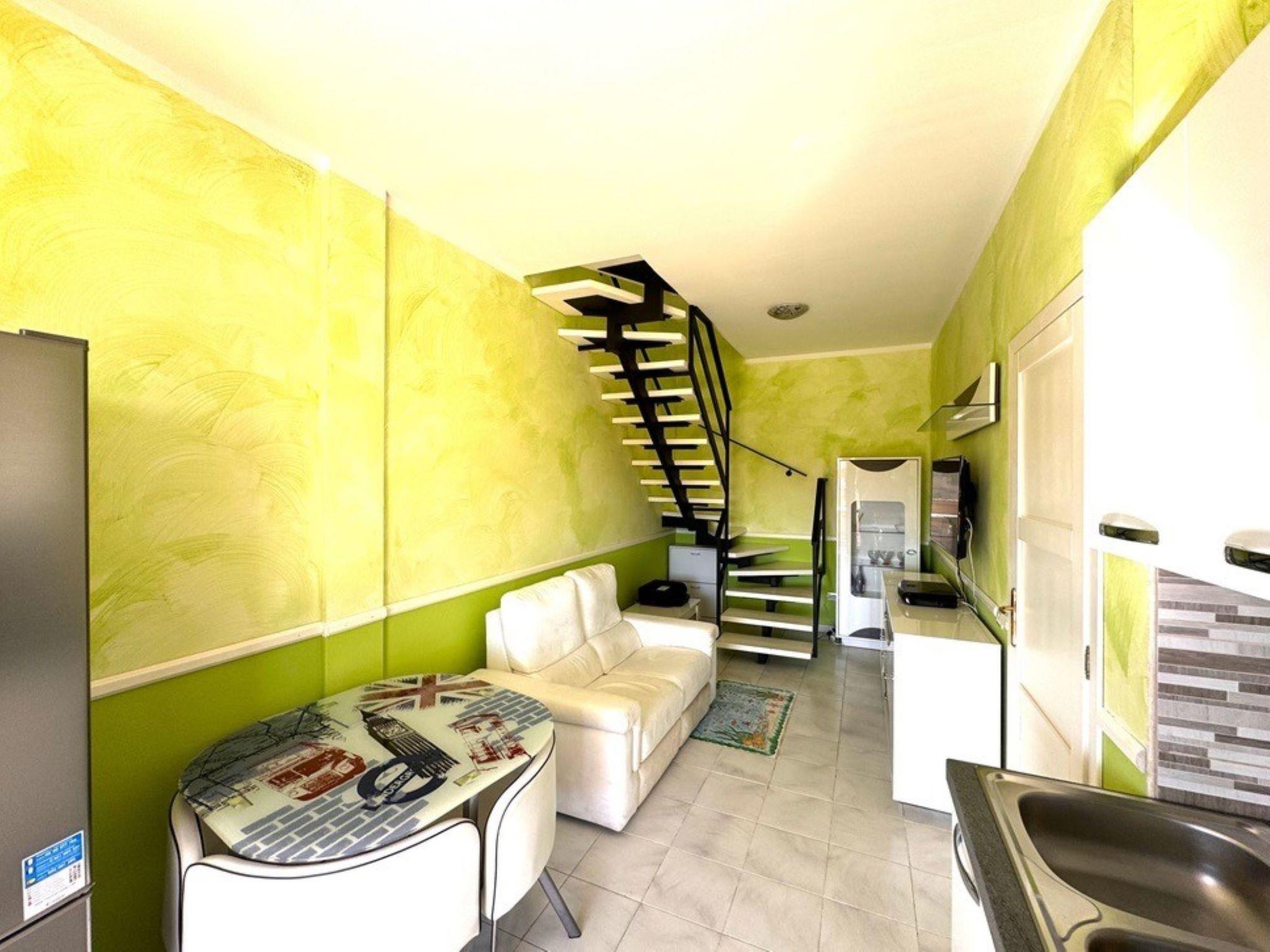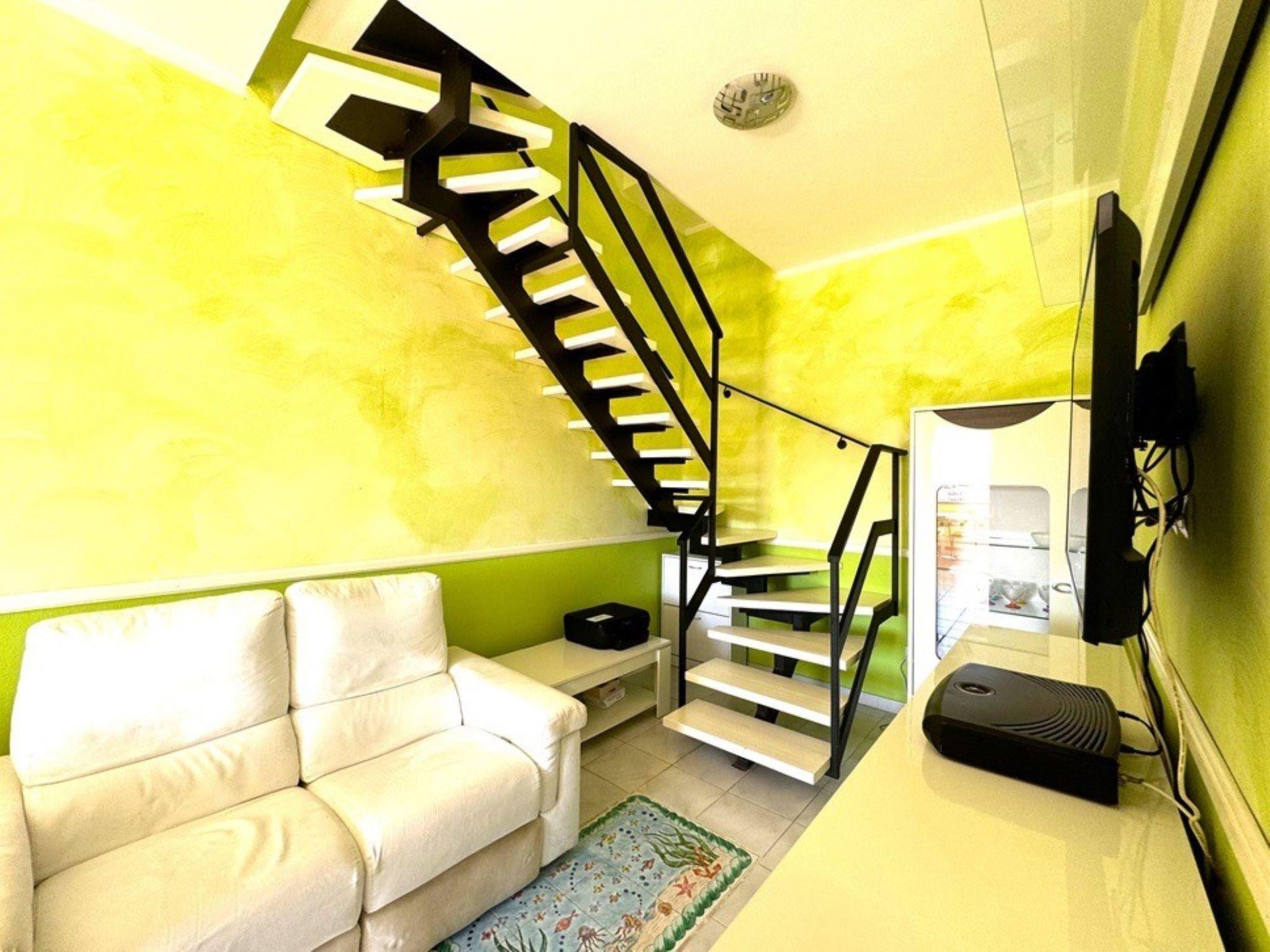 3-room terraced house 60 m2 on 1st floor. Simple and comfortable furnishings: living/dining room with 1 double sofabed, dining table and TV (flat screen). Exit to the veranda. Kitchenette (4 hot plates, oven, freezer). Shower/bidet/WC. Upper floor: (steep stair), 1 room with 1 double bed, TV and air conditioning. Exit to the balcony. 1 room with 1 bed, 1 pull-out bed, TV and air conditioning. Exit to the balcony. Shower/bidet/WC. Air-conditioning, forced-air heating. Terrace roofed. Beautiful view of the resort. Facilities: washing machine, iron, children's high chair, baby cot for up to 2 year olds (extra), hair dryer. Internet (WiFi). IT111105C2000U2331