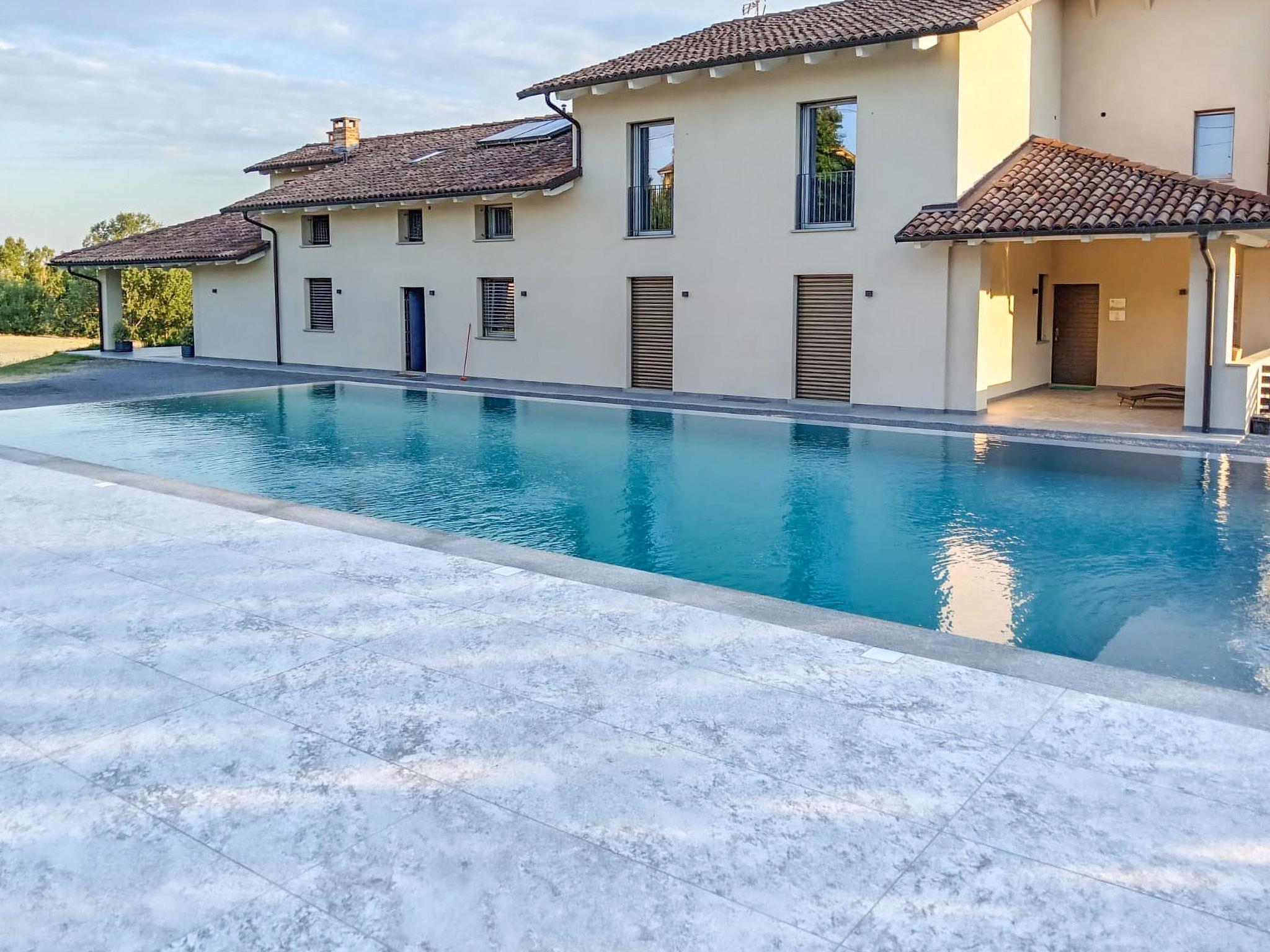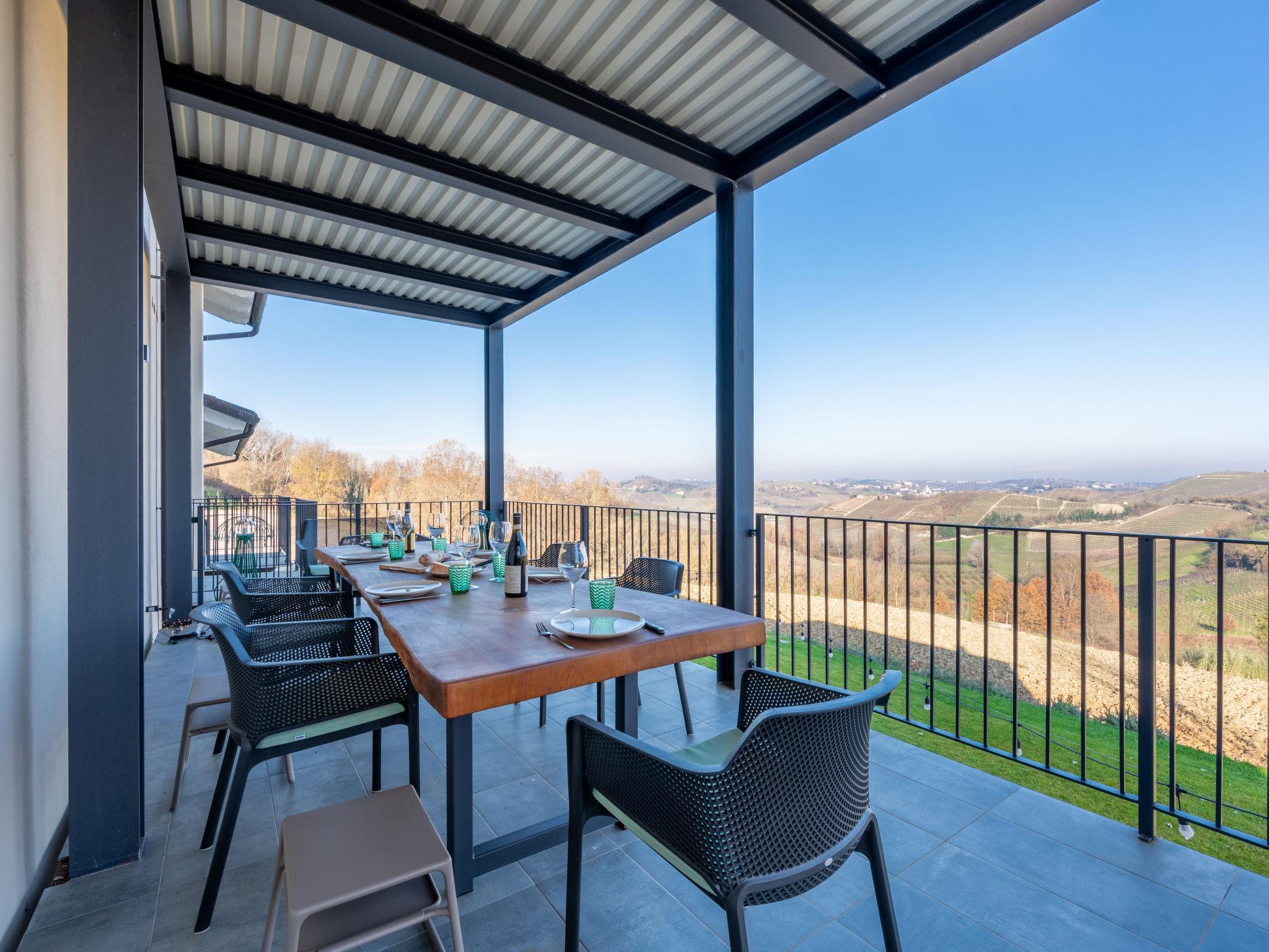 Very beautiful on a vinyard "Tenuta Bricco San Giorgio", built in 2024, surrounded by meadows, fields and vineyards. Outside the resort, 3 km from the centre of Vinchio, in a sunny position on top of a hill. For shared use: large, well-kept terraced garden with lawn and trees. Private: swimming pool (10 x 6 m, depth 140 cm, seasonal availability: 01.Jul. - 15.Oct.). Pool maintenance by the owner/gardener. Breakfast possible on request (extra). Parking at the house on the premises. Grocery 3 km, supermarket 6 km, bus stop "Vinchio" 3 km, railway station "Nitzza Monferrato" 6 km. Nearby attractions: Asti 25 km, Alba 35 km, Turin 80 km. Please note: car recommended. Not suitable for children under 12 years. The owner does not accept any youth groups. Local sale of farm products. Owner lives in separate semi-detached house.