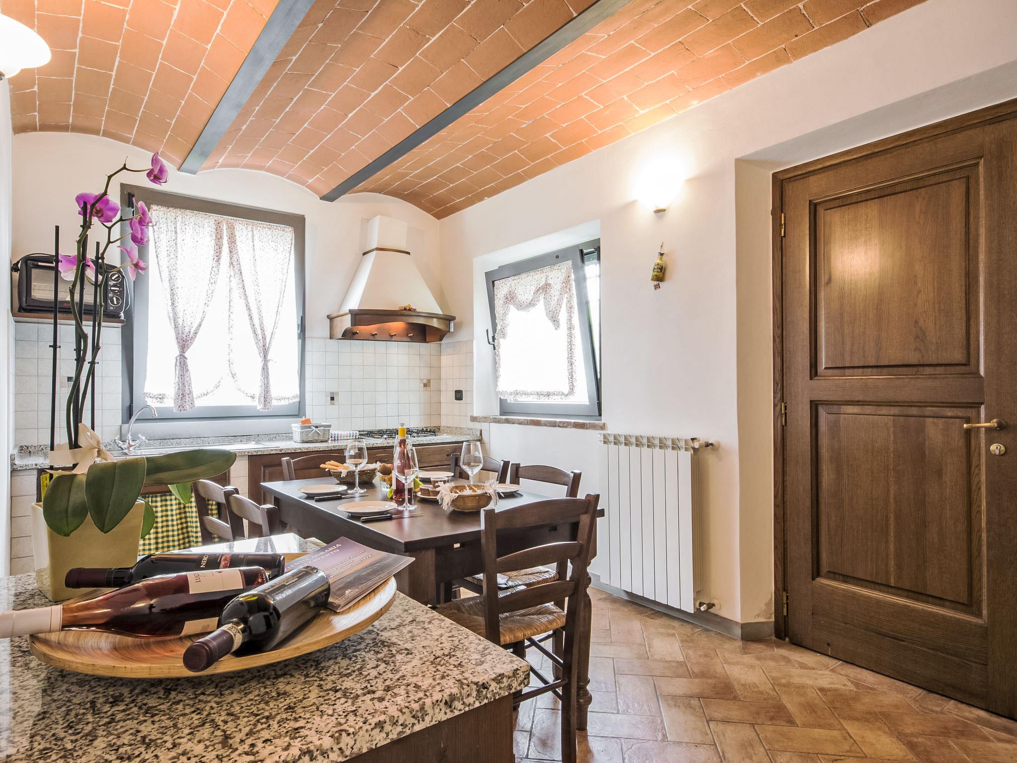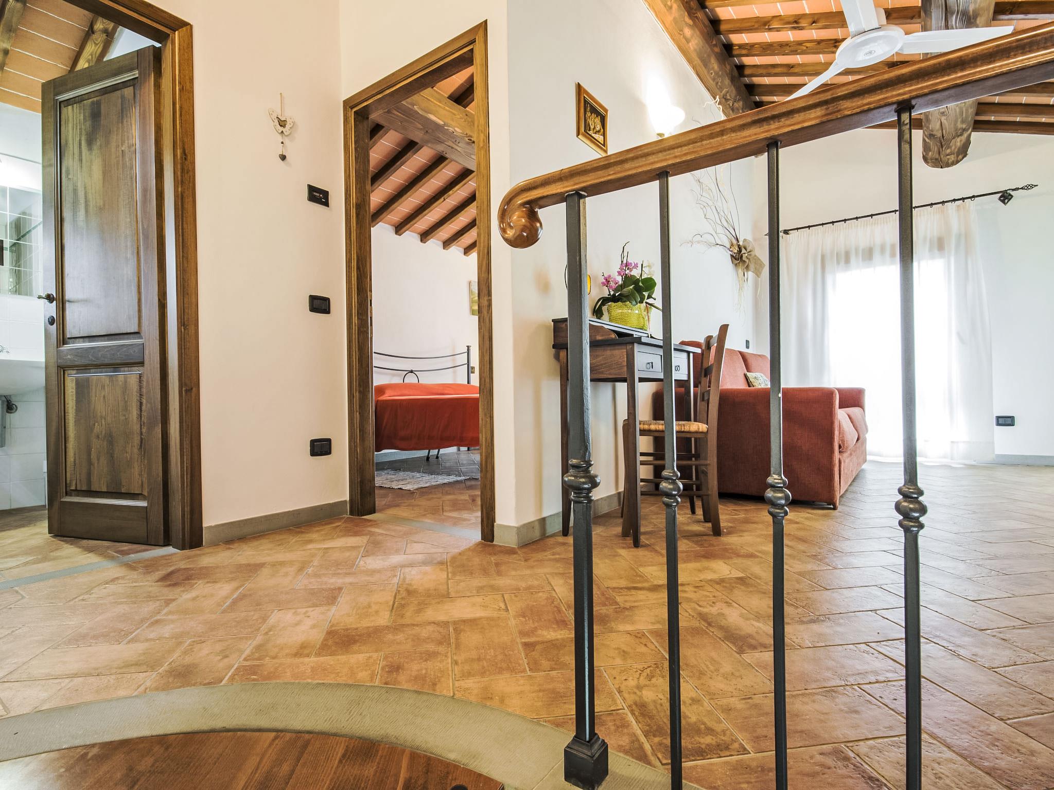 Large working farm 150 m a.s.l.. 4 apartments in the property. 6 km from the centre of Vinci, 48 km from the centre of Firenze, 60 km from the centre of Pisa, located by a road, in the countryside. For shared use: garden 1'000 m2, swimming pool (12 x 6 m, depth 140 cm, seasonal availability: 04.May. - 28.Sep.). Outdoor shower, garden furniture, barbecue. Heating to be paid on the spot, heating available only from 01.Nov. - 07.Apr.. Parking on the premises. Supermarket 5 km, restaurant 5 km, bus stop 2 km, sandy beach "Versilia" 65 km, thermal baths "Montecatini Terme" 19 km. Golf course (18 hole) 14 km. Nearby attractions: San Miniato 16 km, Montecatini Terme 19 km, Carmignano 21 km, Pistoia 23 km, San Casciano in Val di Pesa 42 m, San Gimignano 50 km. Please note: guarded residence. The owner lives on the same property.