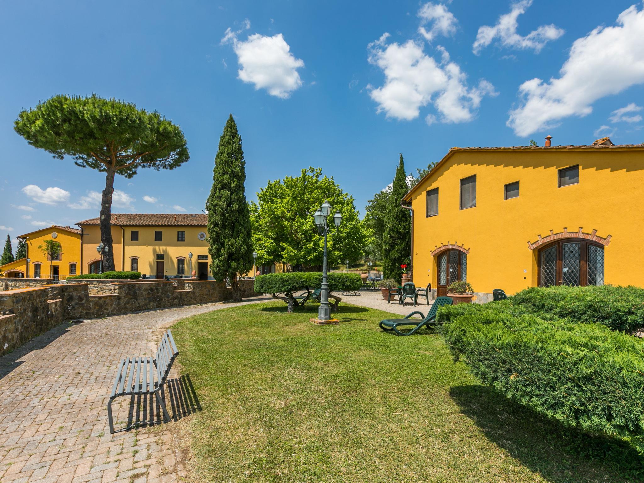 Large working farm "Montereggi", built in 1600. 12 apartments in the property. 12 km from the centre of Vinci, 33 km from the centre of Firenze, 45 km from the centre of San Gimignano, in a secluded, quiet, sunny position on top of a hill, in the countryside. For shared use: property 100 ha, swimming pool fenced (18 x 8 m, depth 100 - 150 cm, seasonal availability: 04.May. - 28.Sep.). Outdoor shower, garden furniture, barbecue. In the complex: WiFi, washing machine. Motor access to the house (600 m via unmade road). Parking at the house. E-charging station. Grocery 1 km, supermarket 3 km, bus stop 300 m, railway station "Montelupo Fiorentino" 3 km, thermal baths "Montecatini Terme" 33 km. Golf course (9 hole) 9 km. Nearby attractions: Montelupo Fiorentino 5 km, Carmignano 10 km, San Miniato 17 km, San Casciano in Val di Pesa 22 km. Local sale of farm products. Please note: the photograph shows a typical example.