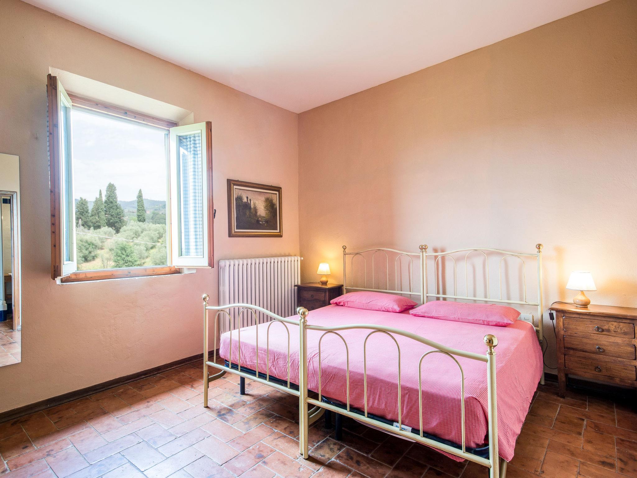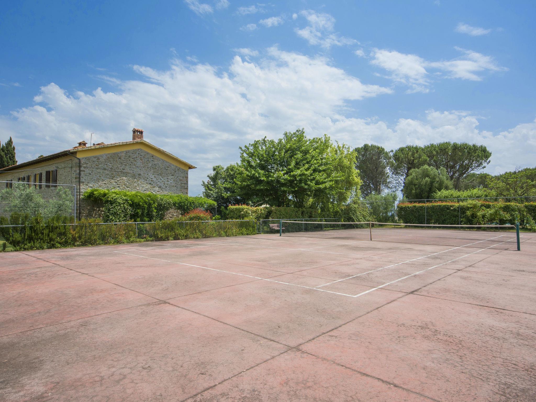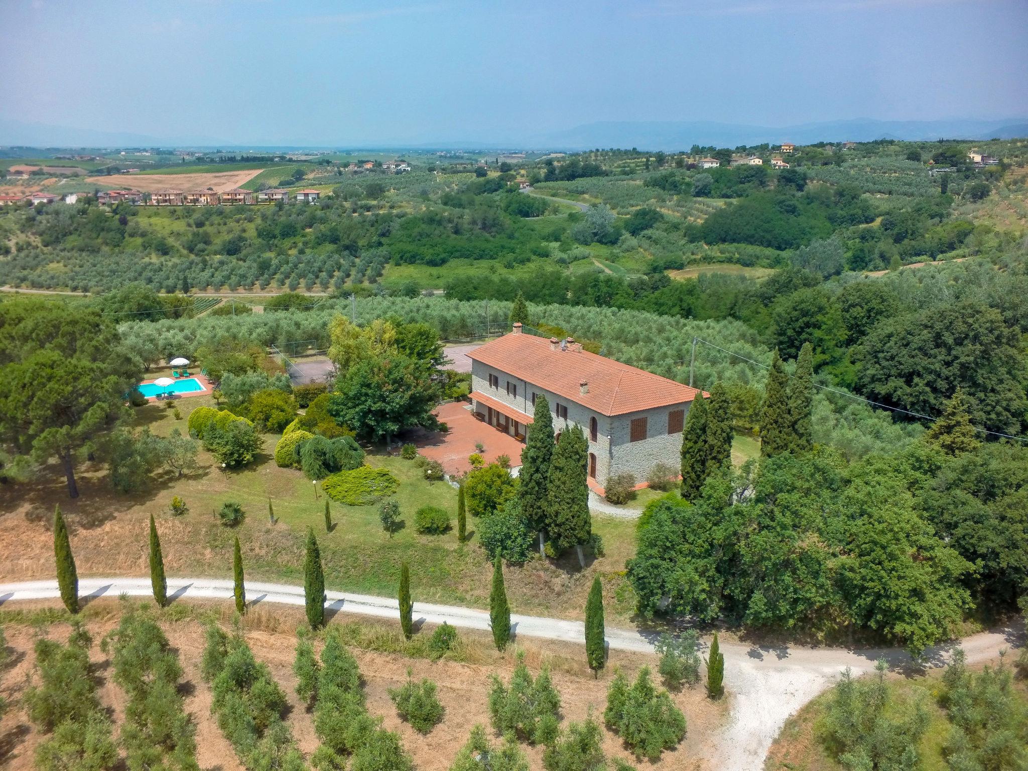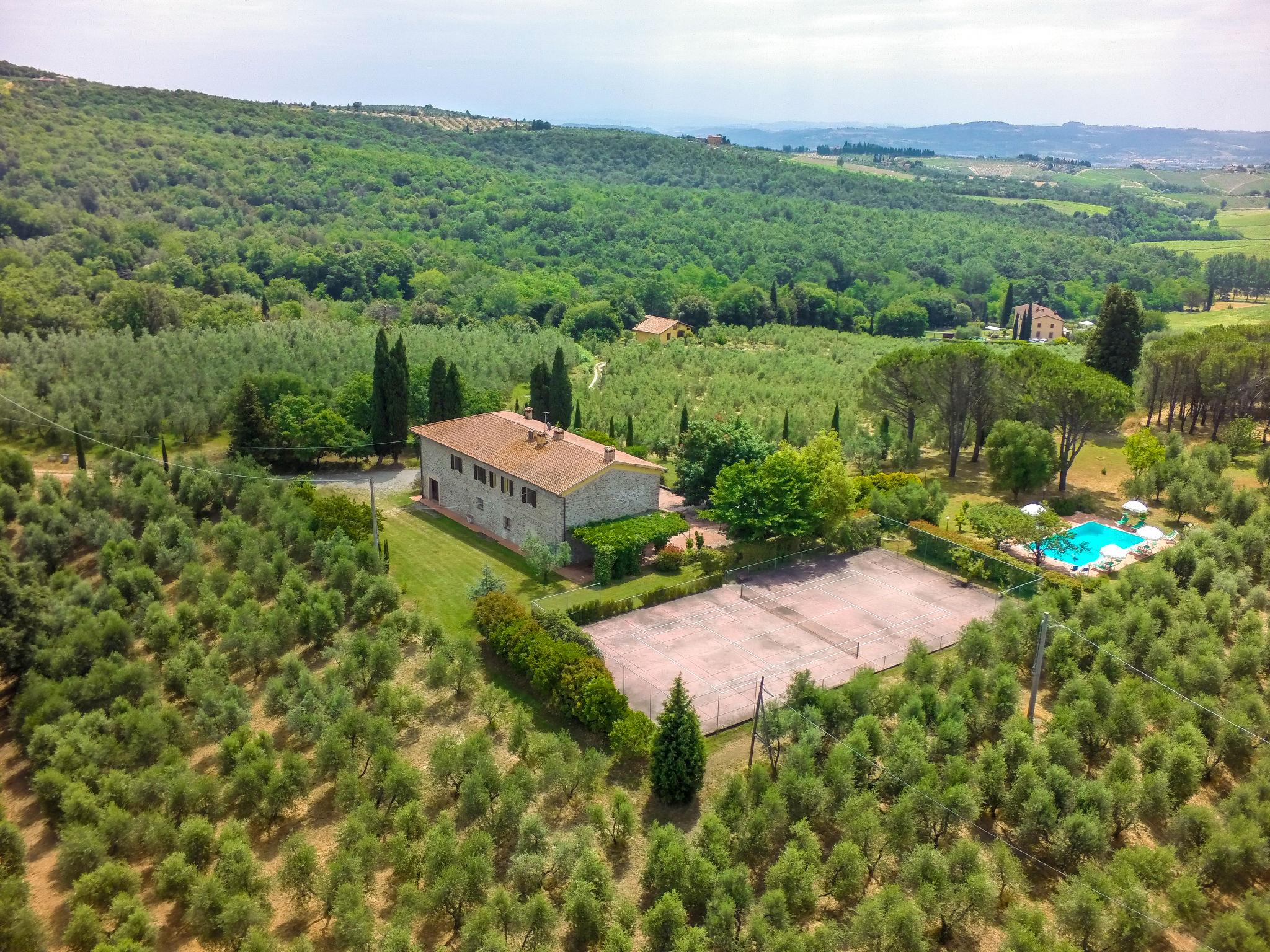 Cosy country house "Il Leccio". 4 km from the centre of Vinci, in a secluded, quiet position on top of a hill, in the countryside. Private: property 2 ha, beautiful garden to relax, swimming pool (6 x 12 m, depth 140 - 240 cm, seasonal availability: 03.Apr. - 16.Oct.). Tennis (1 x hard court), pergola, terrace, garden furniture, barbecue. In the house: internet access, heating to be paid on the spot (06.Nov. - 15.Apr.). Room cleaning on request (extra). Cook on request (extra). Motor access (200 m via unmade road). Parking at the house on the premises. Shop 4 km, bus stop 2 km, railway station "Empoli" 8 km, sandy beach 60 km. Golf course 12 km, riding stable 5 km. Nearby attractions: Firenze 40 km, Pisa 50 km.