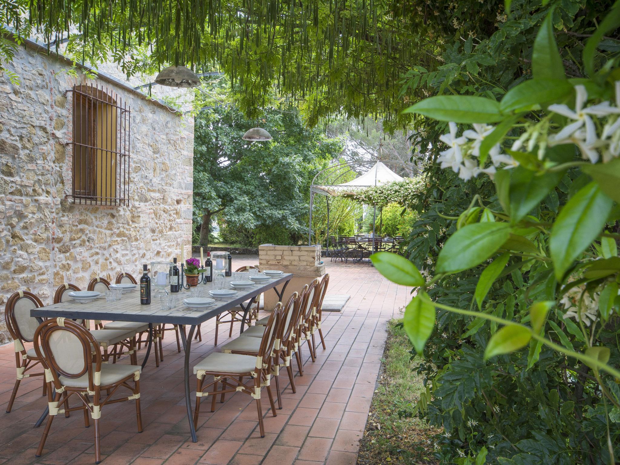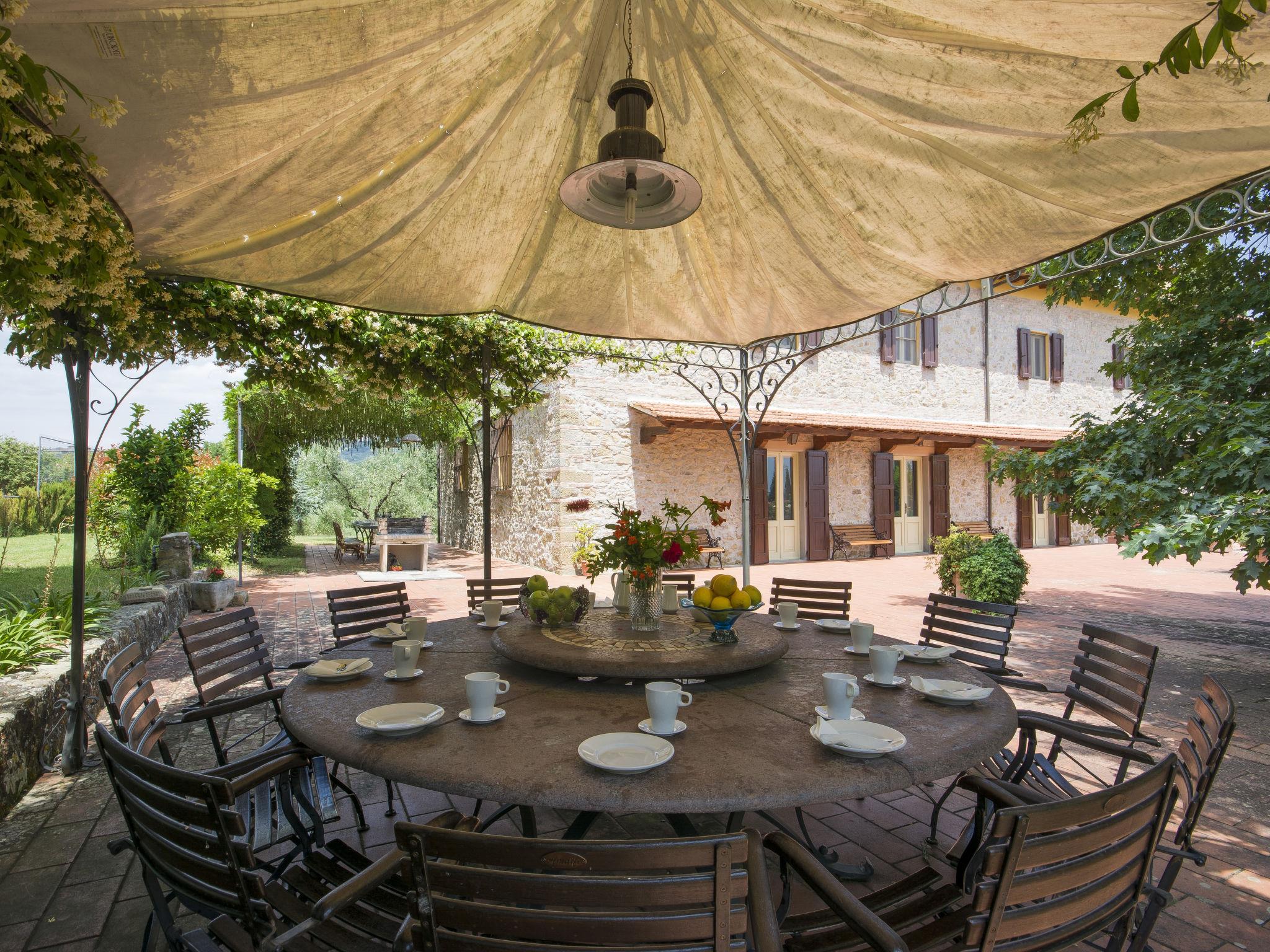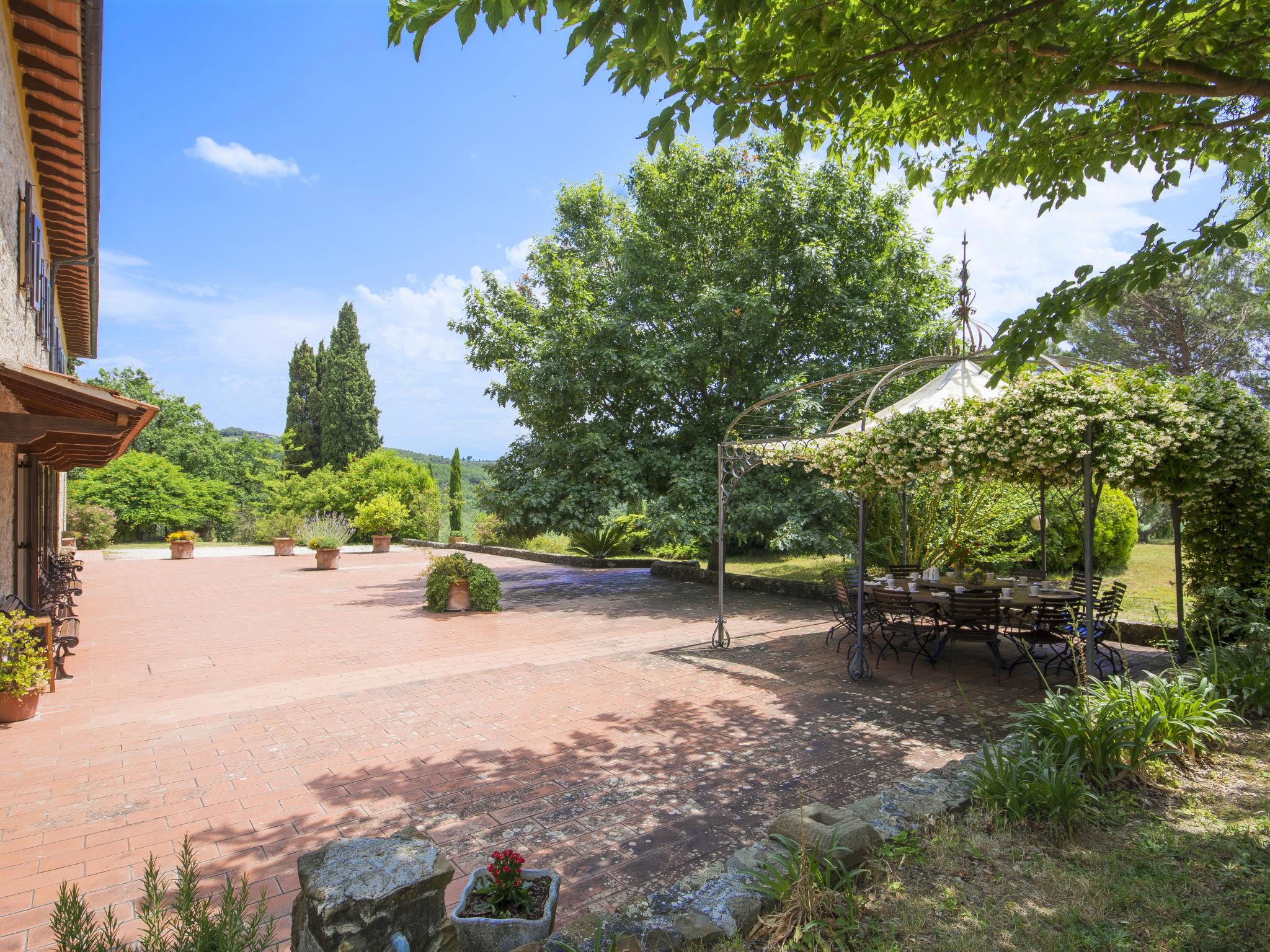 8-room house 400 m2 on 2 levels, on the ground floor. Renovated, rustic and cosy furnishings: entrance hall. Large living/dining room with open-hearth fireplace and satellite TV. Exit to the garden, to the terrace. Open kitchen (5 hot plates, oven, dishwasher, microwave, electric coffee machine, pizza oven). 2 showers. Upper floor: living room. 2 double bedrooms. 1 large room with 2 beds and 1 double bed. 1 room with 2 beds. 2 rooms, each room with 2 beds and shower/bidet/WC (private). 2 showers/bidet/WC, double hand-basin. Large garden. Terrace furniture, barbecue, sitting area. Beautiful panoramic view of the countryside. Facilities: washing machine, children's high chair, baby cot for up to 2 year olds. Internet (WiFi, free). Suitable for families. Maximum 1 pet/ dog allowed. IT048050C256MRUN9Q