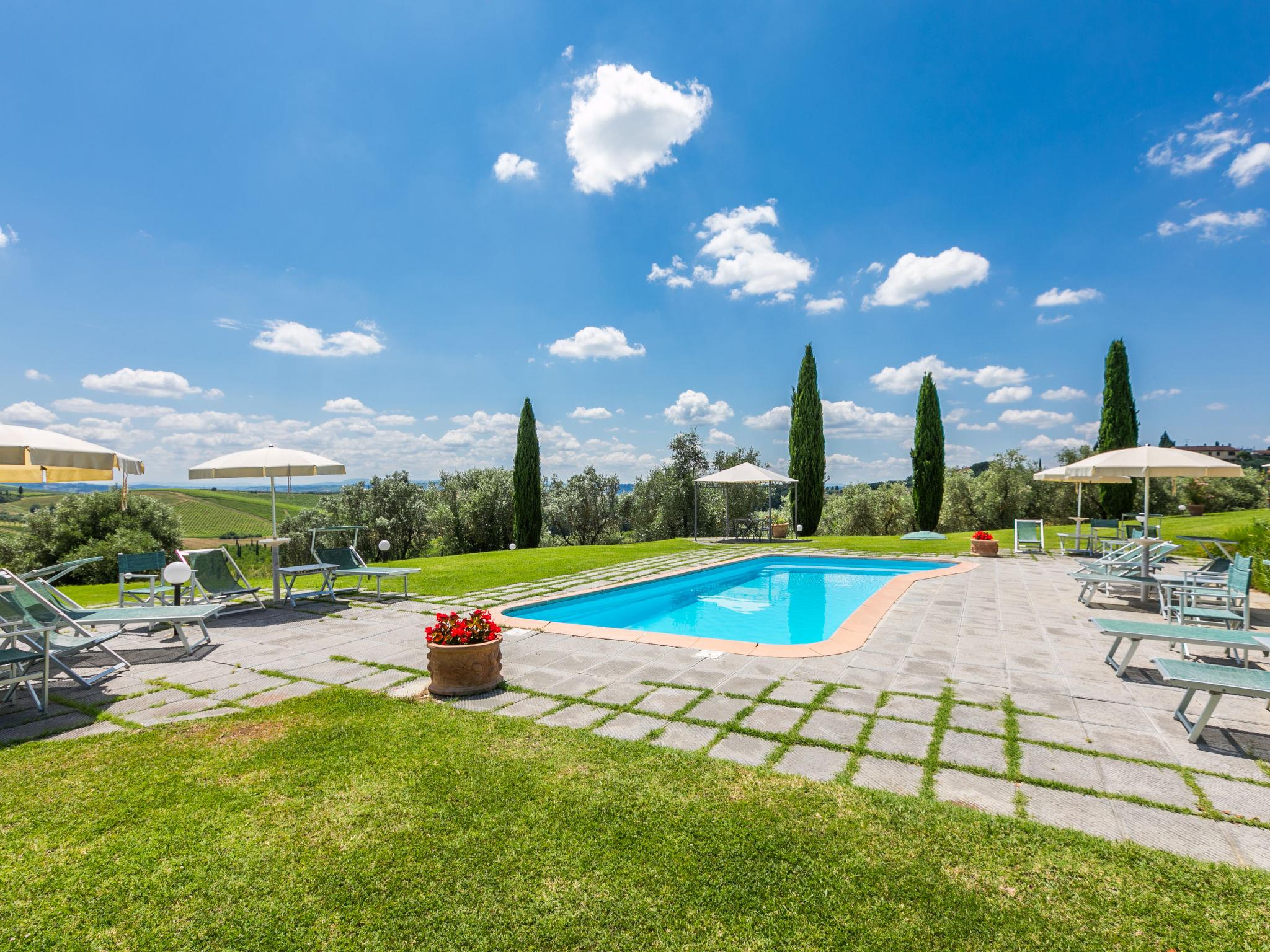 Casalsole, a structure located in the Florentine hills, is made up of twelve apartments (10 studio apartments and 02 two-room apartments). All apartments are equipped with a hideaway kitchenette. Agriturismo "Casalsole", 200 m a.s.l.. 12 apartments in the property. 8 km from the centre of Vinci, 45 km from the centre of Firenze, 53 km from the centre of Pisa, in a sunny position on top of a hill, in the countryside. For shared use: garden 15 ha (not fenced), swimming pool (11 x 5 m, depth 140 cm, seasonal availability: 15.May. - 06.Oct.). Outdoor shower, garden furniture, barbecue, pool maintenance by the owner/gardener. In the house: laundry, washing machine (for shared use). Parking on the premises. Shop 3 km, grocery 3 km, supermarket 3 km, bus stop 2.5 km, sandy beach "Versilia" 65 km, thermal baths "Montecatini Terme" 22 km. Golf course (18 hole) 18 km. Nearby attractions: San Miniato 11 km, Montecatini Terme 22 km, Carmignanano 30 km, Lucca 46 km, San Gimignano 48 km, Volterra 59 km. Local sale of farm products. Please note: the photograph shows a typical example. The farm produces oil and wine and organizes extra tastings in its cellar.