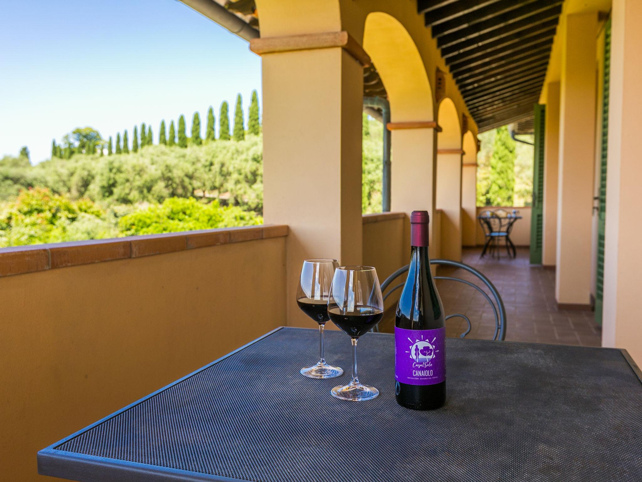 Casalsole, a structure located in the Florentine hills, is made up of twelve apartments (10 studio apartments and 02 two-room apartments). All apartments are equipped with a hideaway kitchenette. Agriturismo "Casalsole", 200 m a.s.l.. 12 apartments in the property. 8 km from the centre of Vinci, 45 km from the centre of Firenze, 53 km from the centre of Pisa, in a sunny position on top of a hill, in the countryside. For shared use: garden 15 ha (not fenced), swimming pool (11 x 5 m, depth 140 cm, seasonal availability: 15.May. - 06.Oct.). Outdoor shower, garden furniture, barbecue, pool maintenance by the owner/gardener. In the house: laundry, washing machine (for shared use). Parking on the premises. Shop 3 km, grocery 3 km, supermarket 3 km, bus stop 2.5 km, sandy beach "Versilia" 65 km, thermal baths "Montecatini Terme" 22 km. Golf course (18 hole) 18 km. Nearby attractions: San Miniato 11 km, Montecatini Terme 22 km, Carmignanano 30 km, Lucca 46 km, San Gimignano 48 km, Volterra 59 km. Local sale of farm products. Please note: the photograph shows a typical example. The farm produces oil and wine and organizes extra tastings in its cellar.