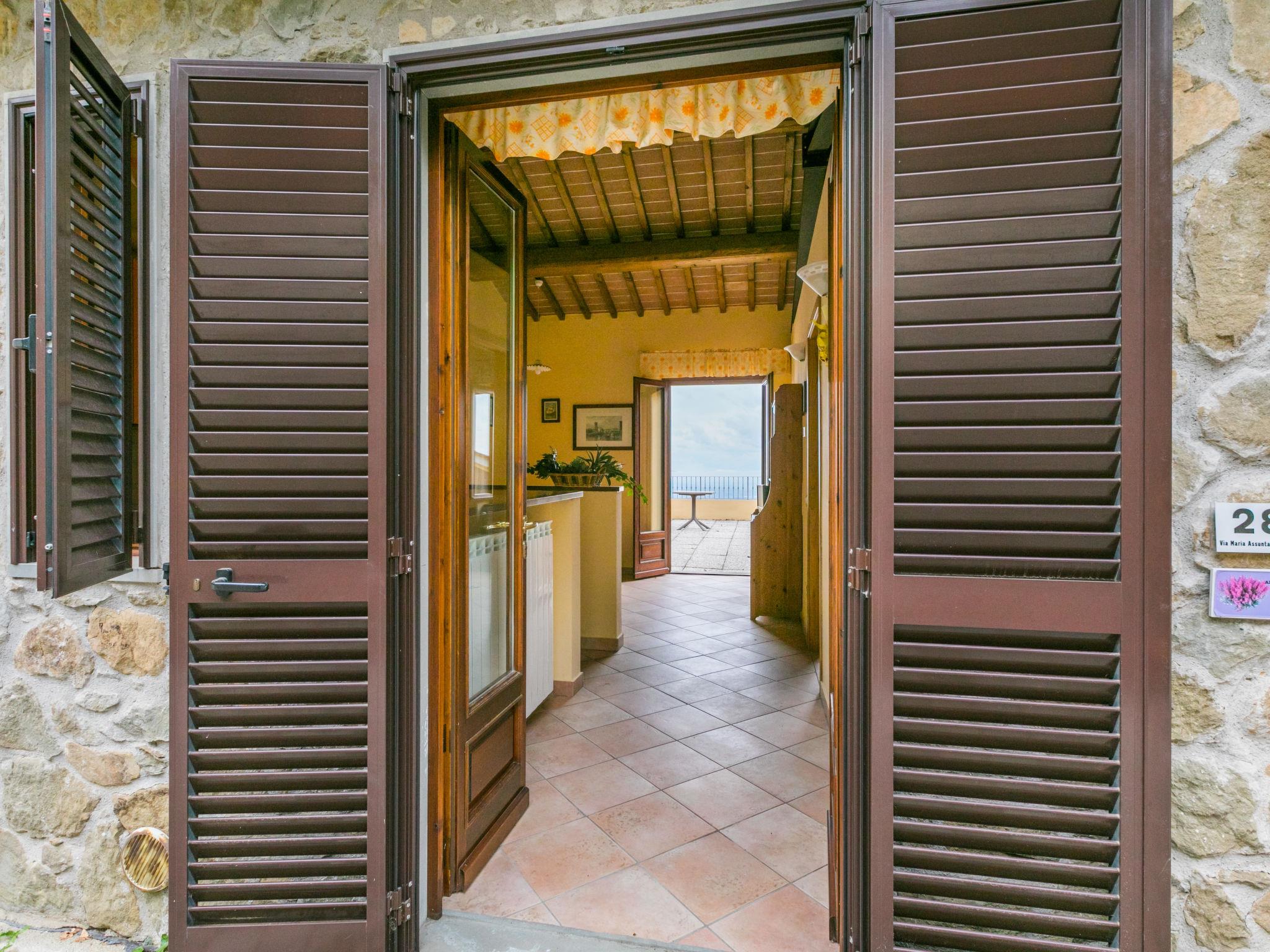 "Fiordaliso", 2-room apartment 40 m2 on 1st floor. Simple and practical furnishings: dining room with satellite TV. Exit to the terrace. 1 double bedroom. Kitchenette (4 hot plates, mini-oven, kettle, freezer). Shower/bidet/WC. Terrace 25 m2. Terrace furniture. Panoramic view of the countryside. Facilities: children's high chair, baby cot for up to 2 year olds. Internet (WiFi, free). Maximum 1 pet/ dog allowed. IT047005B5YVEYX5TC