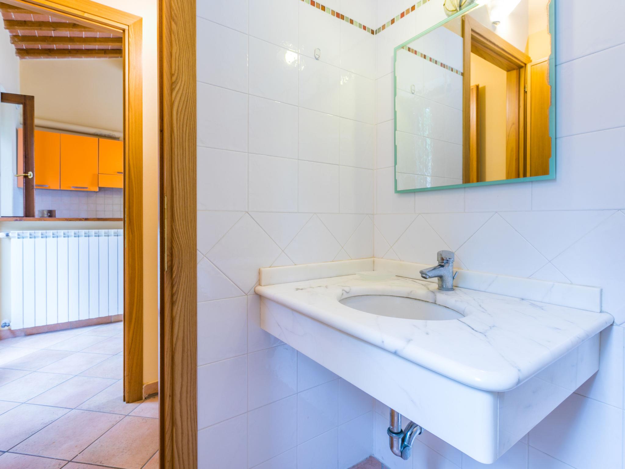 Residence "Casette di Michele", 348 m a.s.l.. 8 apartments in the residence. In the centre of San Baronto 9.5 km from the centre of Vinci, 52 km from the centre of Firenze, 60 km from the centre of Pisa, in a sunny, elevated position on top of a hill, residential area (villas), in the countryside. For shared use: property 1'300 m2 (fenced), terraced garden with trees, swimming pool (12 x 5 m, depth 140 - 160 cm, seasonal availability: 06.May. - 23.Sep.). WC in the pool area, outdoor shower. In the house: central heating system, washing machine (for shared use), heating to be paid on the spot, heating available only from 01.Nov. - 07.Apr.. Parking on the premises. Shop, grocery 500 m, bus stop 400 m, railway station "Pistoia" 17 km, sandy beach "Marina di Pisa" 80 km, thermal baths "Montecatini Terme" 20 km. Nearby attractions: Pistoia 15 km, Carmignano 22 km, San Miniato 23 km, Lucca 45 km, San Casciano in Val di Pesa 47 km, San Gimignano 58 km. Due to the position of the structure, the wi-fi service signal is not fully guaranteed within the individual apartments.