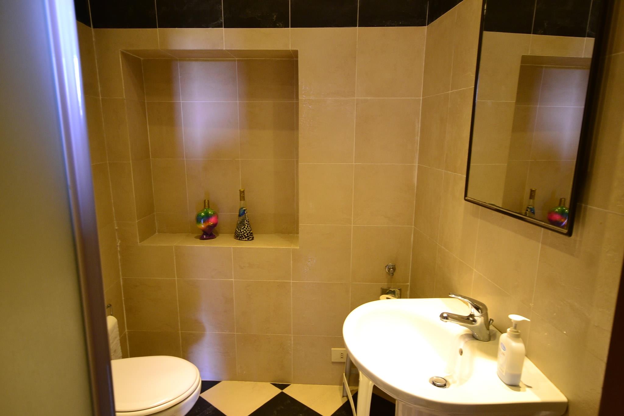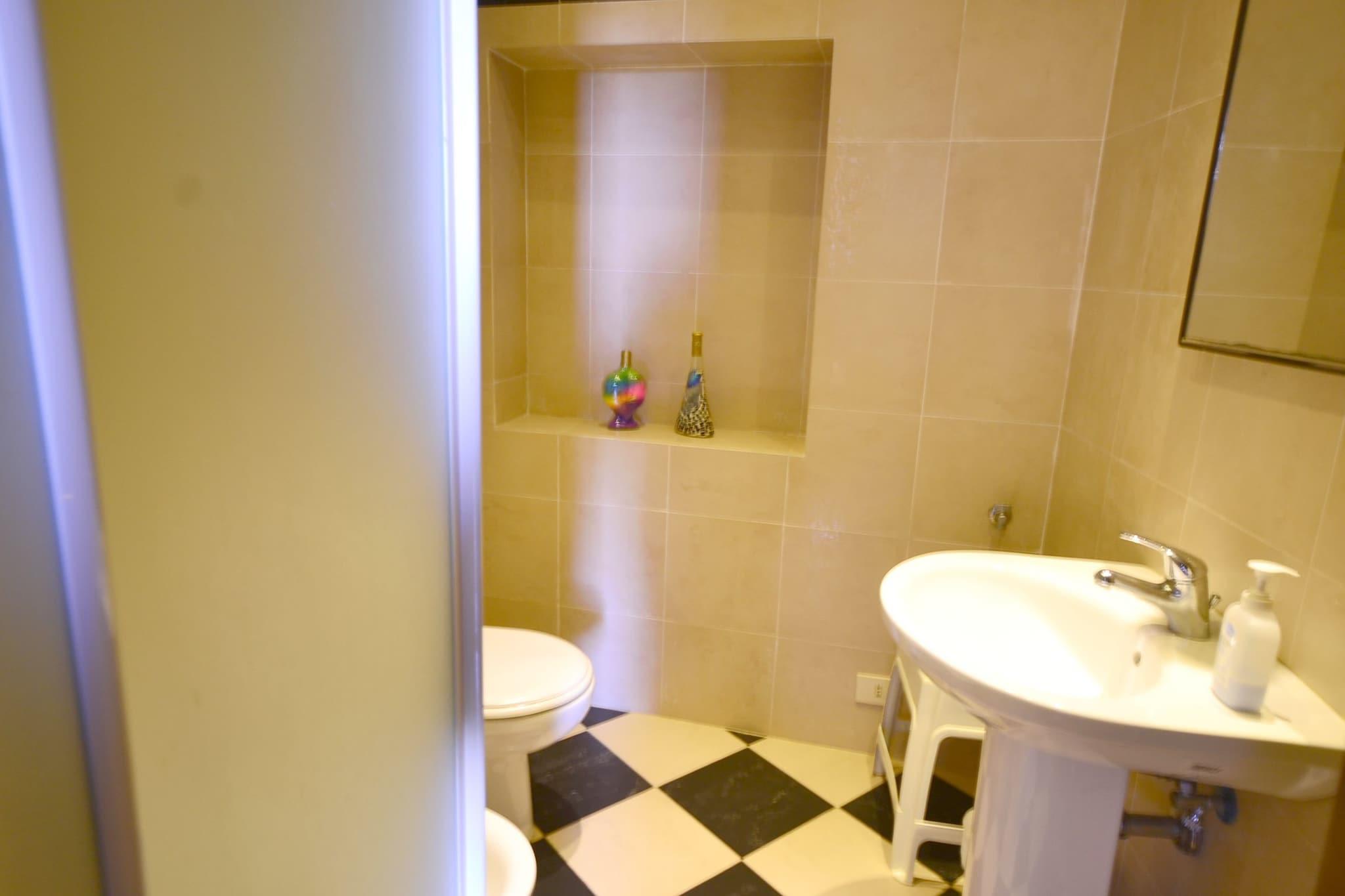 Källare: (öppet kök(spis), Vardags- och sovrum(dubbelsäng, spjälsäng), badrum(dusch, handfat, toalett , bidé)) trädgård(delas med andra gäster ), trädgårdsmöbler, grill, swimmingpool(delas med andra gäster , 12 x 6 m., opened from May upto and including Sep)