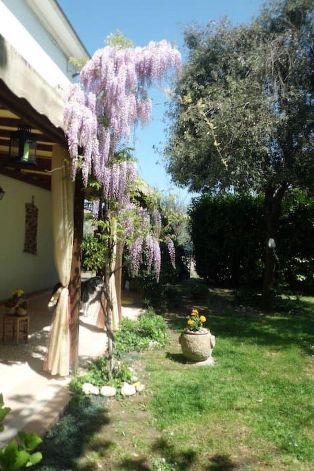Guests will have the entire flat at their disposal. They can enjoy relaxing under the veranda and stroll through the wooded park in front of the entrance, in the centre of which is an artificial pond with fish and a small waterfall.