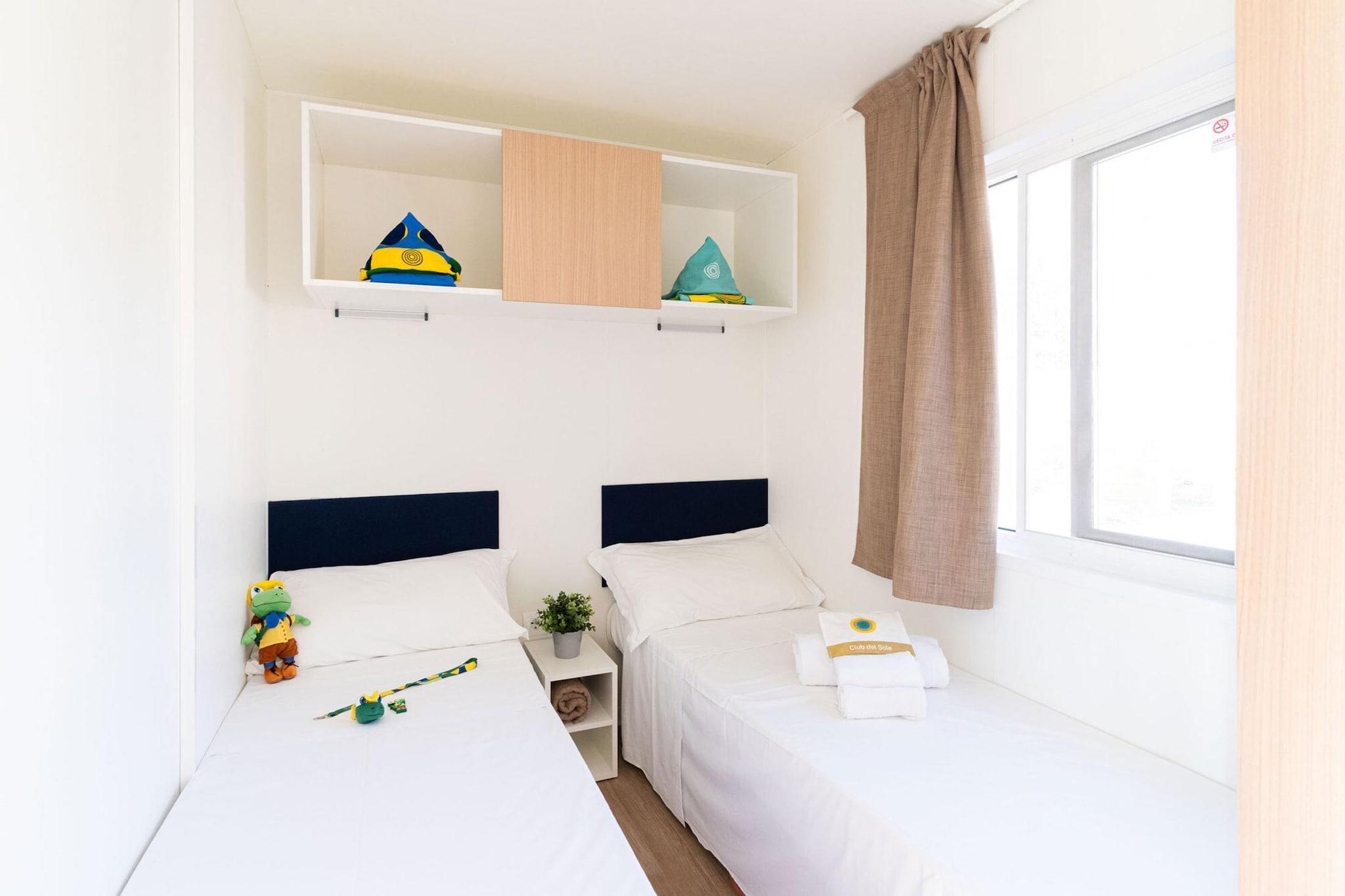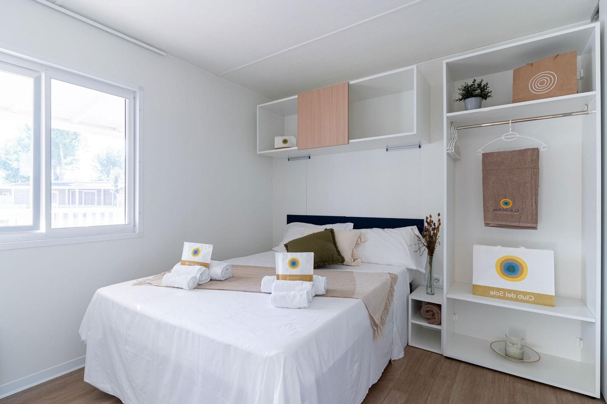Bottenvåningen: (Vardagsrum(Bäddsoffa 1 pers., TV), Öppet kök(Kokplattor(gas), mikrovågsugn, diskmaskin, kyl och frys), sovrum(dubbelsäng), sovrum(enkelsäng, enkelsäng, 1-pers. hög sleeper), badrum(dusch, toalett , bidé, hårfön), badrum(dusch, toalett , bidé, hårfön), veranda(Trädgårdsmöbler), luftkonditionering) Reception, Tvättstuga, Parkering, Animation team, Mataffär, Cykeluthyrning, Idrottsplats, Bordtennis, Restaurang, Bar, Barnklubb, Lekplats, Bubble bath, solstole, Parasoll, swimmingpool(delas med andra gäster , utanför, varav en del för barn (50cm djup), opened from 1/2 May upto and including 1/2 Sep), tennisbana
