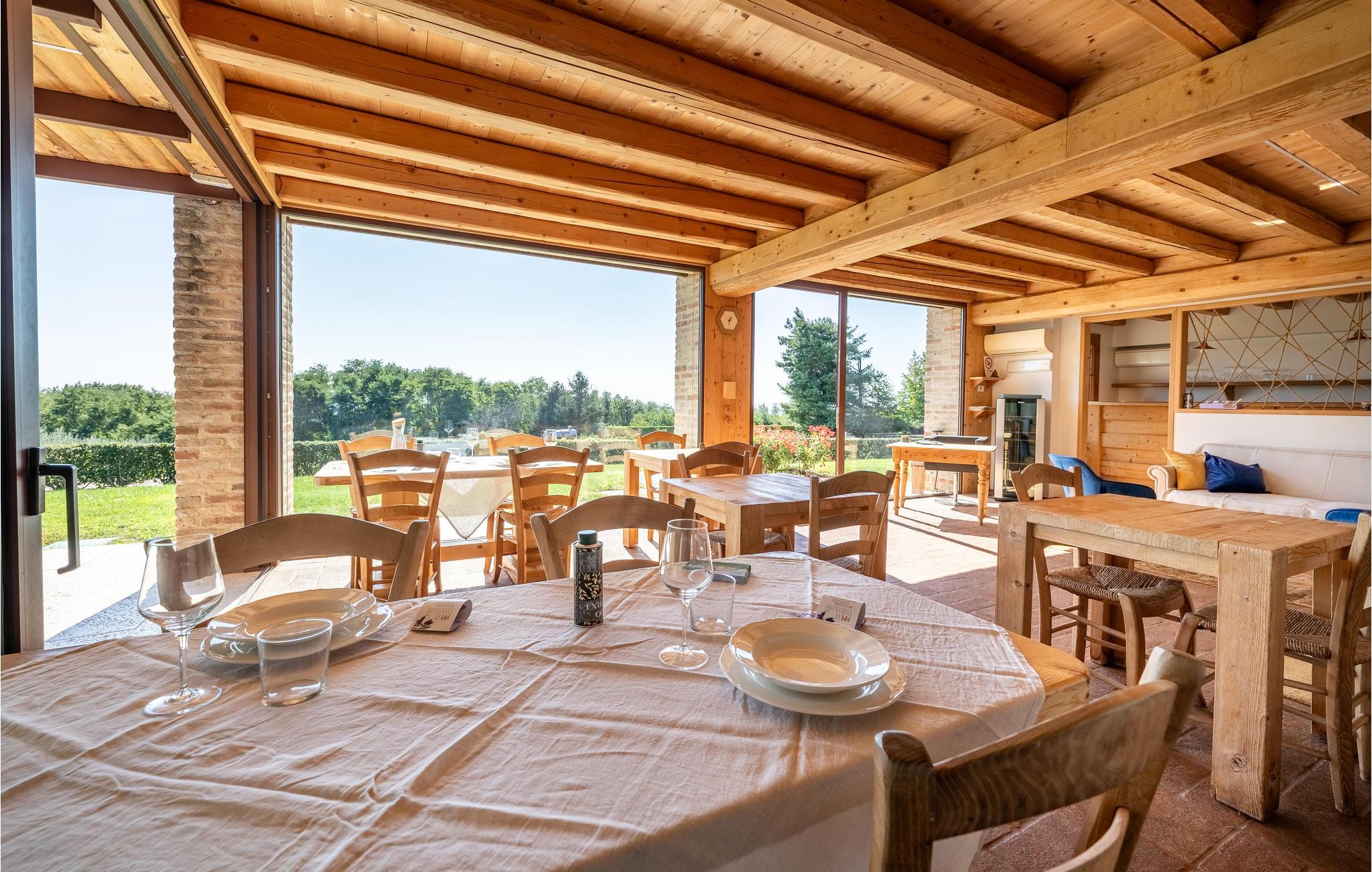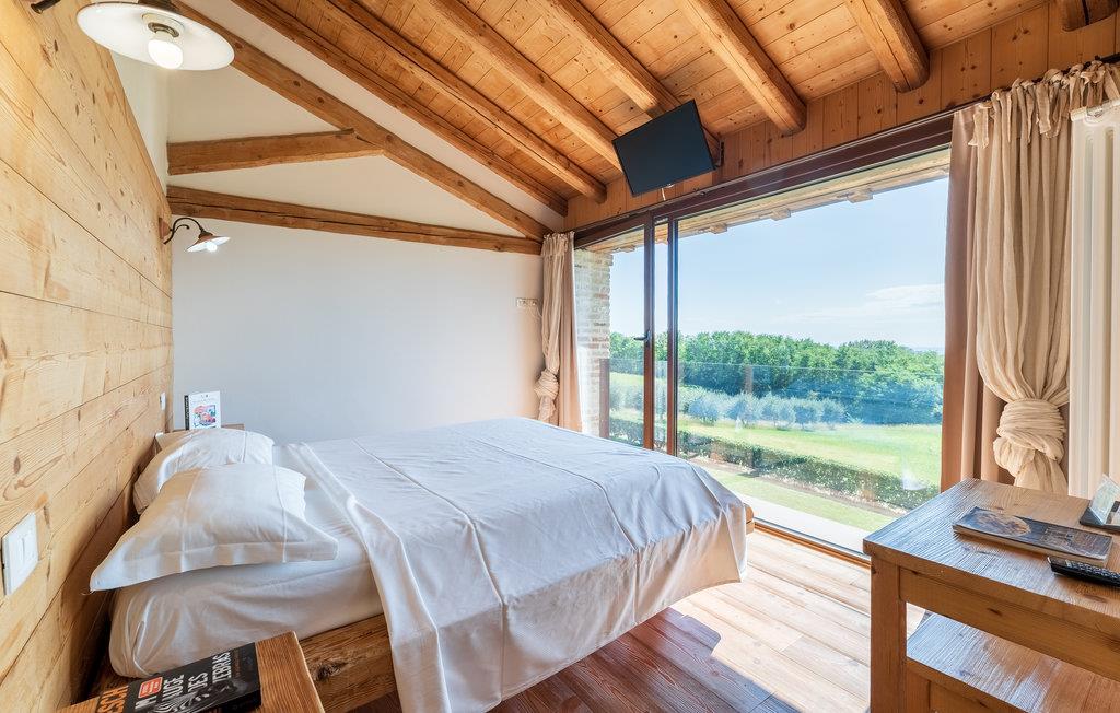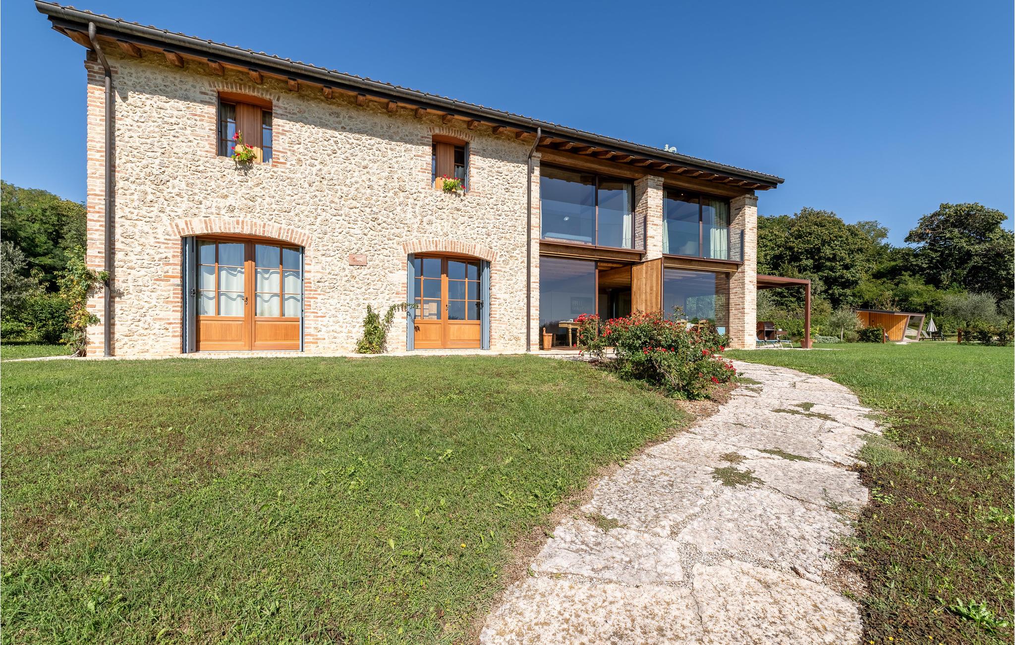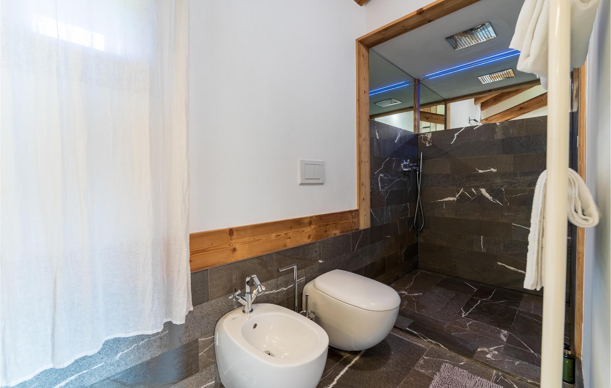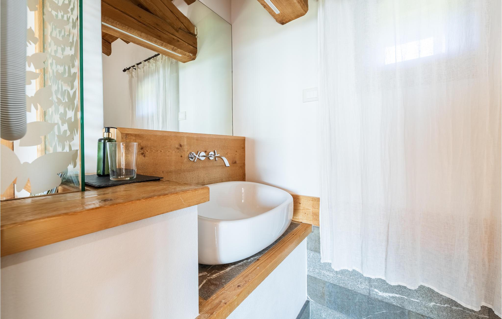 Tillbringa en oförglömlig semester i detta exklusiva semesterhus i de pittoreska kullarna i Montello, inte långt från Montebelluna. Omgiven av olivlundar, vingårdar och gröna skogar kan du njuta av absolut avskildhet och en hisnande utsikt. Villan är fördelad på två våningar och erbjuder modern komfort i kombination med naturliga material som trä och sten. Det ljusa vardagsrummet på bottenvåningen med stora panoramafönster inbjuder till att dröja sig kvar.
