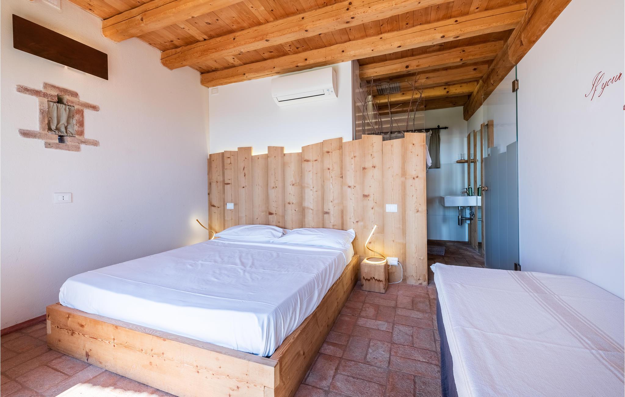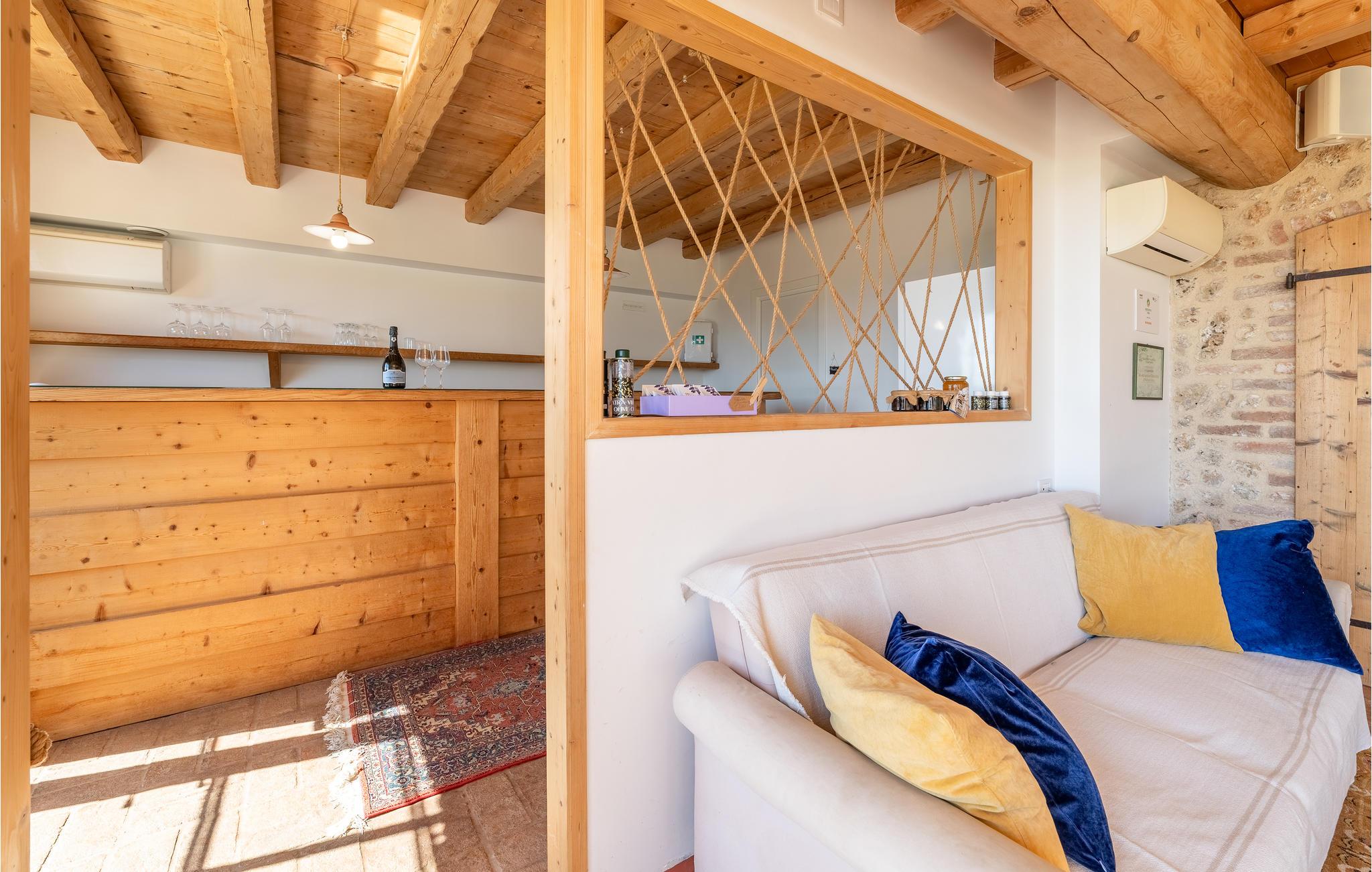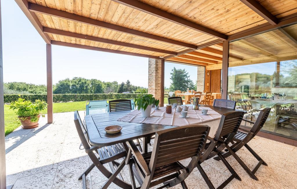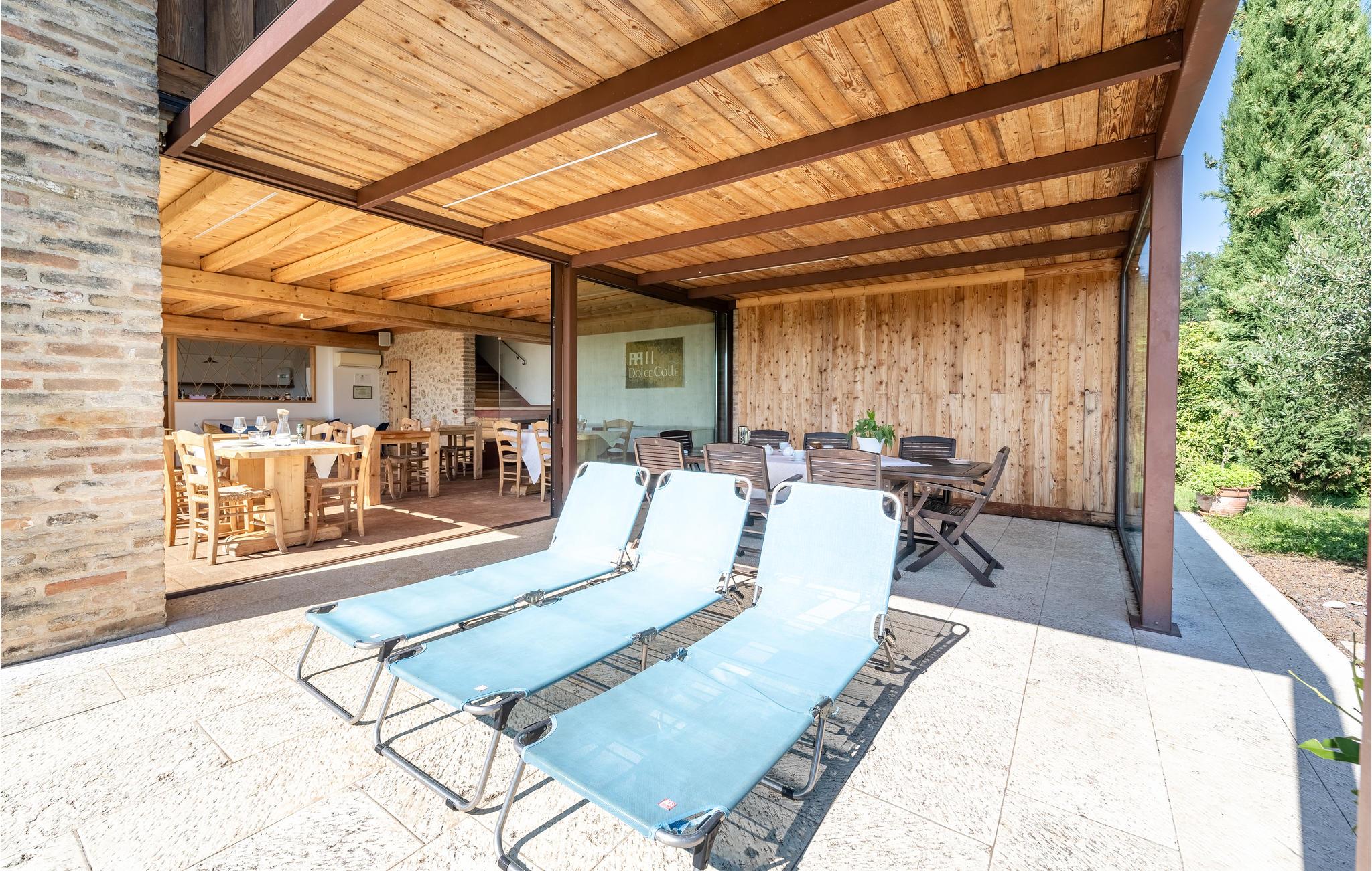Tillbringa en oförglömlig semester i detta exklusiva semesterhus i de pittoreska kullarna i Montello, inte långt från Montebelluna. Omgiven av olivlundar, vingårdar och gröna skogar kan du njuta av absolut avskildhet och en hisnande utsikt. Villan är fördelad på två våningar och erbjuder modern komfort i kombination med naturliga material som trä och sten. Det ljusa vardagsrummet på bottenvåningen med stora panoramafönster inbjuder till att dröja sig kvar.