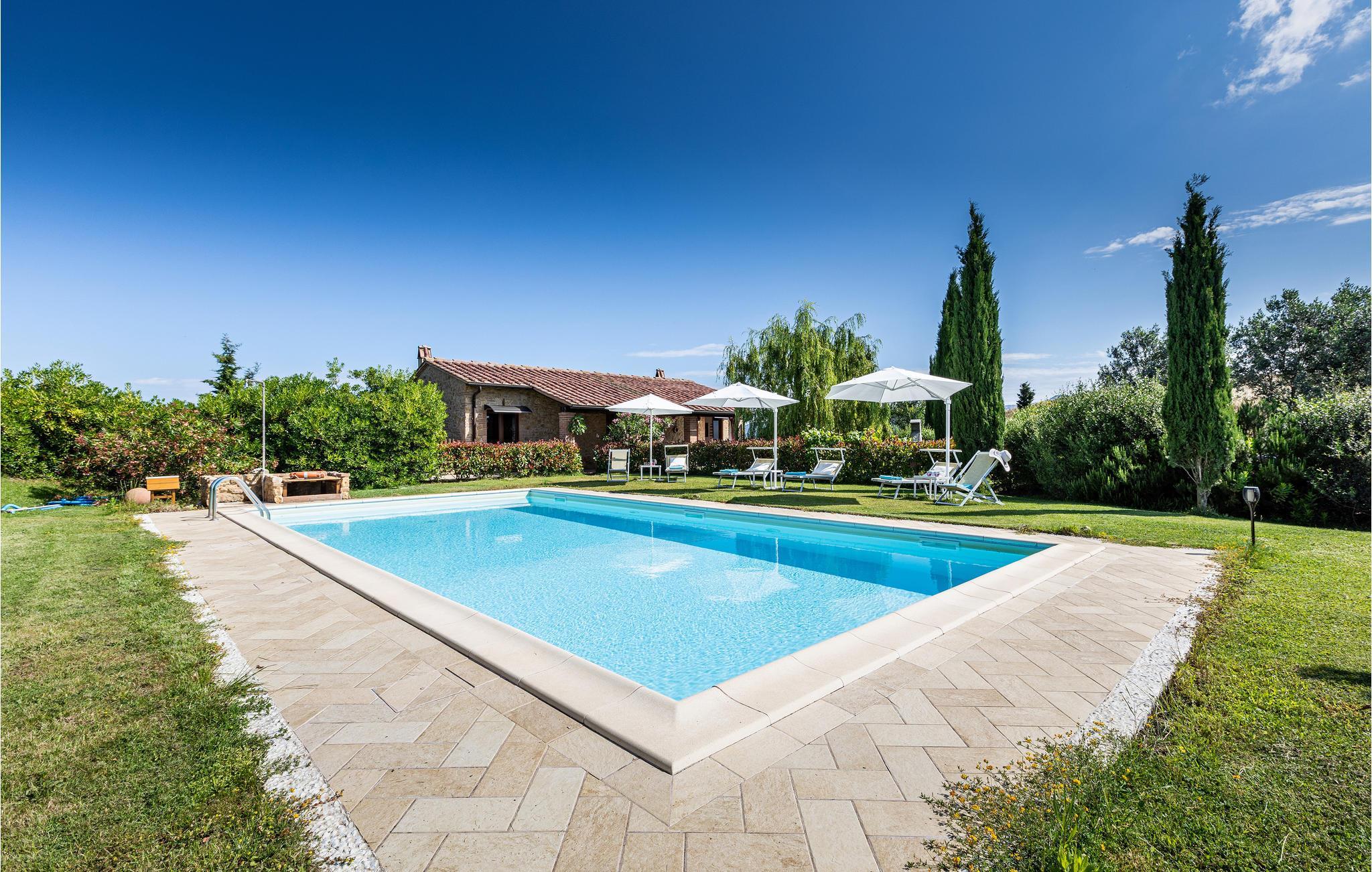 Njut av en oförglömlig semester med utsikt över den vackra toskanska landsbygden i detta bekväma semesterhus med pool.