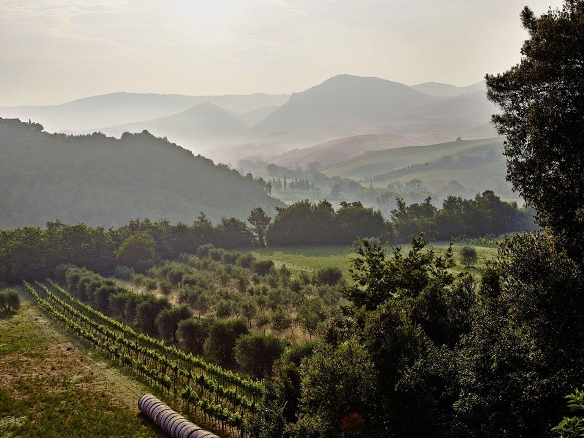 Podere Cortilla is a farm with 23 hectares of land, including fields and woods, a vineyard and several olive groves. We make our own natural wine, mainly from San Giovese grapes, and produce a high quality olive oil, which our guests can taste and buy. At the appropriate times of year, we also have fruit and vegetables from our vegetable garden and from the fruit trees in the garden.