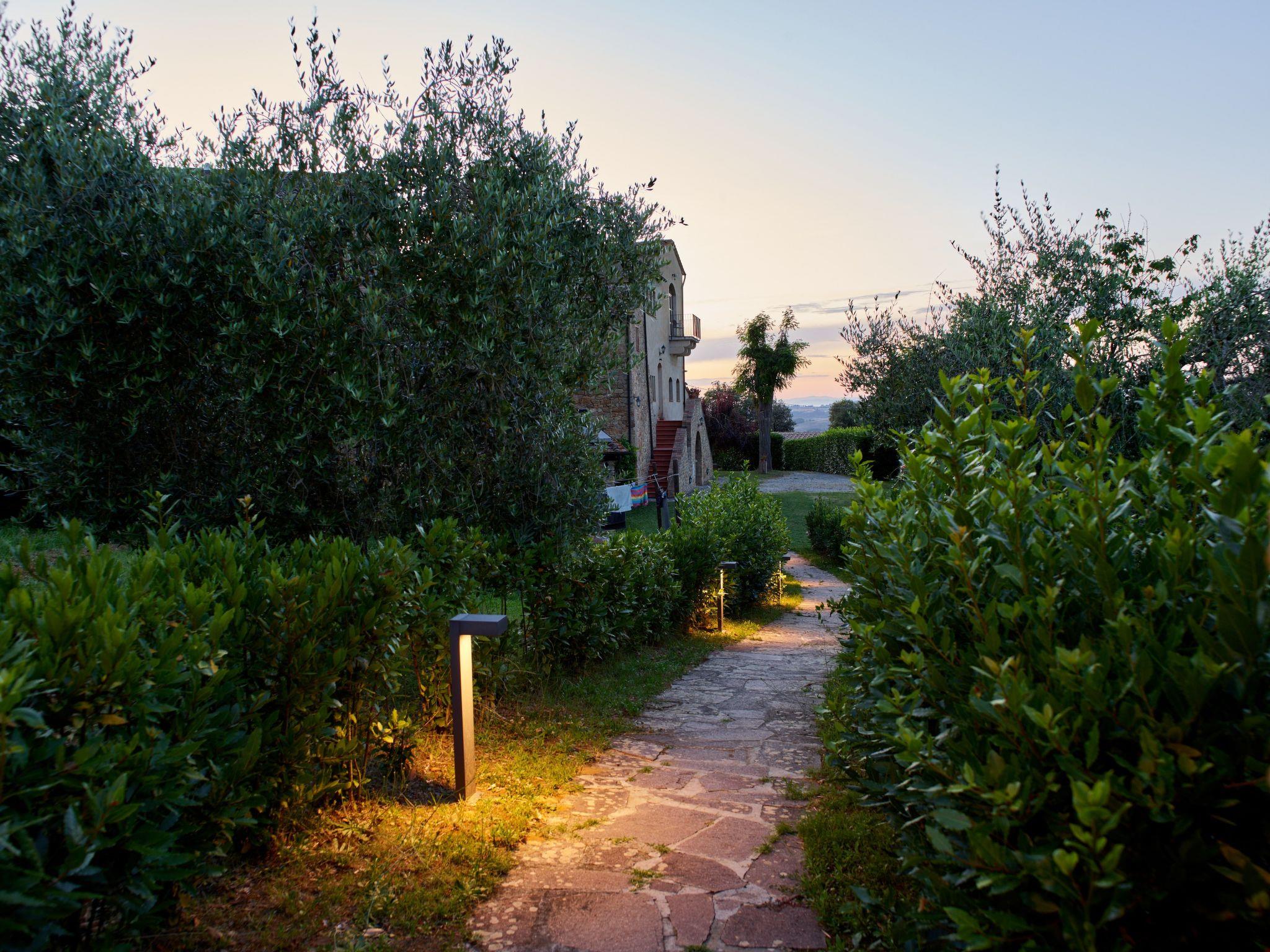 Podere Cortilla is situated on a hillside in the particularly beautiful landscape of the Era Valley, close to the historic Etruscan town of Volterra. Here, 6 km away, you will find all shopping facilities, supermarkets, specialised shops, museums and churches, educational, sports and leisure facilities. The beautiful surroundings invite you to go hiking and cycling. Volterra lies at the centre of the "cultural triangle" of Pisa-Florence-Siena. The whole of Tuscany is within easy reach: Florence 79 km, Pisa 63 km, Siena 51 km, Lucca 70 km, San Gimigniano 30 km, Pisa airport 61 km, Pontedera railway station 43 km, golf course 30 km, the Mediterranean is only 40 km away.