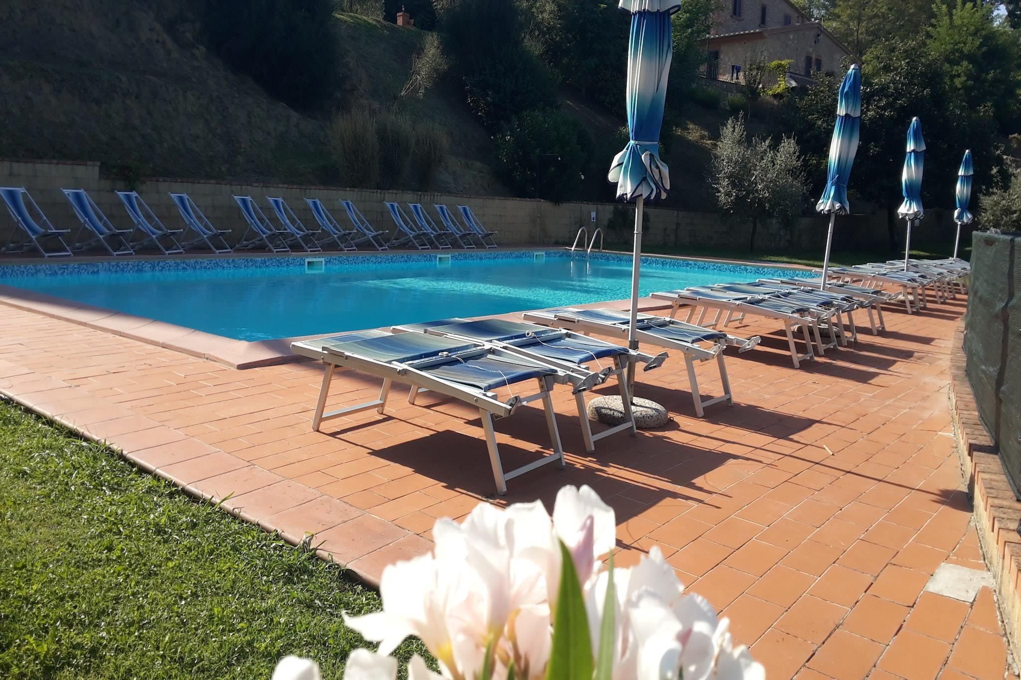 Charmig toskansk flykt med autentisk stil Inbäddat i Volterras böljande kullar, kombinerar denna lantliga tillflyktsort med 1 sovrum rustik charm med modern komfort – perfekt för små familjer eller sammansvetsade grupper på upp till 5. Hemmet är omgivet av grönska och erbjuder en lugn bas för dina toskanska äventyr. Kliv in i ett mysigt vardagsrum med matplats och traditionell inredning, medan det välutrustade köket är redo för hemlagade måltider. Under varma dagar kan du ta ett uppfriskande dopp i den gemensamma poolen eller koppla av utomhus med ett glas vin när solen går ner över vingårdarna. En lugn miljö nära Volterras historiska underverk Denna fridfulla fastighet placerar dig bara 6 km från den historiska staden Volterra, där kullerstensgator, gammal arkitektur och utsikt över en kulle väntar. Utforska den storslagna Volterra-katedralen, förundras över det medeltida Palazzo dei Priori, eller upptäck det kusliga men ändå fascinerande tortyrmuseet. Oavsett om du är en konstälskare, historiefantast eller naturentusiast erbjuder denna region en rik blandning av kultur och lugn på landsbygden. Stormarknader och restauranger finns också inom räckhåll för din bekvämlighet. Härlig Mat & Living på landet Prova regionala delikatesser på närliggande trattorior bara 5,7 km bort – från handgjord pasta till rika toskanska grytor. Efter en dag av utforskande kan du återvända till bekvämligheten av ditt hem-borta-hemifrån och njuta av en lugn kväll under stjärnorna. Observera: husdjur är inte tillåtna på denna fastighet, vilket garanterar en ren, allergenfri miljö för alla gäster.