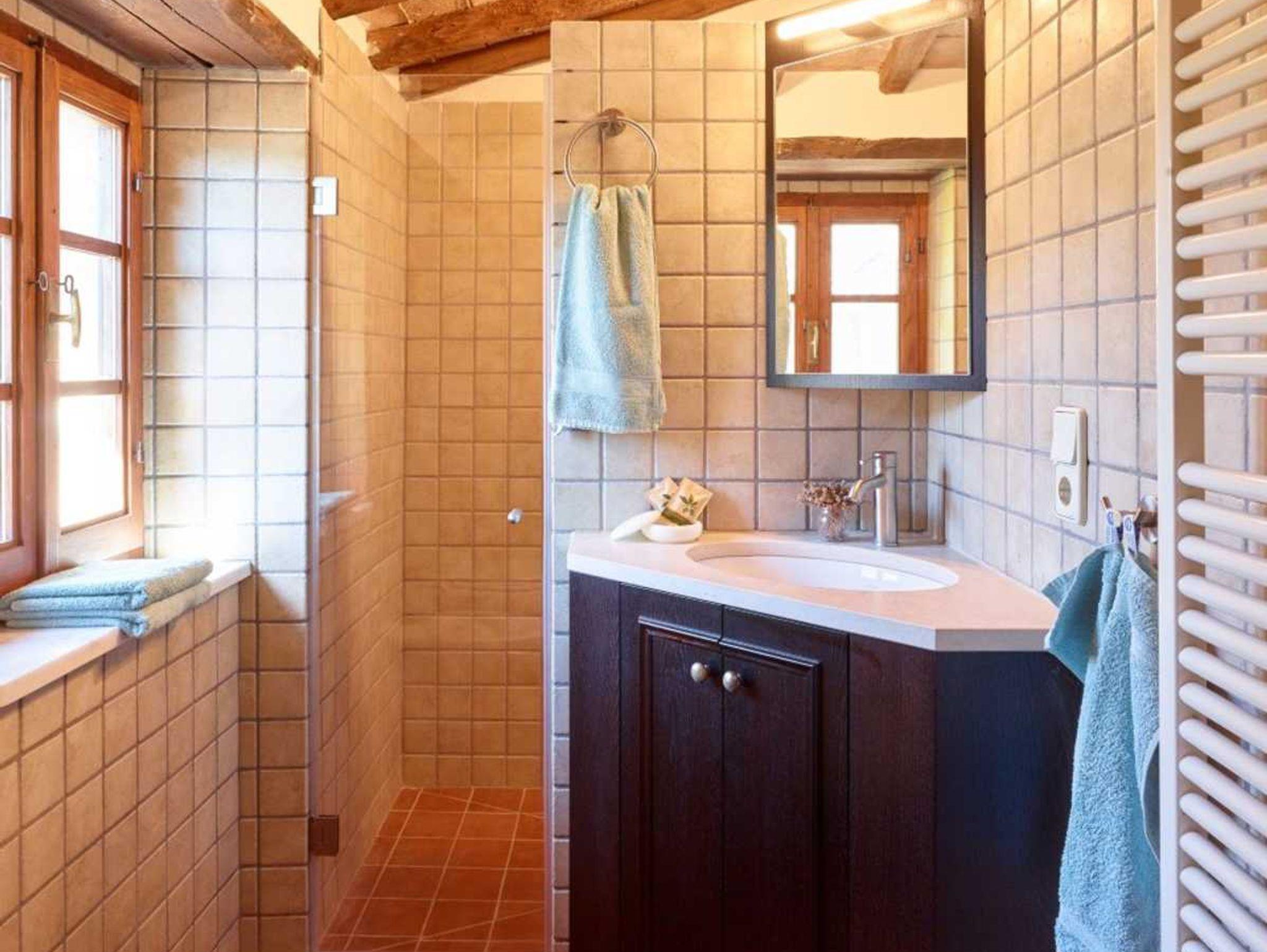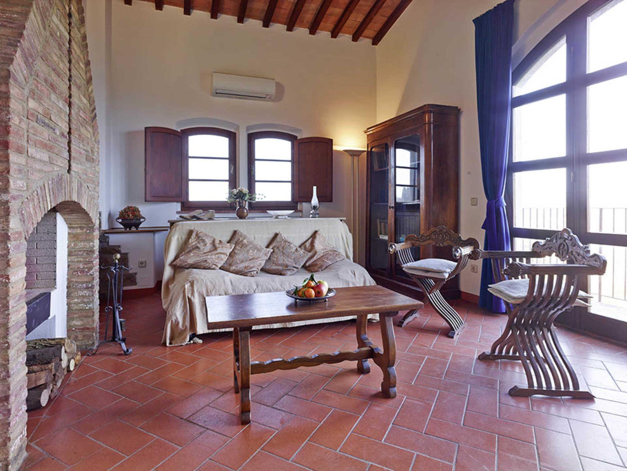 La Stalla ist eine große Ferienwohnung (145 qm) für bis zu 8 Personen. Architektonische Besonderheit sind einige außergewöhnlich schöne, gut erhaltene Kreuzbogendecken. Die Wohnung bildet ein eigenes Haus mit zwei Etagen. Sie hat 2 Wohnzimmer, 3 Schlafzimmer mit Betten, eine geräumige Küche mit Esszimmer, 2 Duschbäder und ein Gäste-WC. Jeder Wohnraum hat einen offenen Kamin. Oben ist ein Panoramafenster mit weit reichendem Ausblick auf die schöne Landschaft des Era-Tals und Ausgang auf die kleine Terrasse. Als große Terrasse dient der rustikal gepflasterte Innenhof. Möblierung und Geräteausstattung sind hochwertig und großzügig. Es gibt u.a. Satelliten-TV mit internationalen Programmen, Stereonlage, Internet, Heizung und Klimaanlage. Eine Waschmaschine ist zentral vorhanden.
