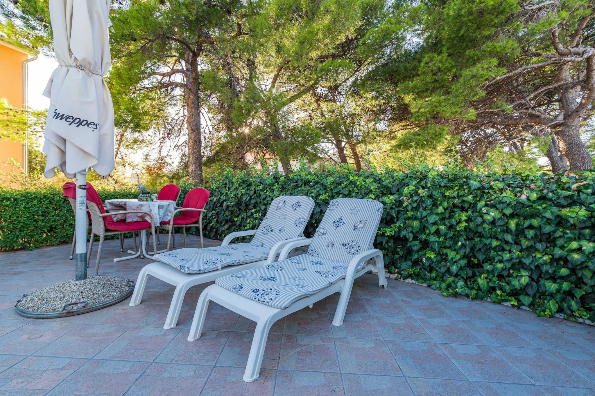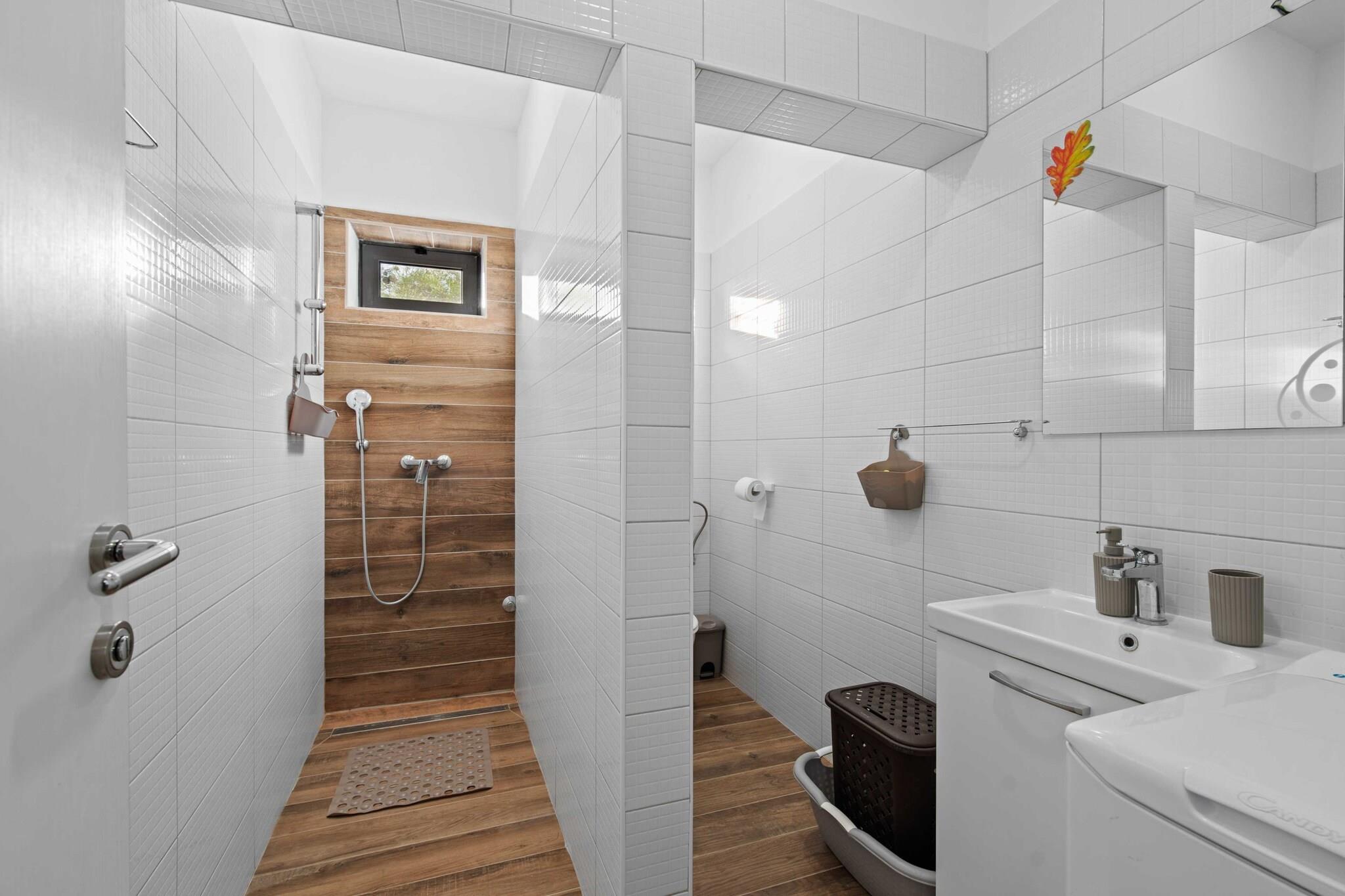 Charmig lägenhet belägen i det fridfulla kustområdet Šibenik-Brodarica, denna semesterbostad med ett sovrum erbjuder en bekväm vistelse för upp till fyra gäster. Med en queen size-säng i sovrummet och en dubbel bäddsoffa i vardagsrummet är den idealisk för familjer eller par som söker en lugn oas. Boendet tar inte emot husdjur eller rökning inomhus och har en privat parkeringsplats. En egen ingång och luftkonditionering ger extra komfort, medan WiFi ingår för sömlös anslutning. Bara 210 meter från sand- och klippstranden Gaj, har lägenheten ett bekvämt läge nära den adriatiska kusten. Viktiga bekvämligheter som en stormarknad (150 m) och populära lokala matställen som Konoba Oceanik (230 m) ligger inom gångavstånd. För kultur- och naturentusiaster ligger den UNESCO-listade Šibeniks gamla stadsdel 8 km bort, och den hisnande nationalparken Krka ligger 17 km bort, och erbjuder möjligheter till natursköna dagsutflykter. Lägenheten har ett fullt utrustat oberoende kök med induktionshäll, kyl, frys, diskmaskin, ugn, mikrovågsugn och kaffebryggare, vilket garanterar enkelhet för självhushåll. En platt-TV med kabelkanaler erbjuder underhållning, och uteplatsen har en terrass, trädgård och gemensam grill. Även om det inte finns någon havsutsikt, öppnar terrassen mot en privat gård, vilket ger ett lugnt utrymme för middagar och avkoppling nära huvudvägen.