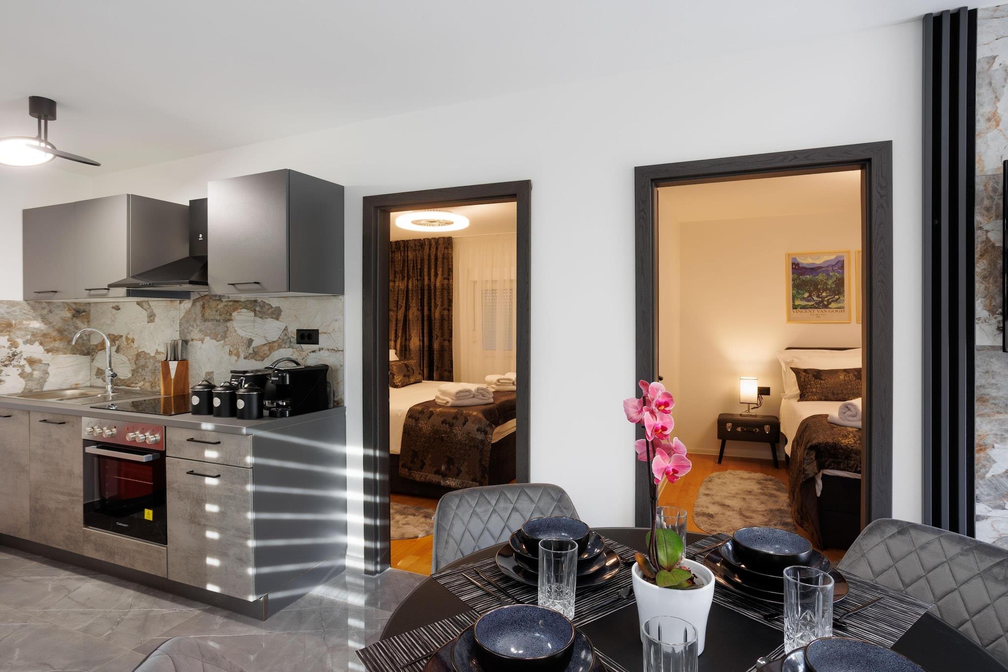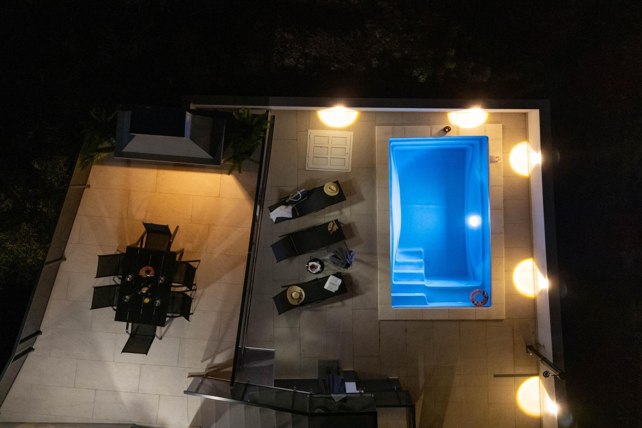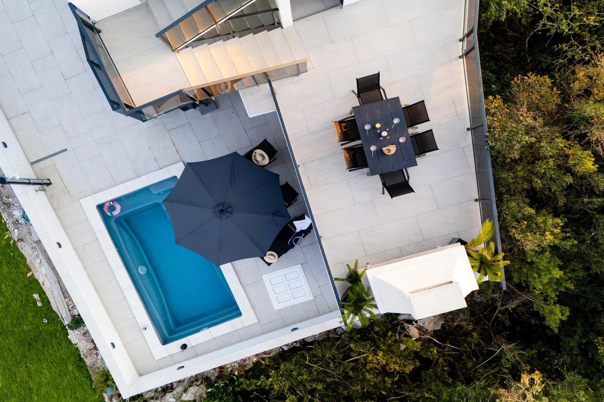 Mitt i hjärtat av en lugn kustvik i Rogoznica ligger Villa Marivi, den typen av plats där barn springer barfota från poolen till havet, föräldrarna äntligen saktar ner och varje dag rullar på utan ett schema. Med stranden bokstavligen mittemot stigen och plats för hela familjen att sprida ut sig, är denna villa byggd för enkla och glädjefyllda semestrar. Detta enorma hem rymmer upp till 9 gäster i fem bekväma sovrum – 4 dubbelsängar och en enkelsäng, vilket ger familjer gott om utrymme och flexibilitet, fyra fullt utrustade badrum, ett fullt utrustat kök med matplats – gör familjens måltider enkla, oavsett om det är snabba frukostar innan stranden eller långa, avslappnade middagar tillsammans. Utomhus blir den privata poolen familjens dagtidscentrum, med solstolar för föräldrarna och oändlig plasktid för barnen. Strax bortom ligger stenstranden bara några steg bort – perfekt för morgonsim, lätta paddlingar eller snäckjakt i solnedgången. Terrass med elektriska markiser skapar skuggiga hörn för eftermiddagssnacks, sagostund eller lugna kaffestunder medan barnen leker i närheten. Genomtänkta familjevänliga detaljer som TV, snabbt Wi-Fi, tvättmöjligheter, barnstol, spjälsäng och full luftkonditionering garanterar komfort utan kompromisser. Med dagsutflykter till Šibenik eller Split inom räckhåll erbjuder Villa Marivi den perfekta blandningen av äventyr, säkerhet och lugnt familjeliv vid havet. Här känns semestrar avslappnade, barnen somnar glada och glada, och föräldrarna får äntligen varva ner på riktigt.