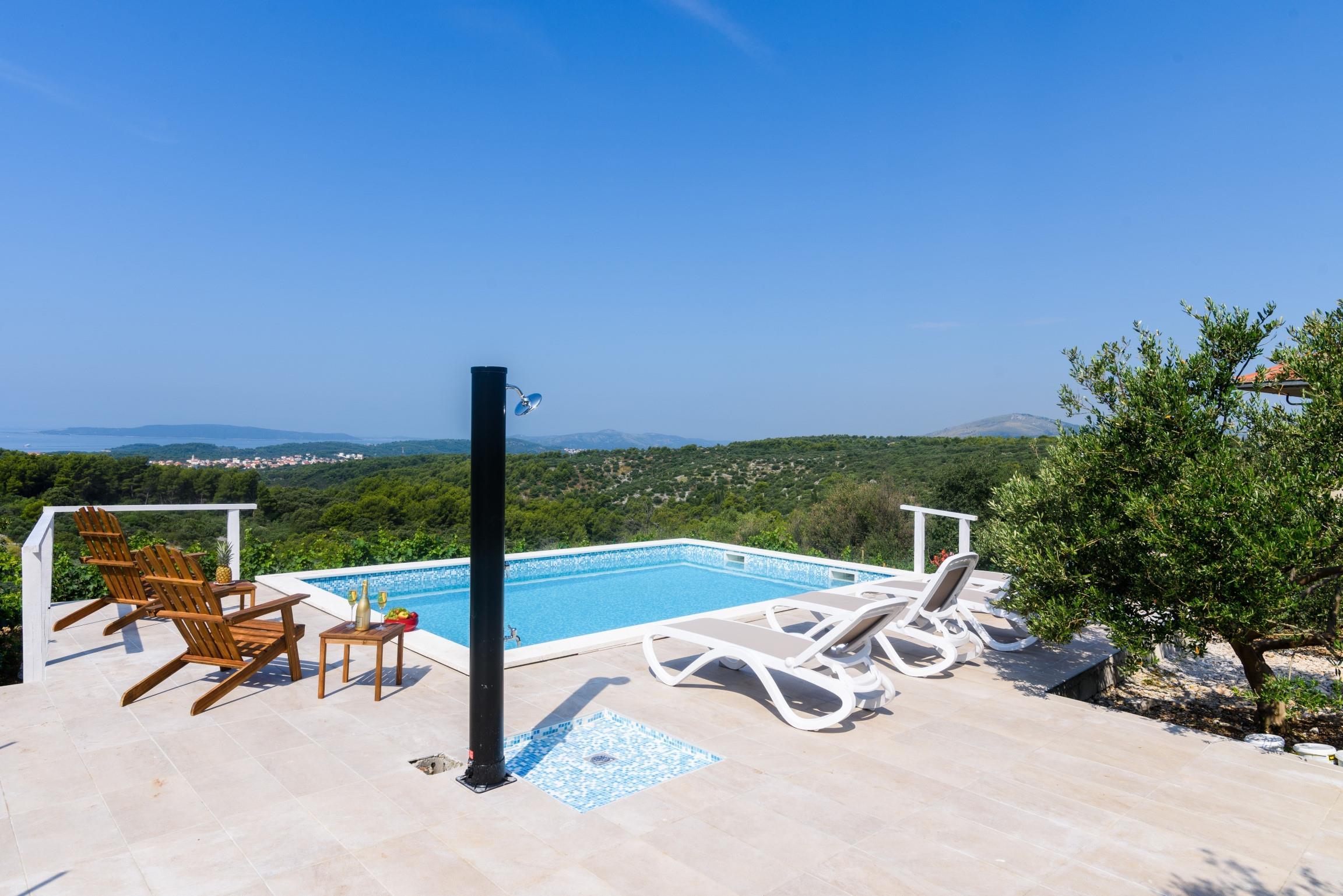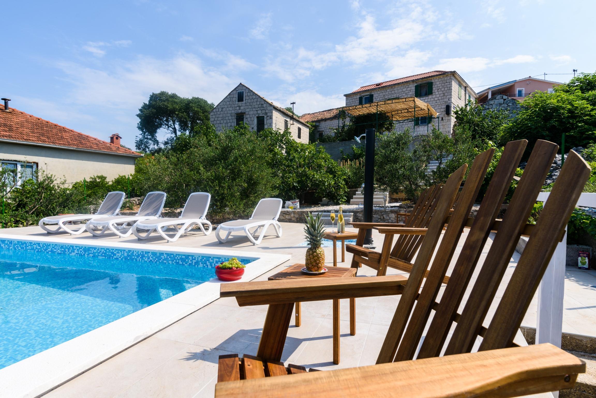 House can accommodate 6 guests. Beds are situated in 3 sleeping rooms, within 120m2. Guests can use a private terrace to enjoy the warm summer evenings. The house offers the sea view. For full enjoyment and relaxation there is a private barbecue for this accommodation guests only. During stay, there is a private pool for relaxation and pleasure.