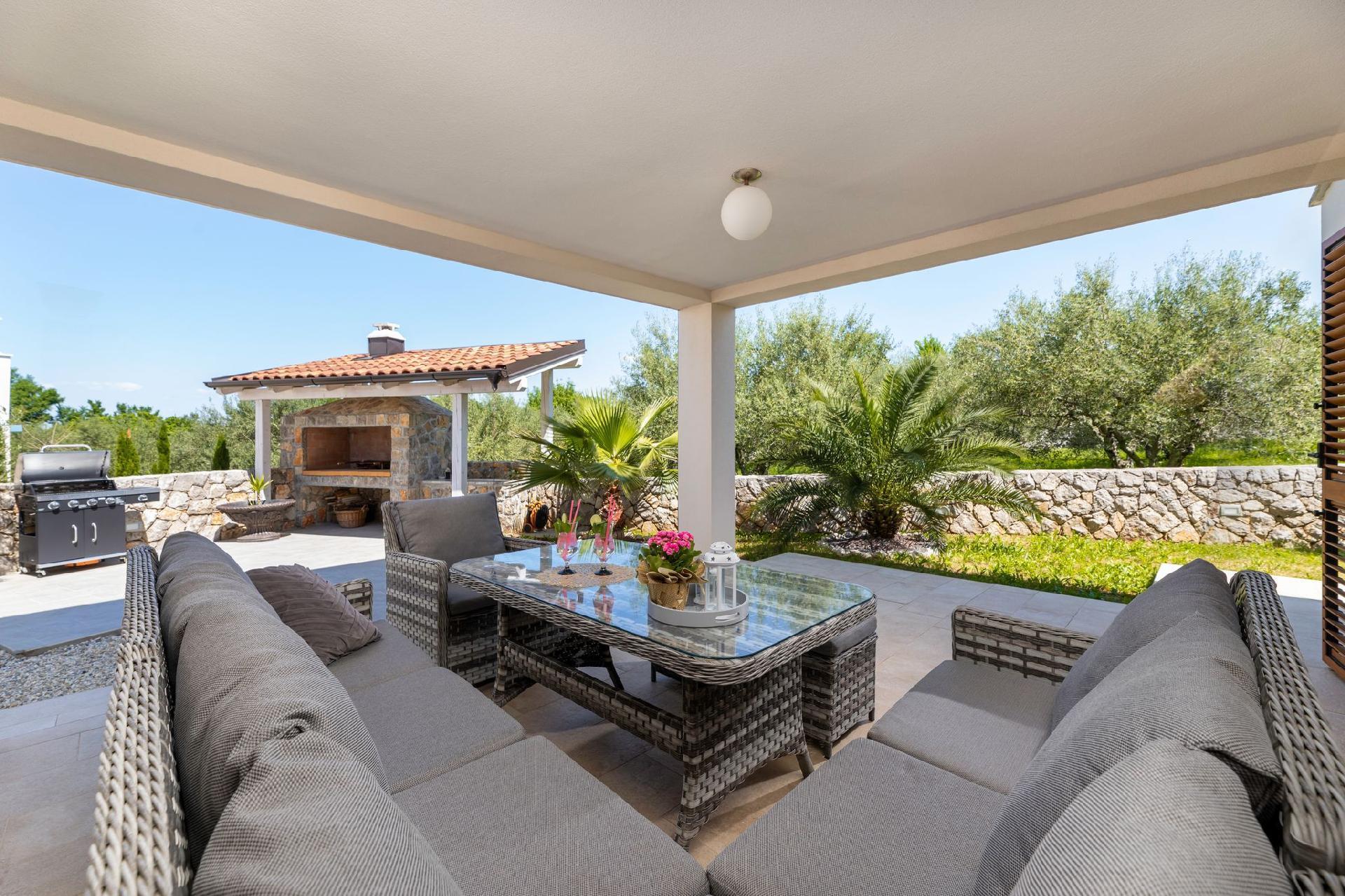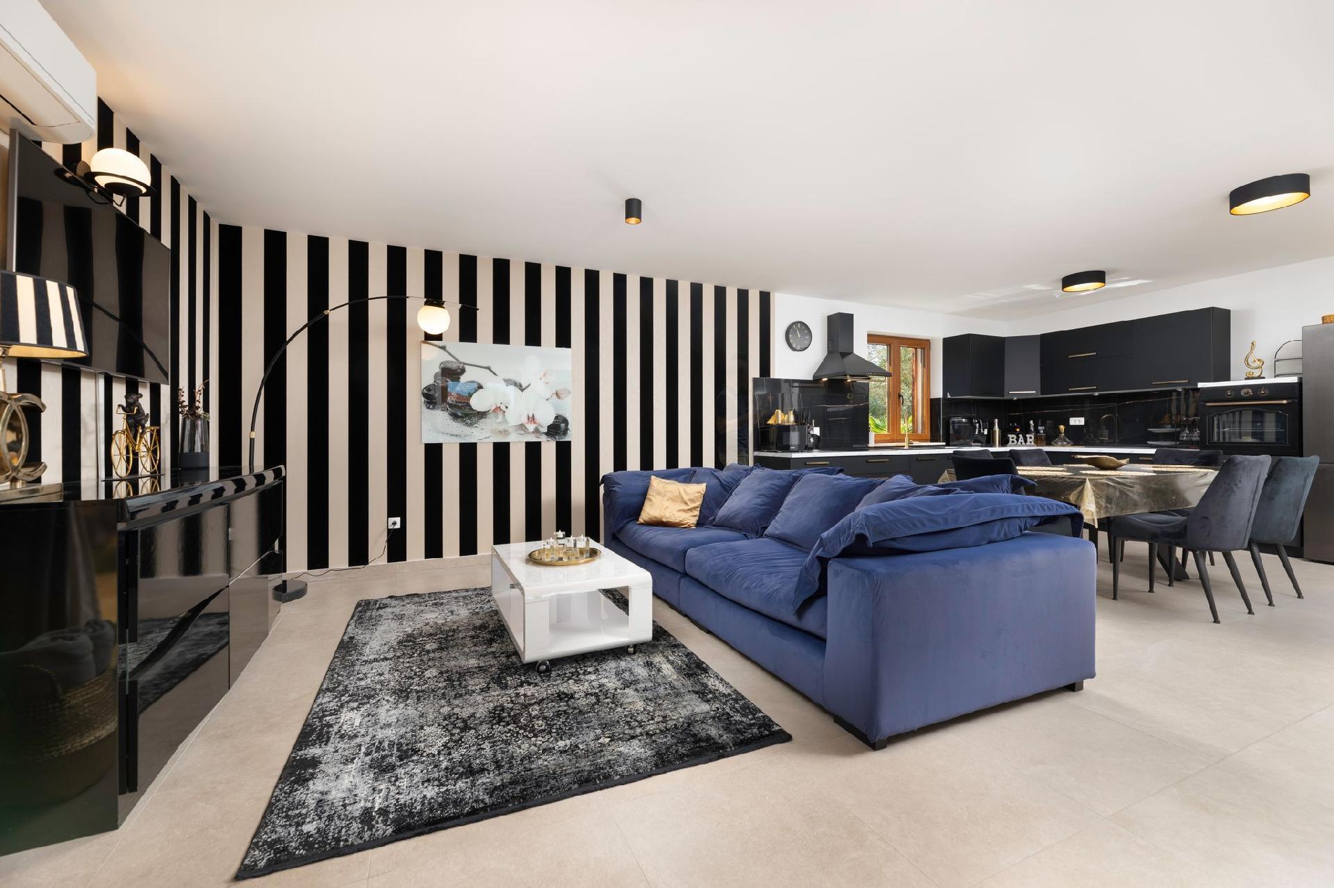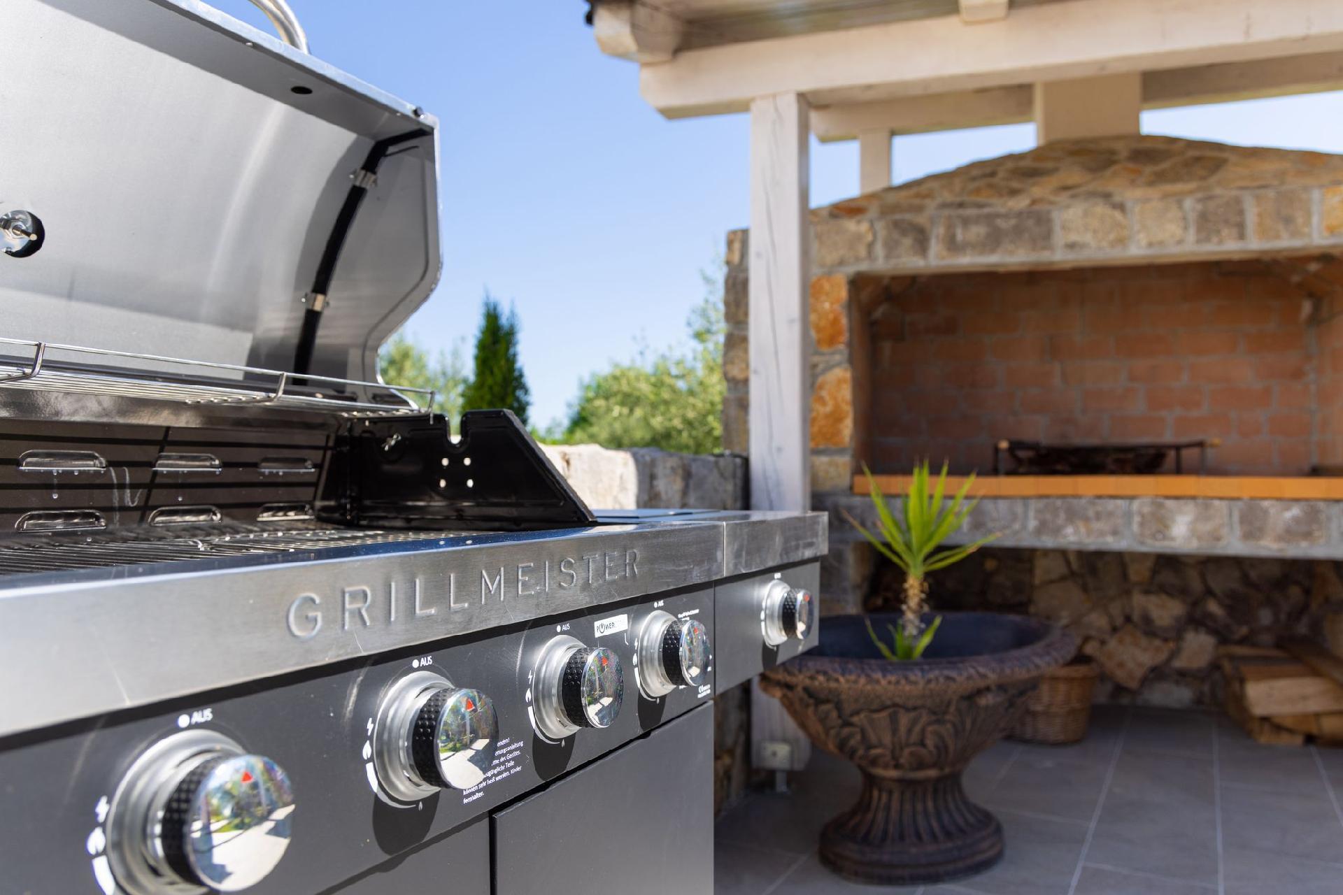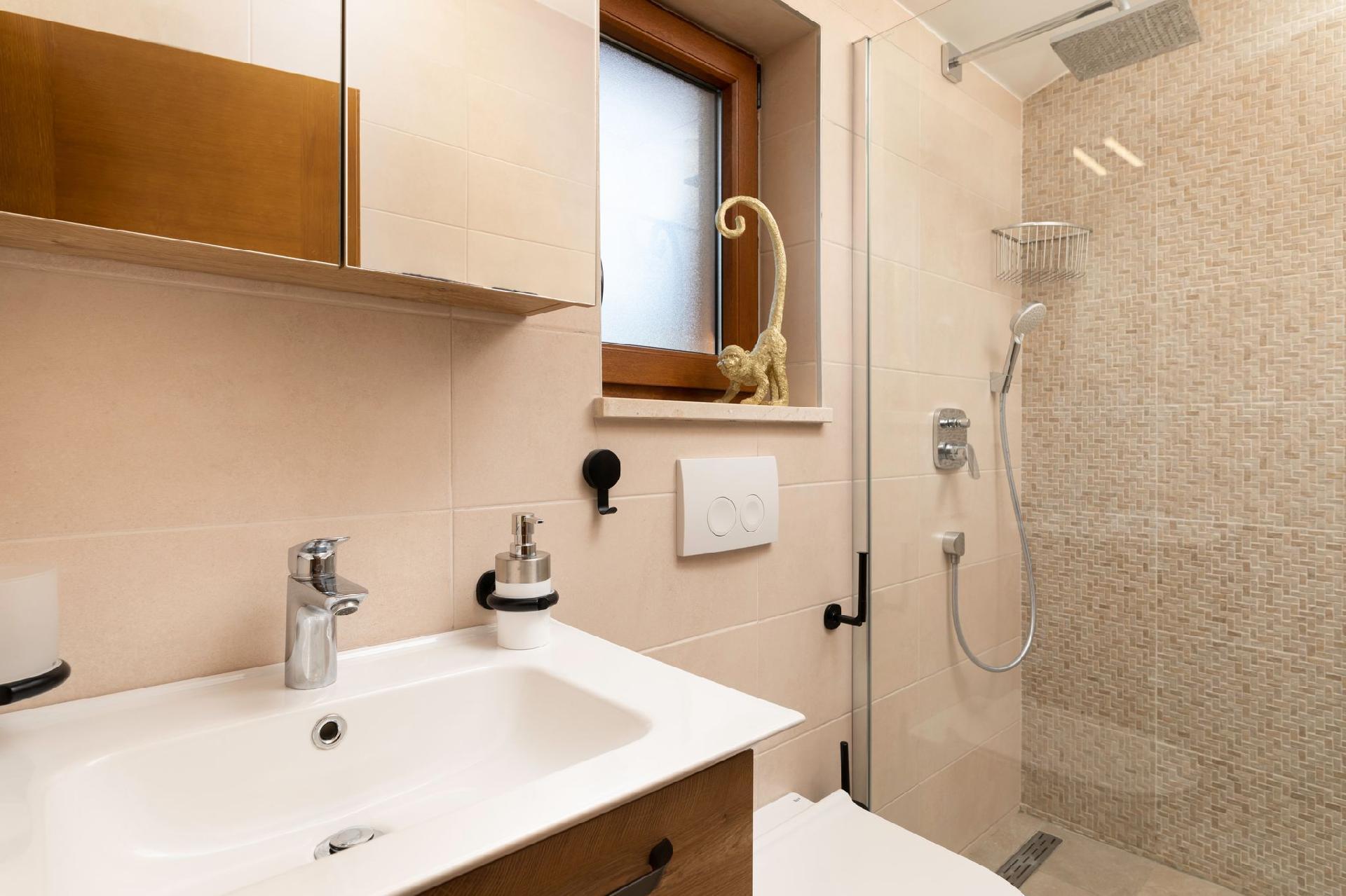 Vila Andante is the perfect getaway for families/groups of friends who look for a peaceful and quiet place for vacation. It is suitable for up to 6 guests and is spread over two floors-ground floor and first floor. On the ground floor there is the spacious living room area and an excellently equipped kitchen with a dining area. On the ground floor there is also a shower bathroom with toilet. From the living room area guests can exit to the covered terrace where they can sit, eat and relax. On the upper floor there are three double bedrooms, one of which with an en-suite shower bathroom with toilet, and one more separate bathroom. Two of the bedrooms share a spacious balcony with a lounge sofa and the third bedroom has its own smaller balcony. Guests can also enjoy the pool, sunbeds, outdoor shower, and two grills (wood and gas). Covered parking for two vehicles is provided.