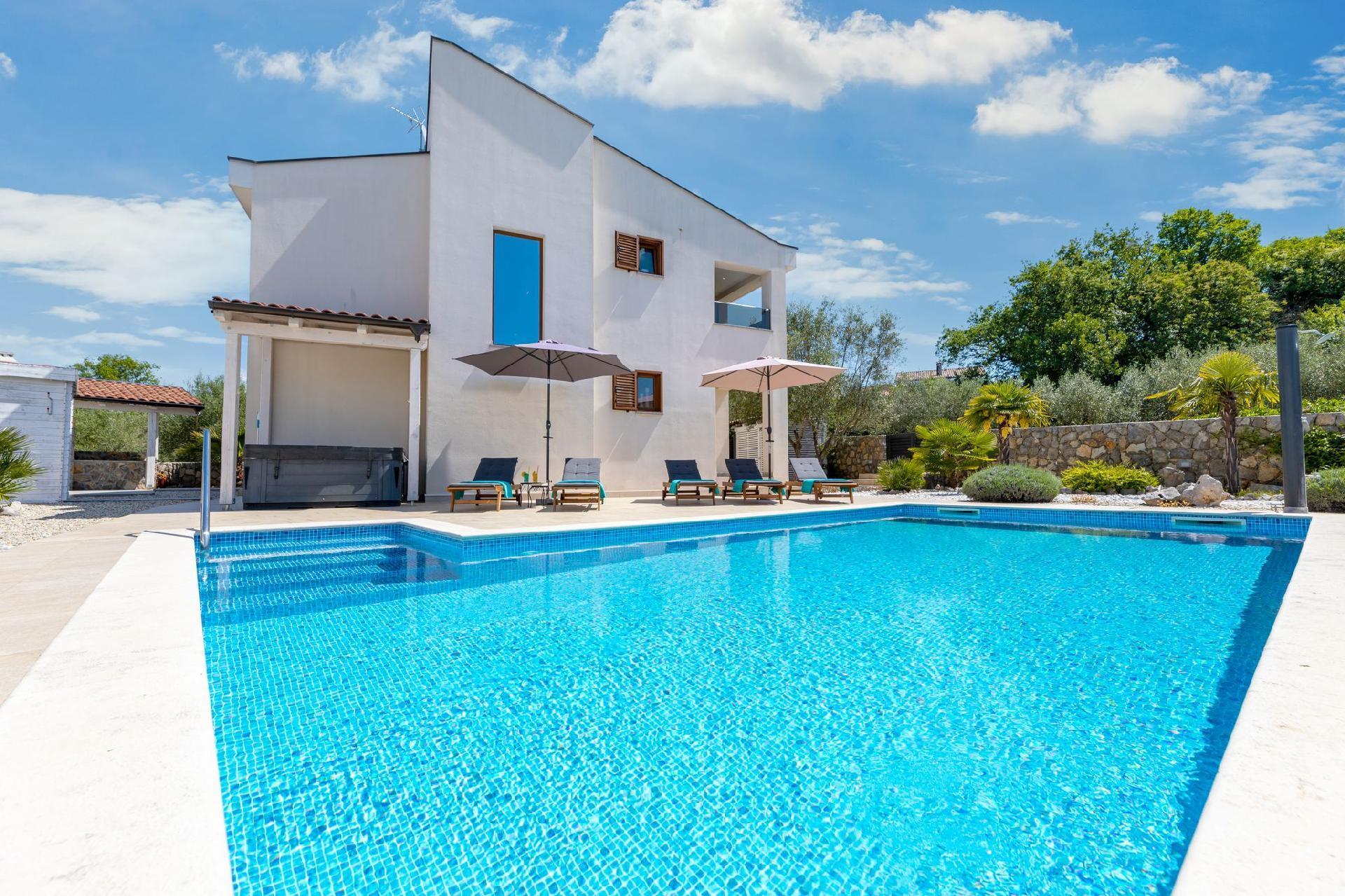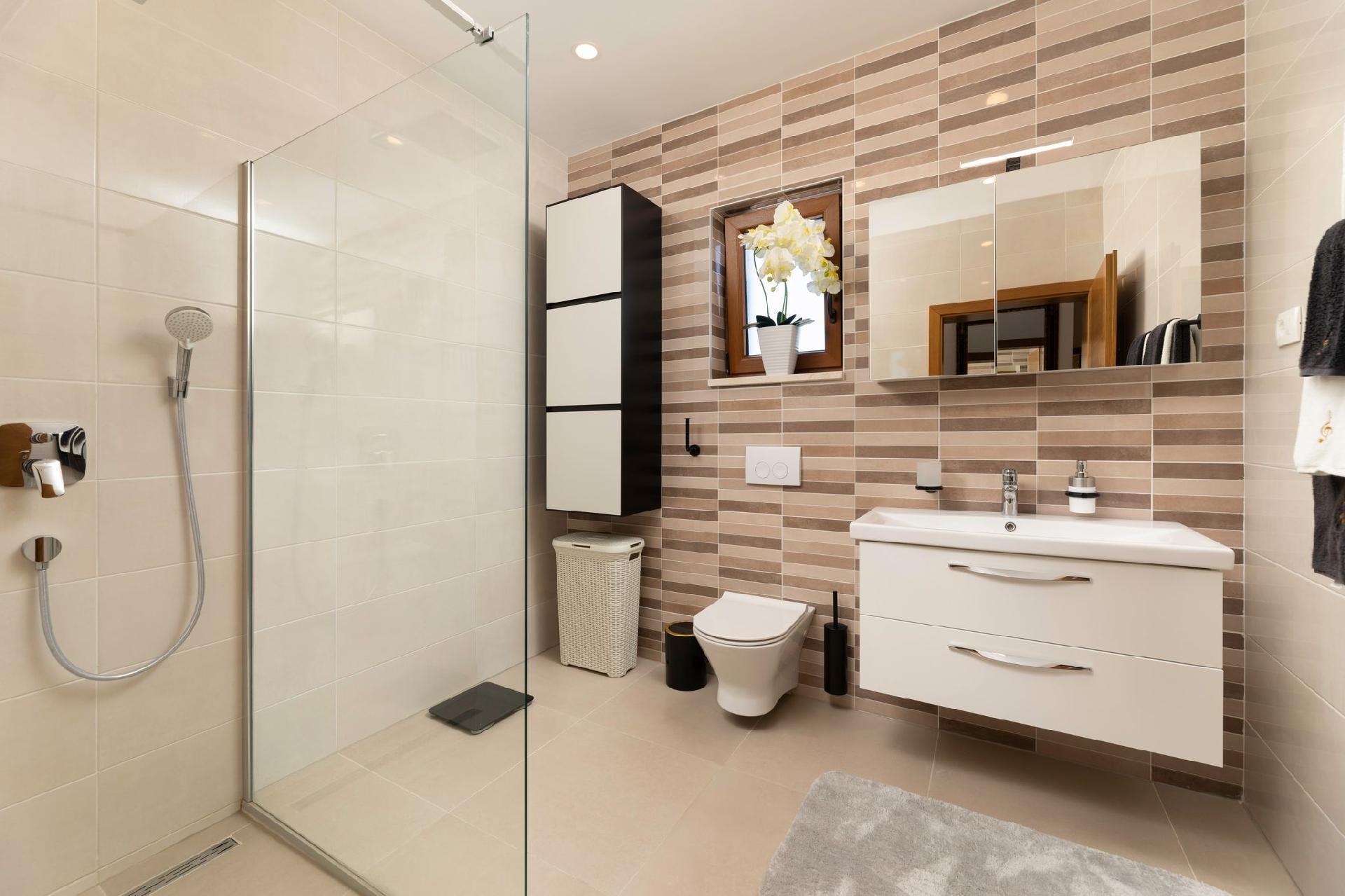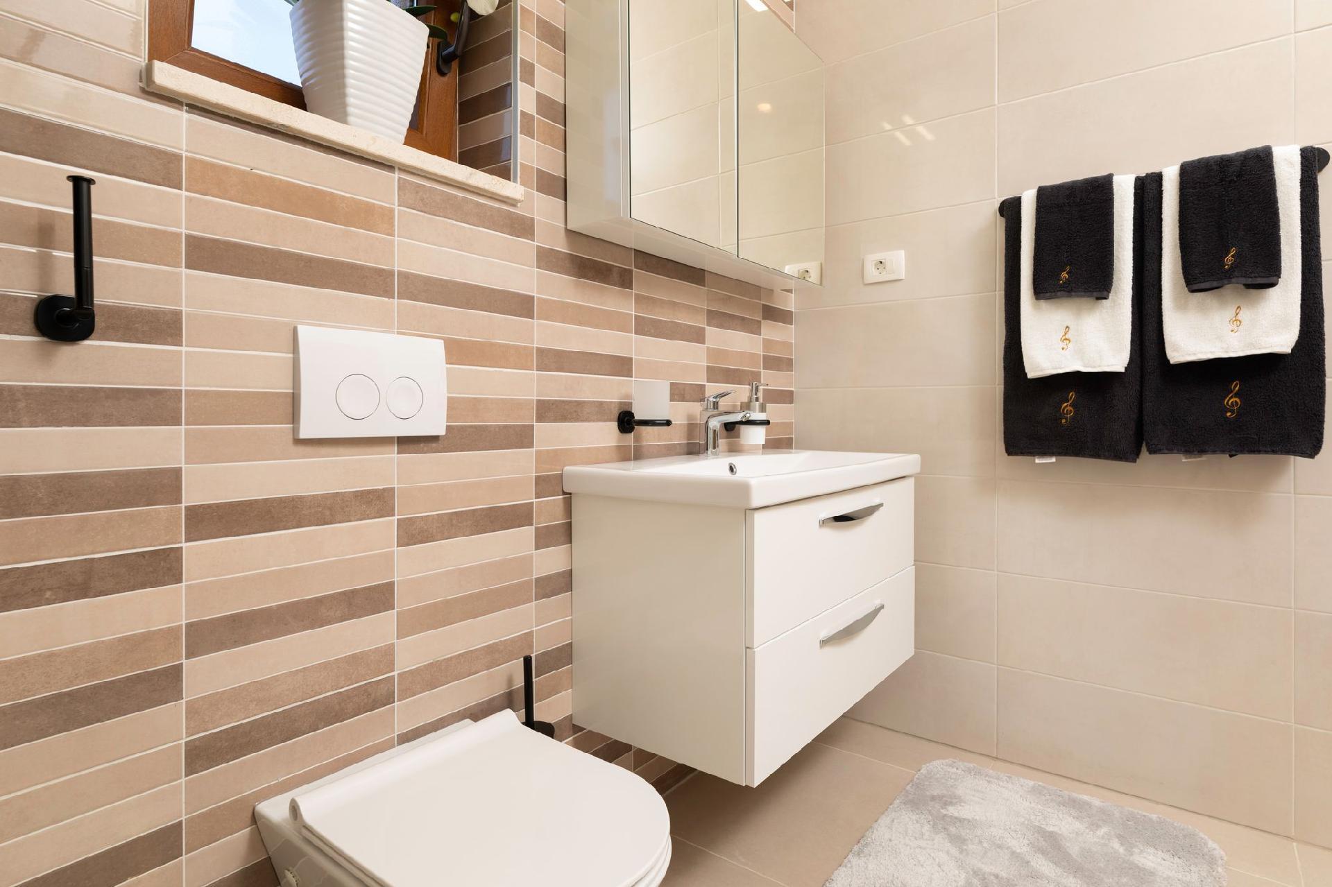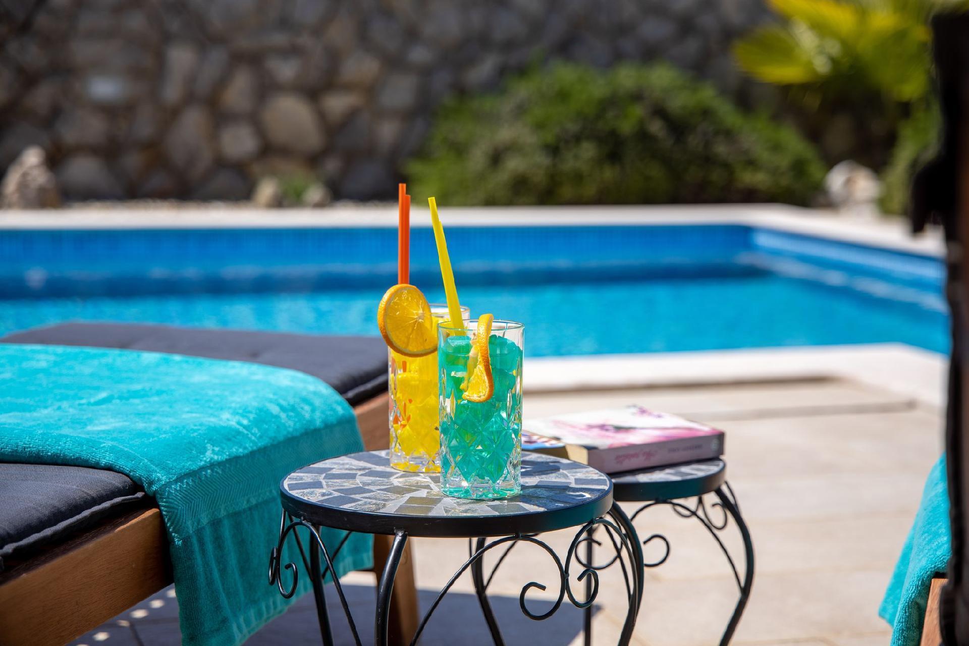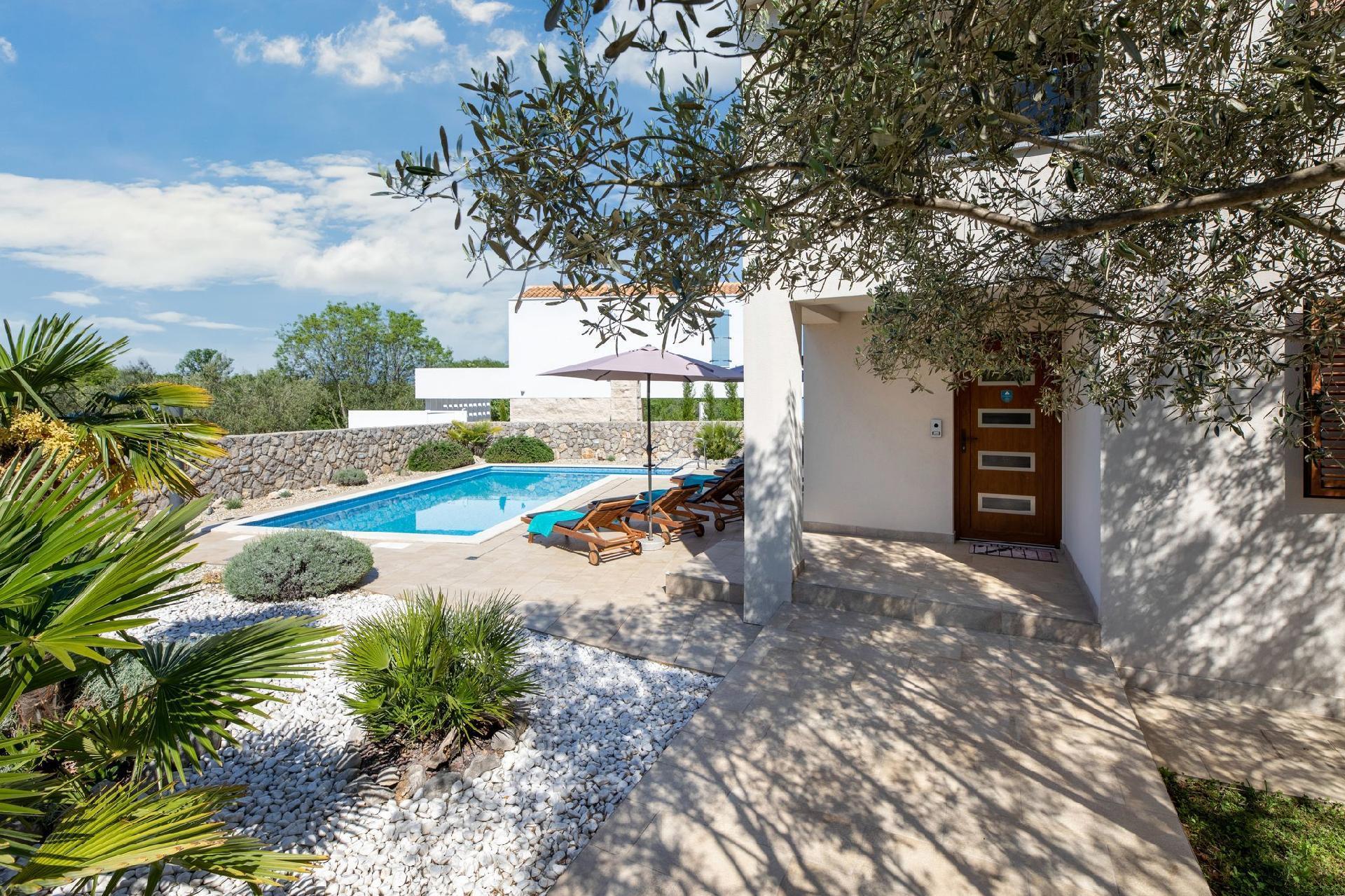 Vila Andante is the perfect getaway for families/groups of friends who look for a peaceful and quiet place for vacation. It is suitable for up to 6 guests and is spread over two floors-ground floor and first floor. On the ground floor there is the spacious living room area and an excellently equipped kitchen with a dining area. On the ground floor there is also a shower bathroom with toilet. From the living room area guests can exit to the covered terrace where they can sit, eat and relax. On the upper floor there are three double bedrooms, one of which with an en-suite shower bathroom with toilet, and one more separate bathroom. Two of the bedrooms share a spacious balcony with a lounge sofa and the third bedroom has its own smaller balcony. Guests can also enjoy the pool, sunbeds, outdoor shower, and two grills (wood and gas). Covered parking for two vehicles is provided.