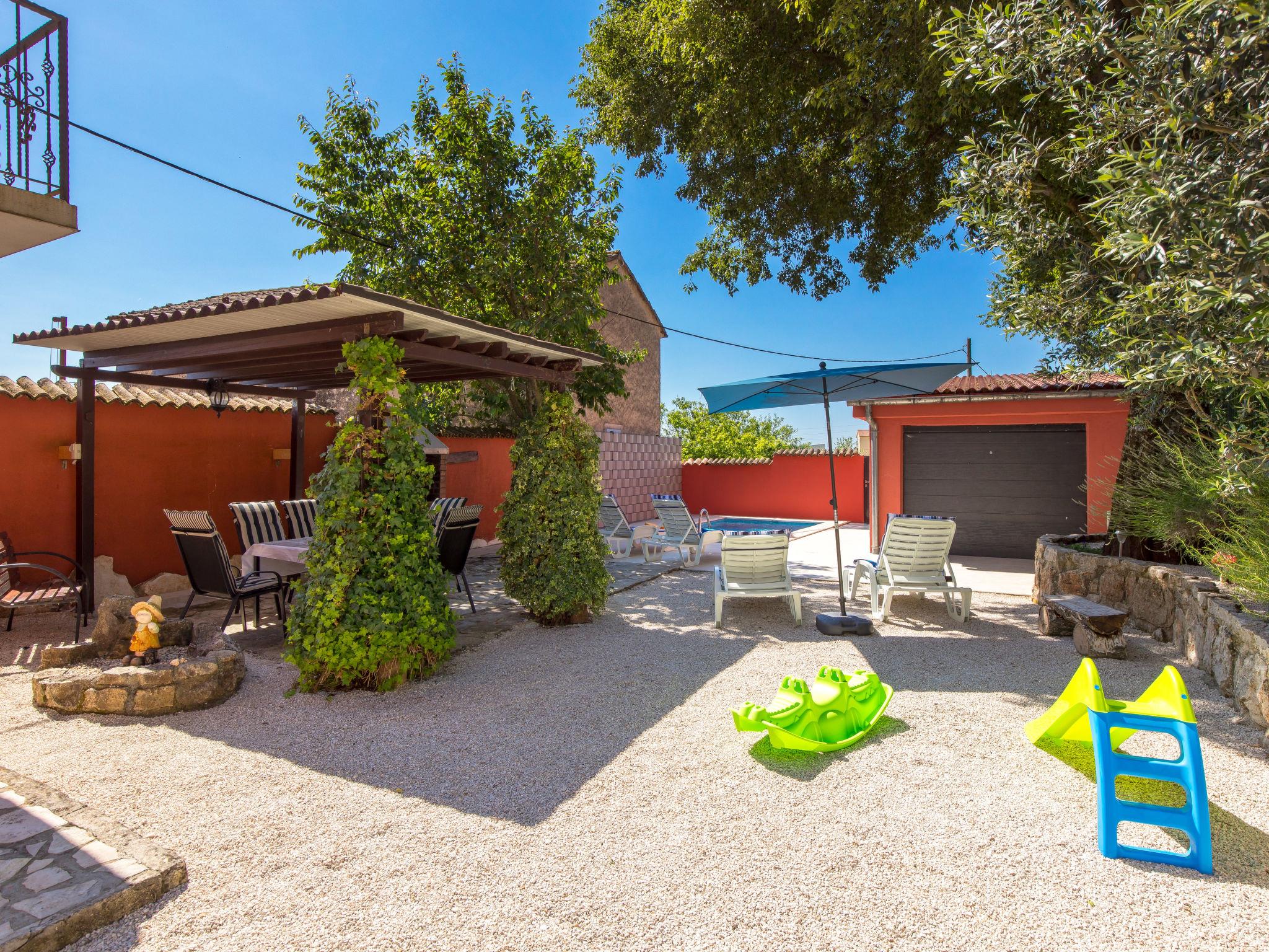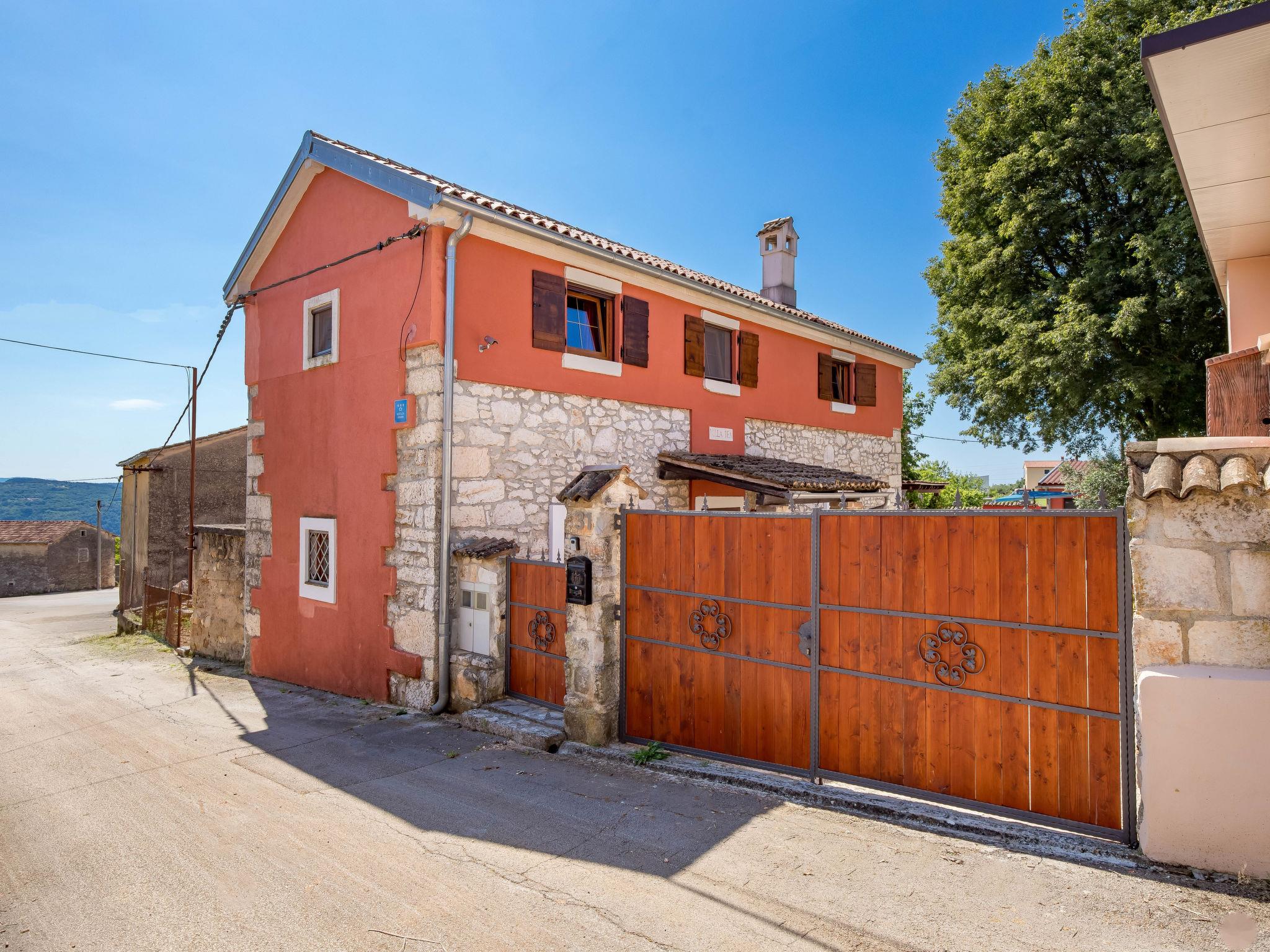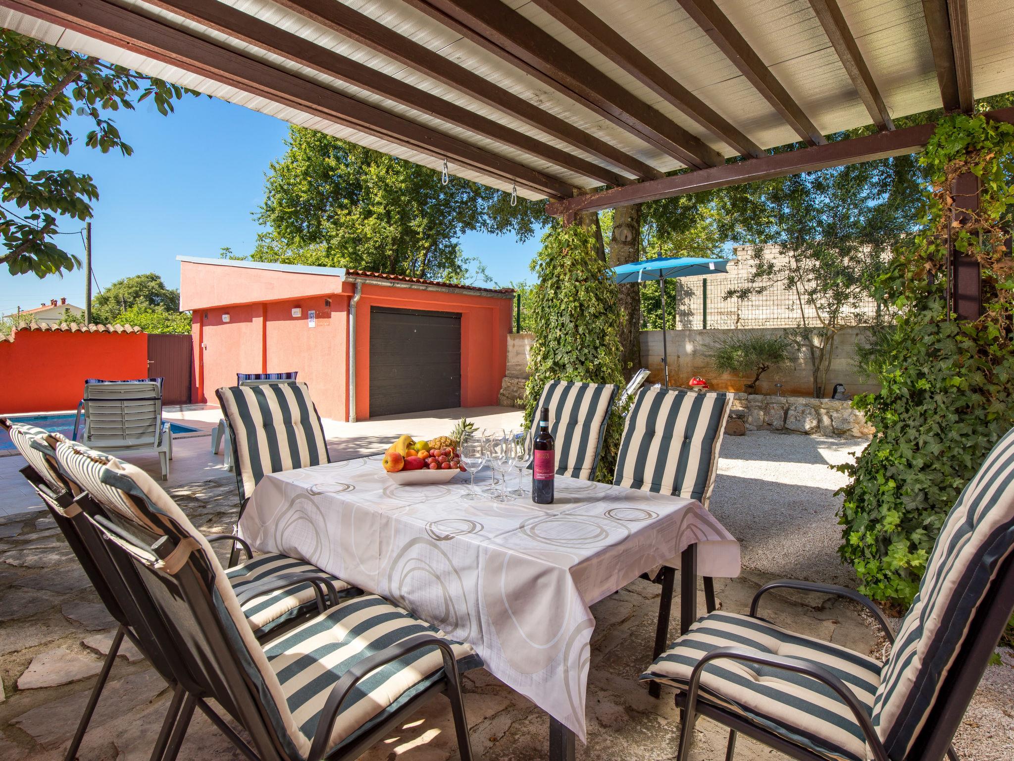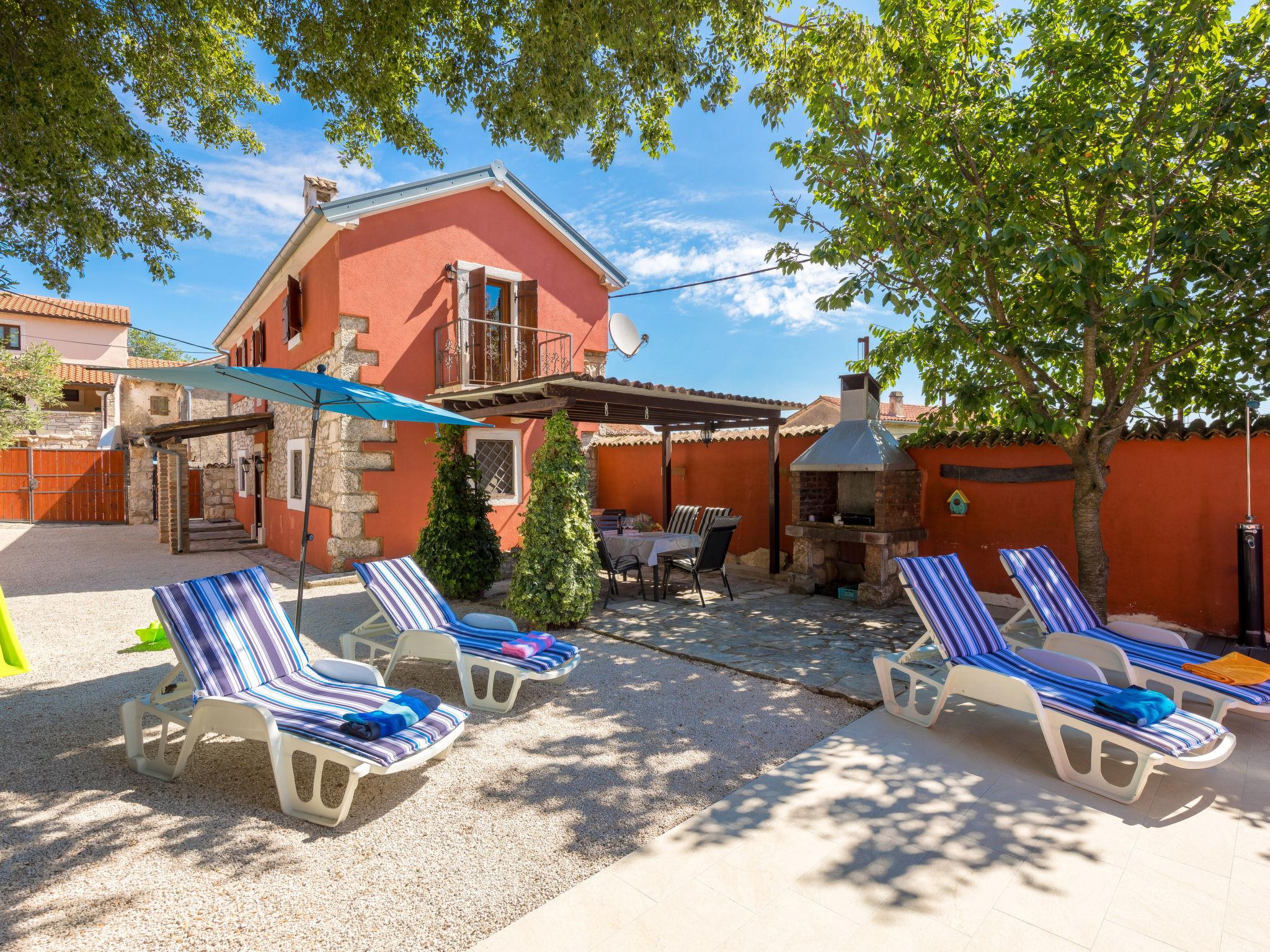 Single-family house "Villa Tea", 2 storeys. In the hamlet Cvitici 10 km from the centre of Barban, 19 km from the sea. Private: property 300 m2 (fenced) with wildlife garden and trees, swimming pool angular (5 x 3 m, depth 140 cm, seasonal availability: 01.May. - 05.Oct.). Outdoor shower, terrace, garden furniture, barbecue, pool maintenance by the owner/gardener. In the house: internet access, washing machine. Parking (for 2 cars) at the house on the premises. Shop 500 m, supermarket 8 km, restaurant 10 km, bus stop 8.9 km, pebble beach 19 km. Please note: airfield 33 km from the property.