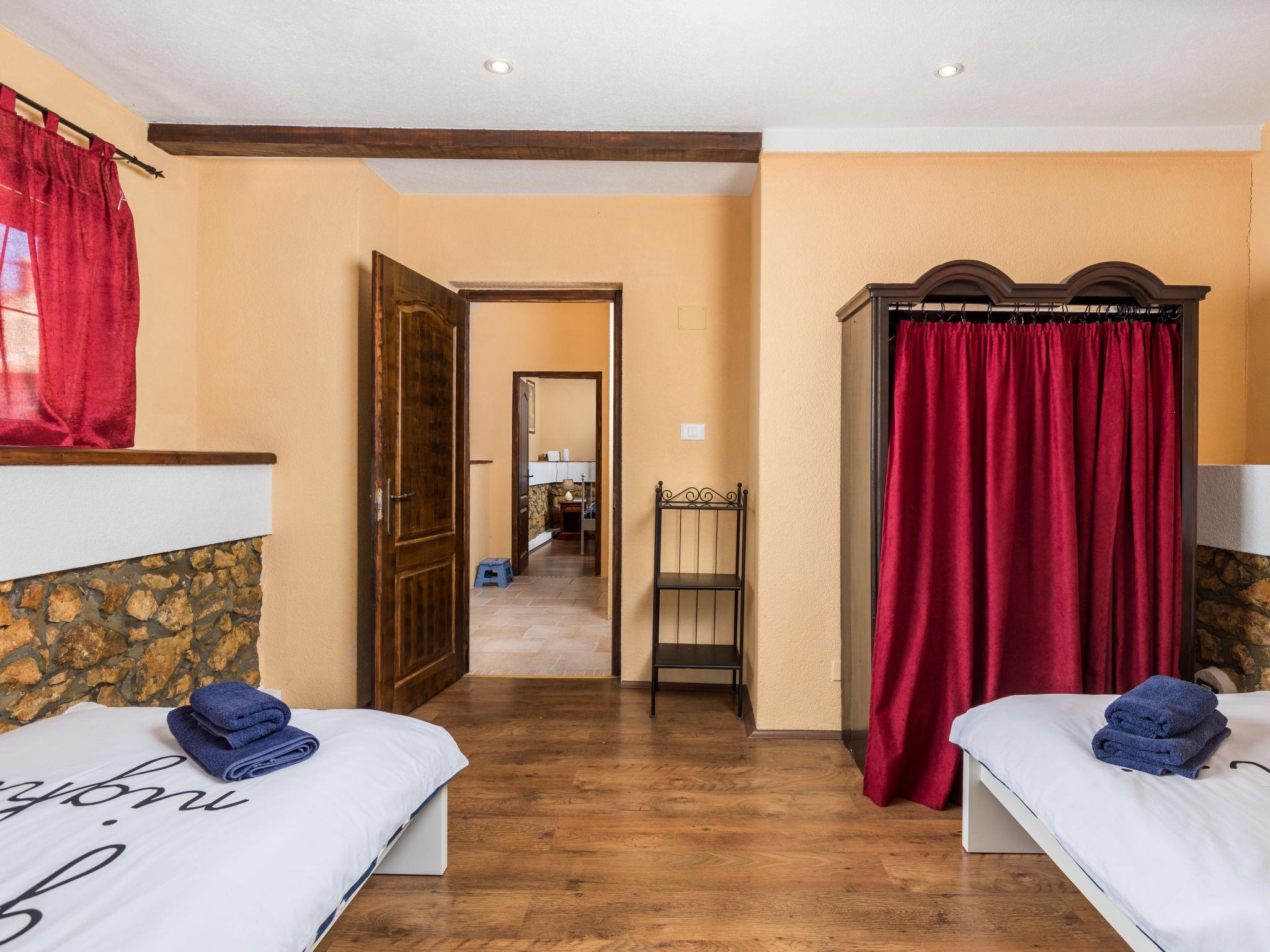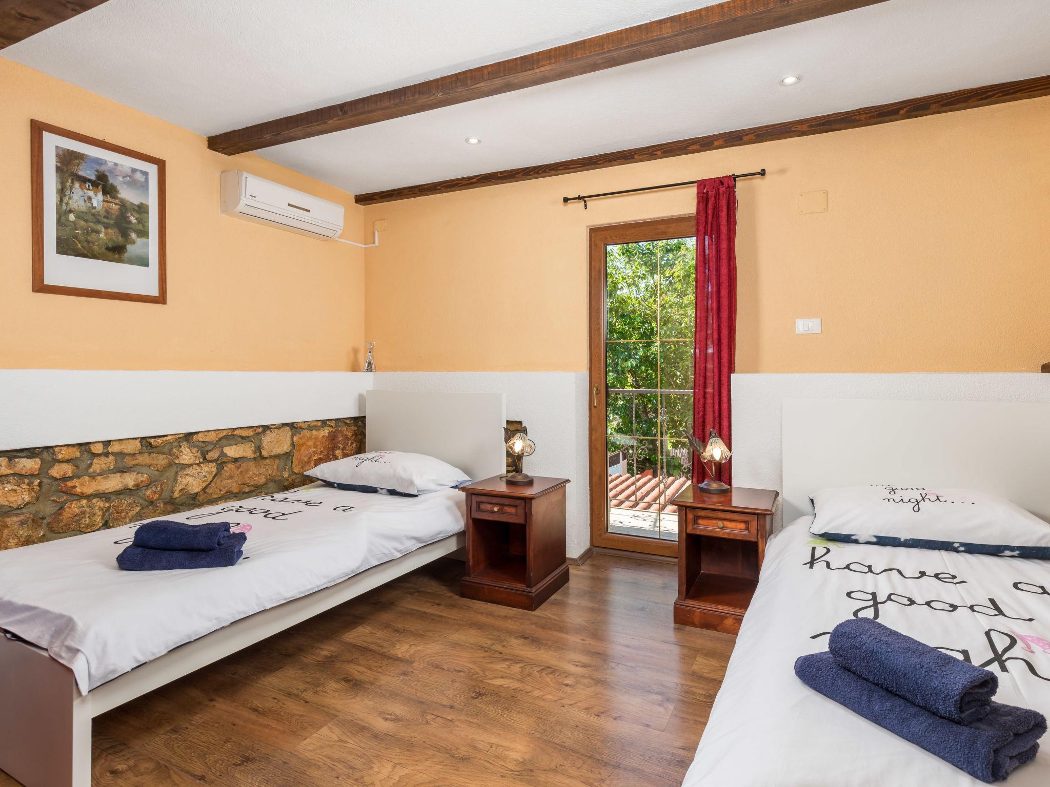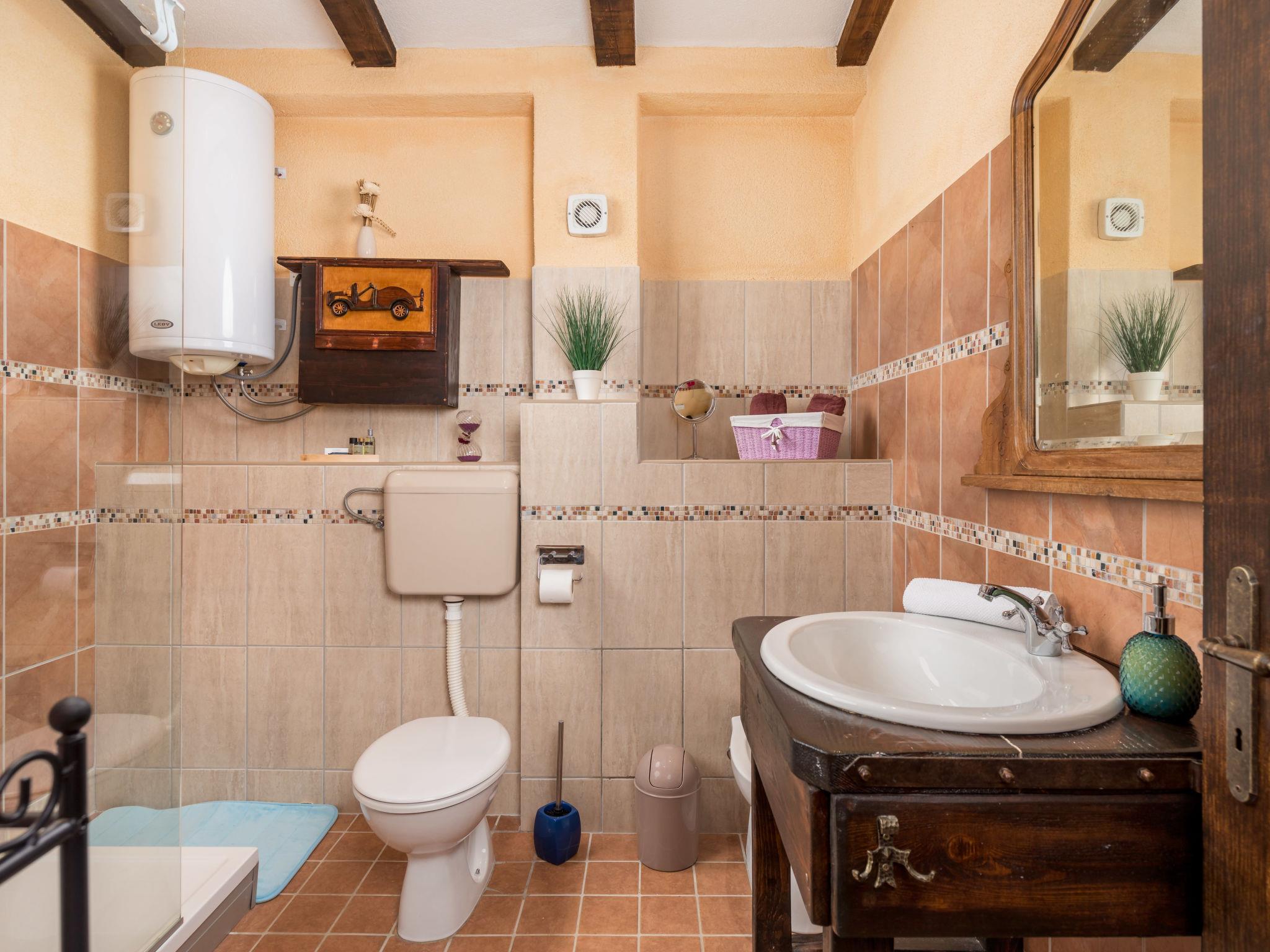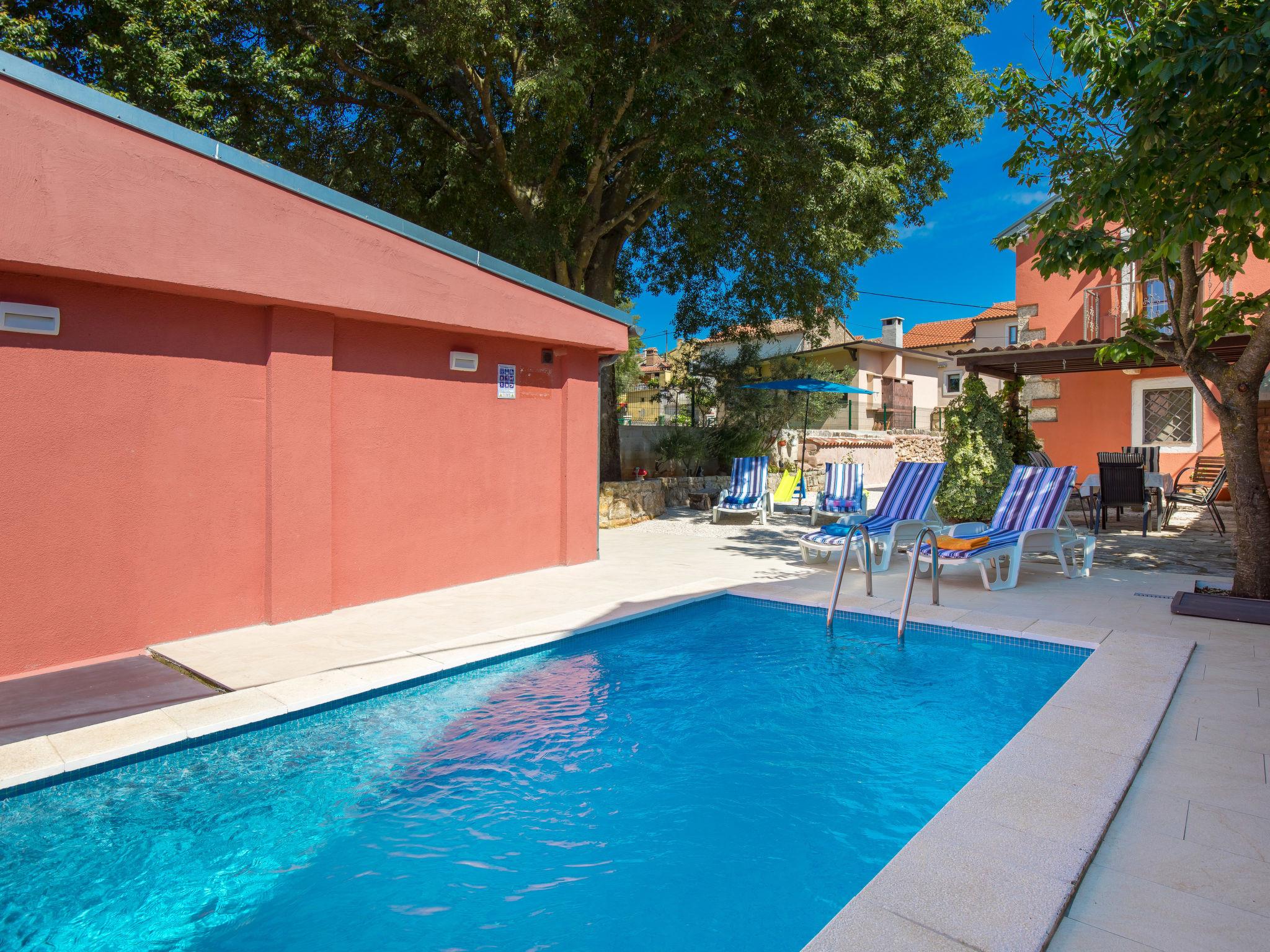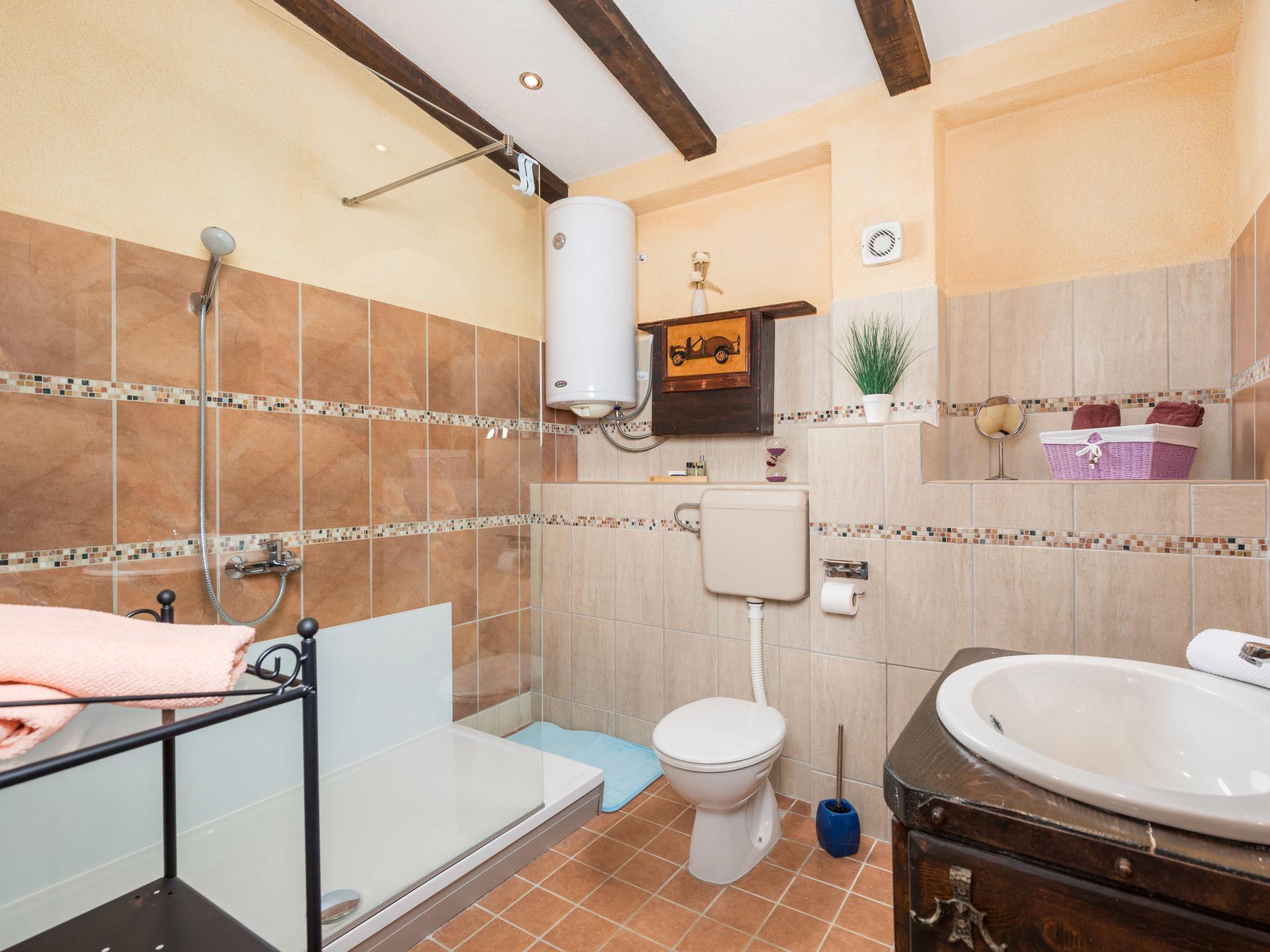 Single-family house "Villa Tea", 2 storeys. In the hamlet Cvitici 10 km from the centre of Barban, 19 km from the sea. Private: property 300 m2 (fenced) with wildlife garden and trees, swimming pool angular (5 x 3 m, depth 140 cm, seasonal availability: 01.May. - 05.Oct.). Outdoor shower, terrace, garden furniture, barbecue, pool maintenance by the owner/gardener. In the house: internet access, washing machine. Parking (for 2 cars) at the house on the premises. Shop 500 m, supermarket 8 km, restaurant 10 km, bus stop 8.9 km, pebble beach 19 km. Please note: airfield 33 km from the property.