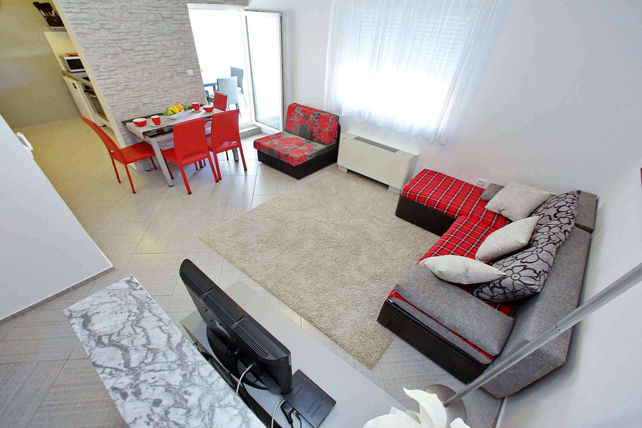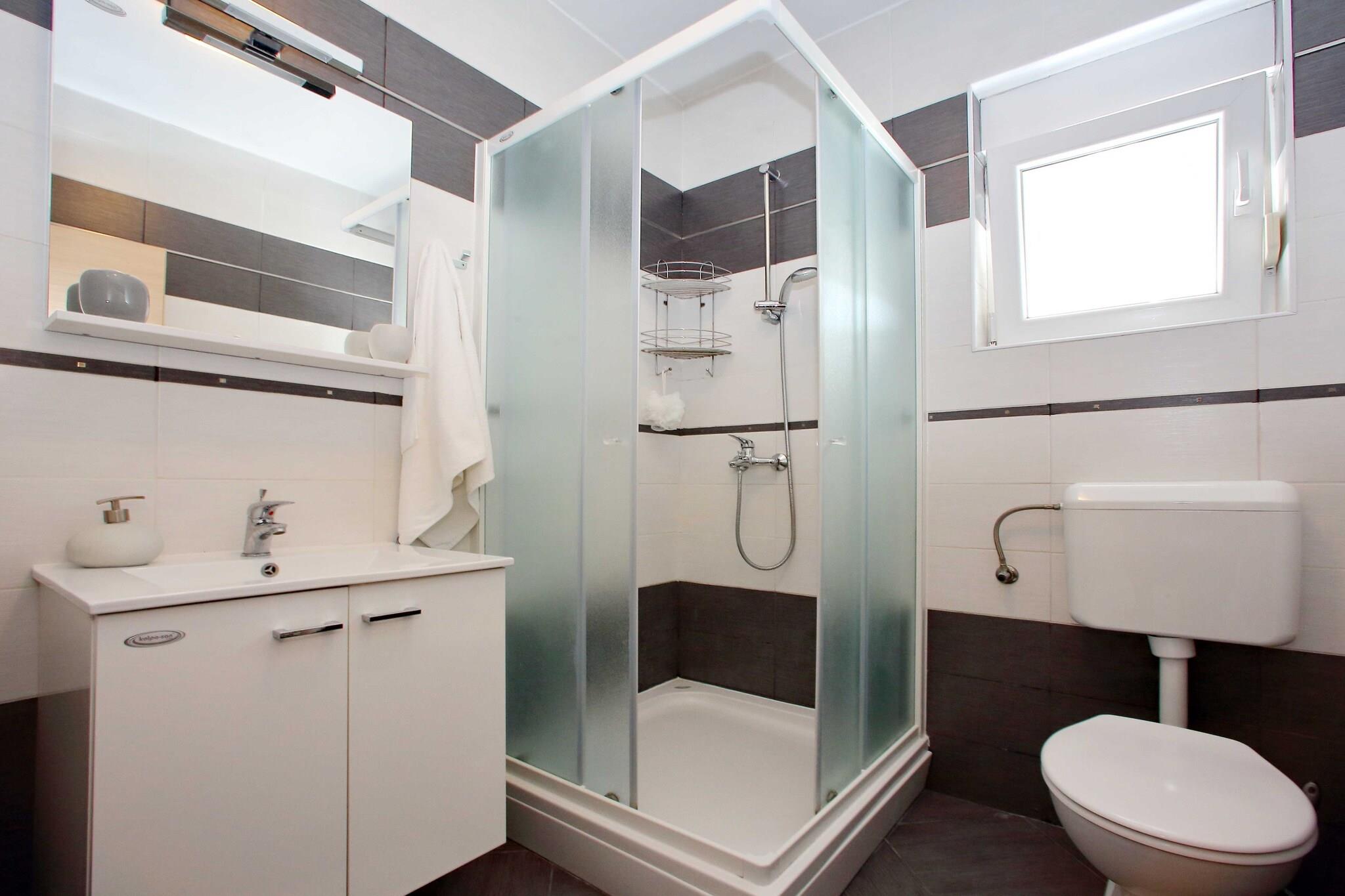 Denna lägenhet för fyra gäster ligger bara 100 meter från havet och erbjuder en fridfull tillflyktsort med gratis WiFi och moderna bekvämligheter. Belägen 1,5 km från Bibinjes centrum och 11 km från Zadar, erbjuder den den perfekta balansen mellan kustavkoppling och stadsutforskning. Med restauranger, nattliv och färjehamnen i närheten kan gästerna njuta av både bekvämlighet och äventyr. Inuti har lägenheten ett mysigt vardagsrum och matplats med TV och balkong, ett fullt utrustat kök med moderna apparater och ett bekvämt sovrum med våningssäng. Gästerna kan varva ner på terrassen, njuta av uteservering med öppen spis och trädgårdsmöbler, eller dra nytta av praktiska bekvämligheter som luftkonditionering, tvättmaskin och privat parkering. I närheten kan du besöka Zadars katedral, ett fantastiskt historiskt landmärke, eller uppleva Hälsningen till solen, en fascinerande soldriven installation som lyser upp natten. För middag serverar Ribar Jere färska skaldjur, medan Konoba Piazzetta erbjuder autentiska dalmatiska smaker. Oavsett om du söker äventyr eller avkoppling är denna kustnära tillflyktsort den perfekta tillflyktsorten.
